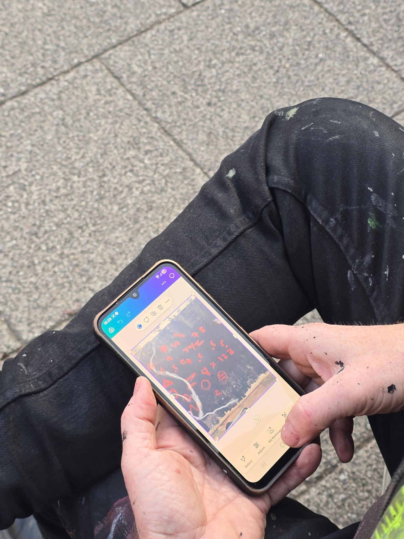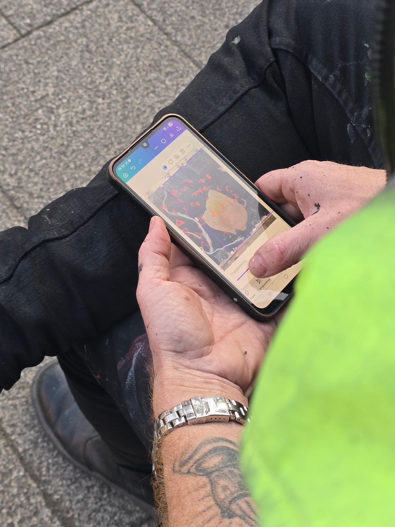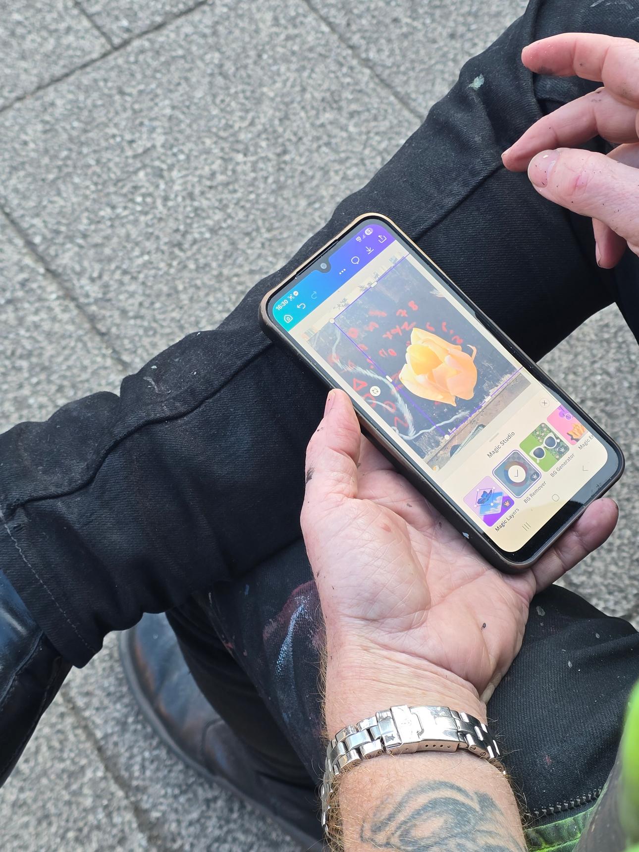 As the outlines gradually turned from squiggles to squirrels, and my arms more and more resembled a mutated measles outbreak, the interest from passers by also increased. I helped Mick by fielding the questions, and I used the SAC app to show the various interested parties some other examples of local art that Mick had a hand in.
