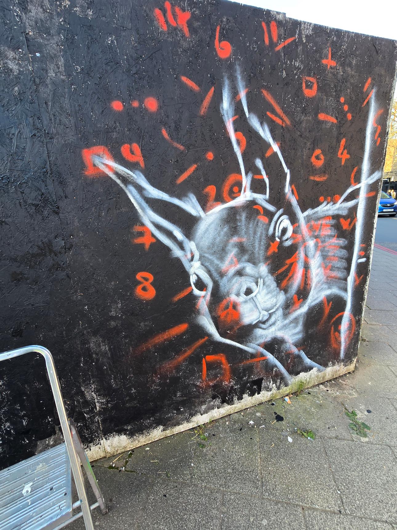 Mick told me that a lot of artists will spend several days getting the final image ready, with all elements in place before going on site to paint. He prefers to have a rough idea in his head, and cherry-pick the elements he wishes to use on the day, as he likes the freedom to move things around, be it for artistic reasons, or practical ones, such as available area has changed.