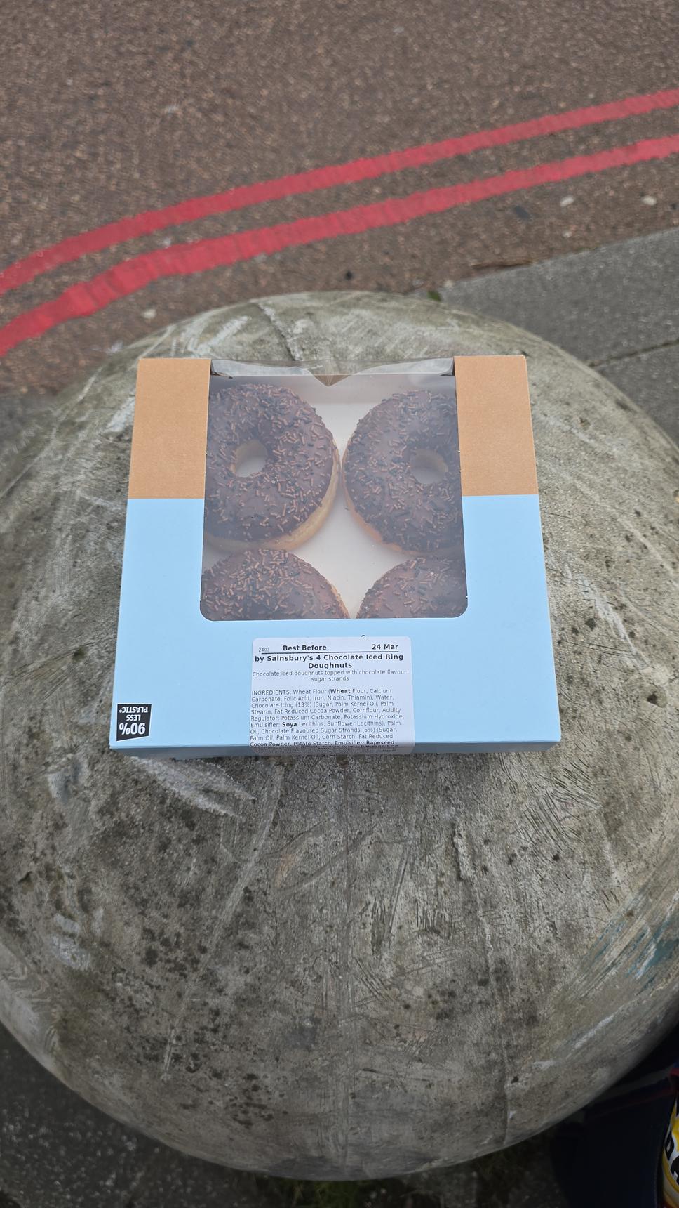 This was to start early afternoon, so on Saturday morning, I did a spot of hunting, then it was round to Mick's. Supplies were loaded into his car, whilst I was sent on a chocolate donut mission to Sainsbury's. Over the course of the weekend, I learned a lot about the essential equipment and supplies of a Mural Artist... who knew this would involve confectionery?