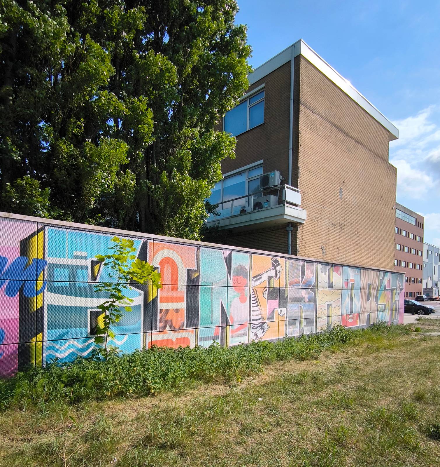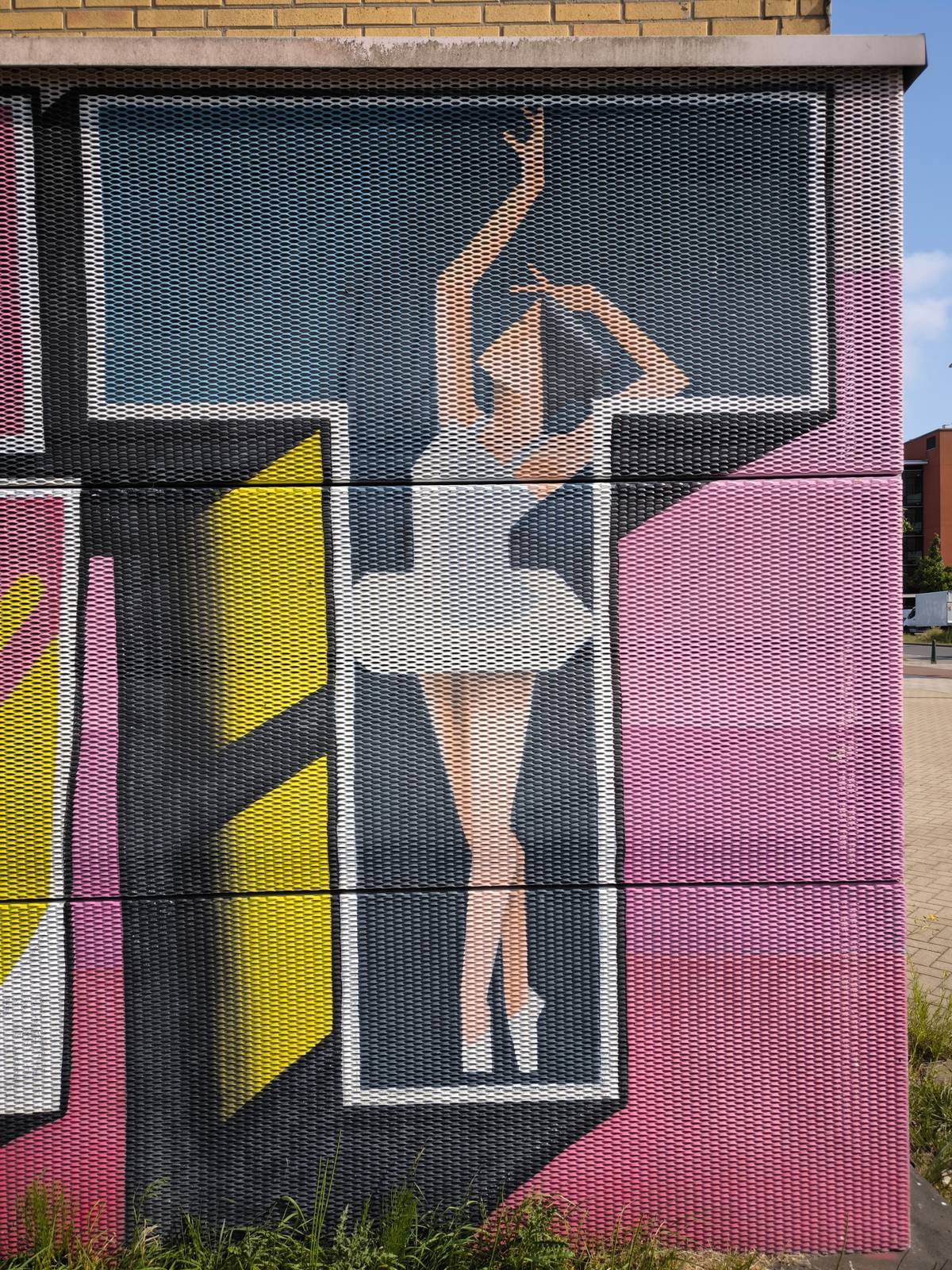 In 2021, the artist expanded the remaining part of the wall. On the extension of the wall, Ringo painted iconic traffic signs with his own twist that symbolize the changing character of the Binckhorst.
