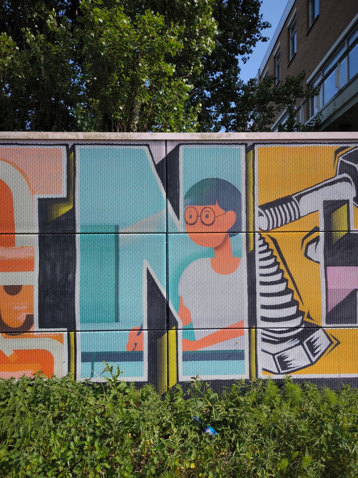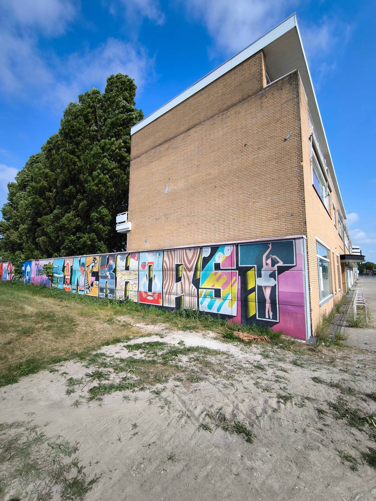 Ringo Mollinger made this Blockbuster on the Binckhorstlaan in 2019. Each letter tells its own story about the Binckhorst. To clearly display these stories, square letters were chosen with Ringo's graphic work in them. This way, the text is readable and the stories are clearly displayed.