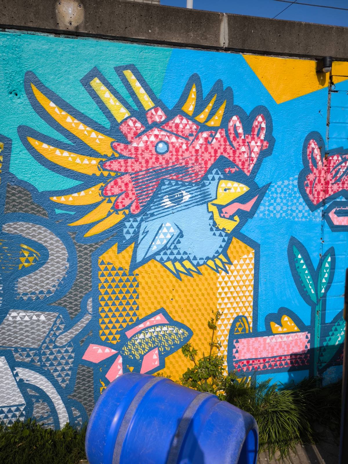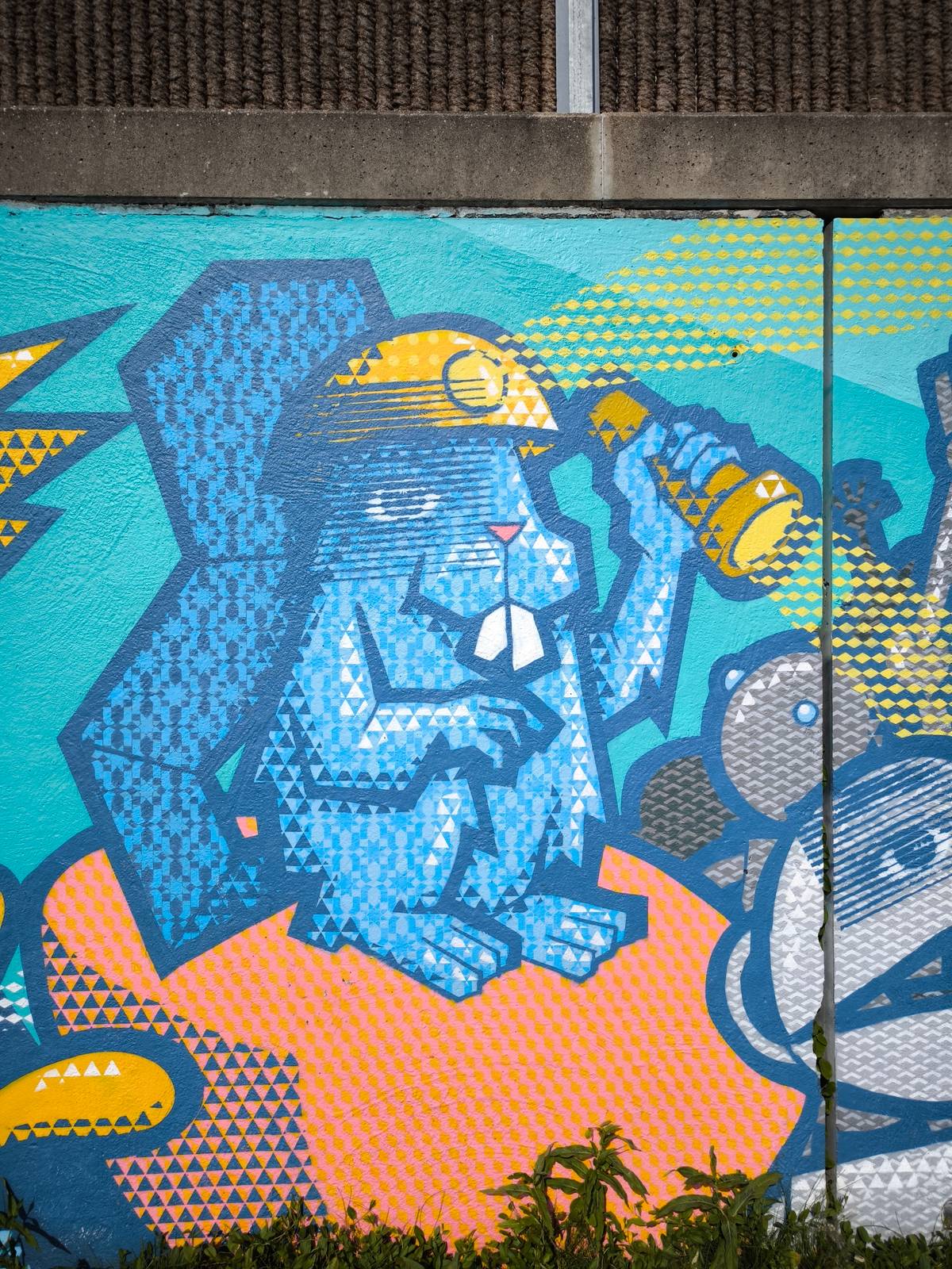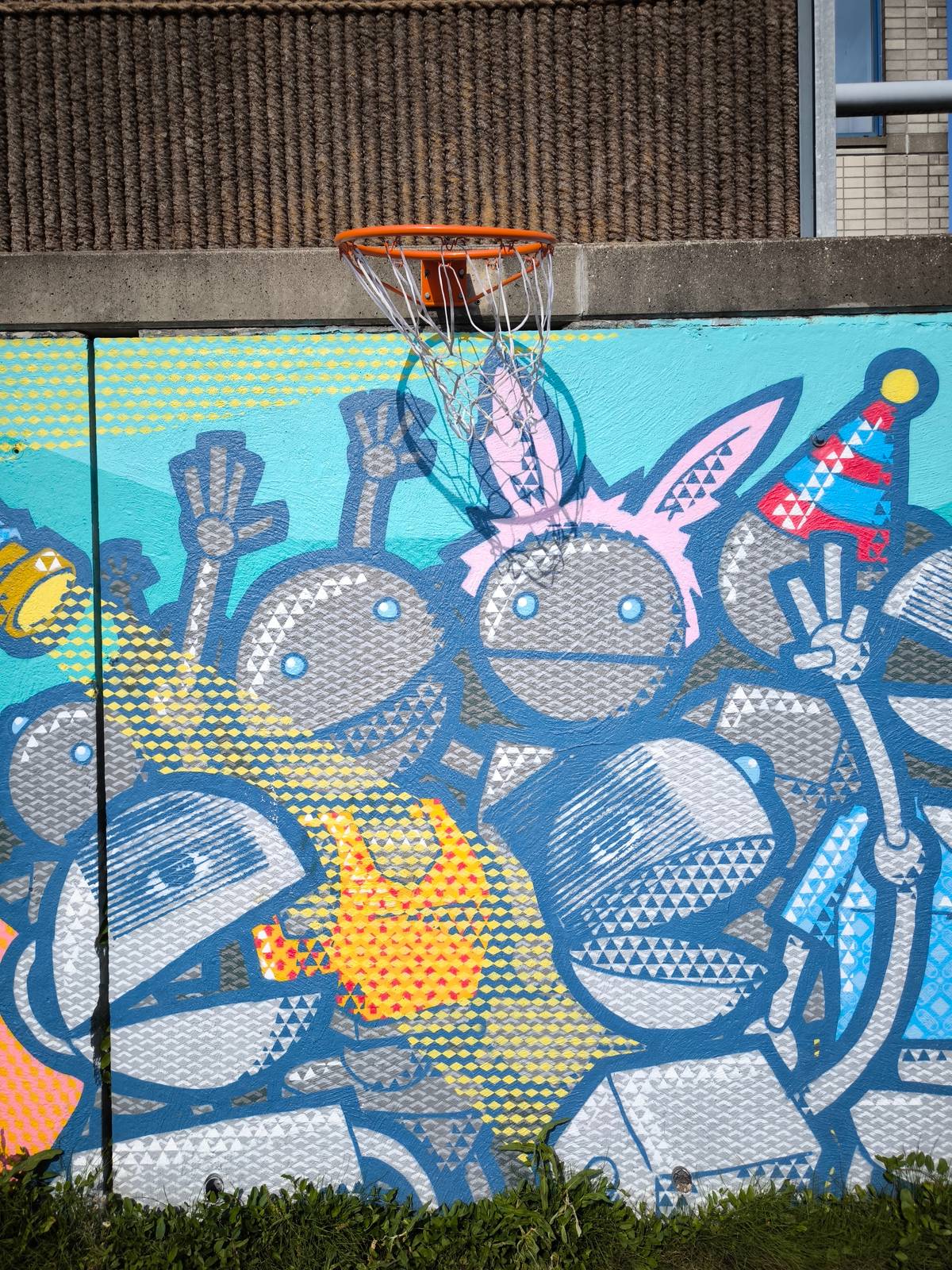 And so this mural followed, a big mix of different SOGOshow characters. SOGOshow decided not to tell one story, but only give hints of stories to spark the imagination of the children. Hoping that the stories will be finished in their own imagination.