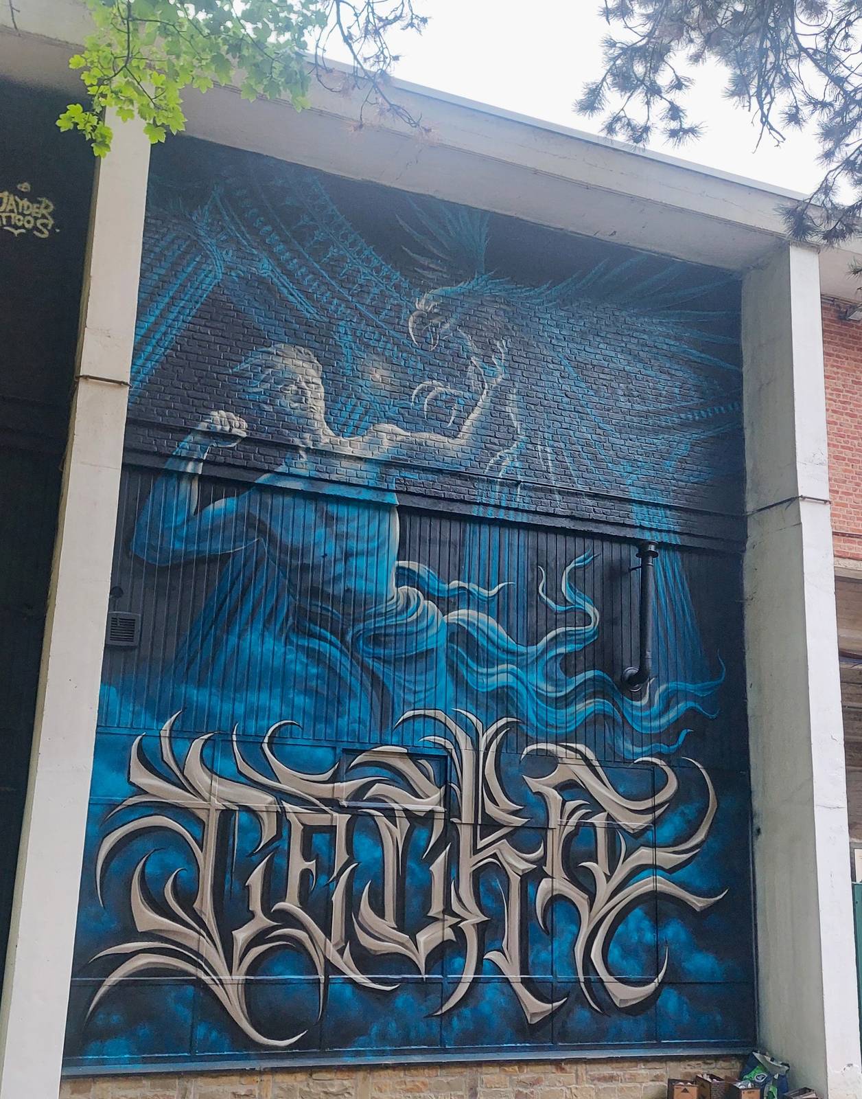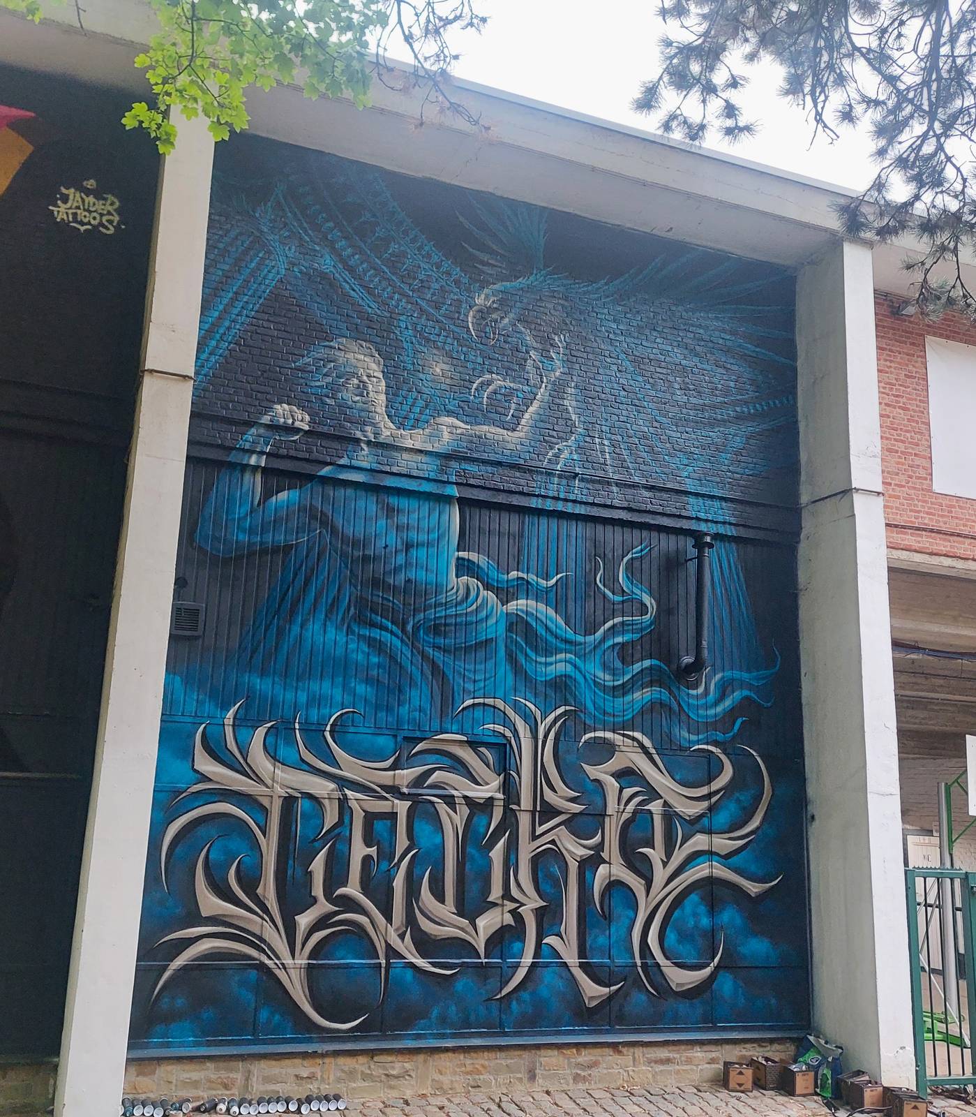 Muurschildering van Cecko, aangebracht tijdens 'Summer Jam 2025'.