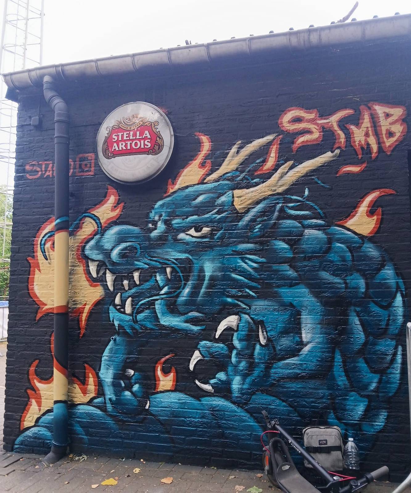 Muurschildering van Stab, aangebracht tijdens 'Summer Jam 2025'.