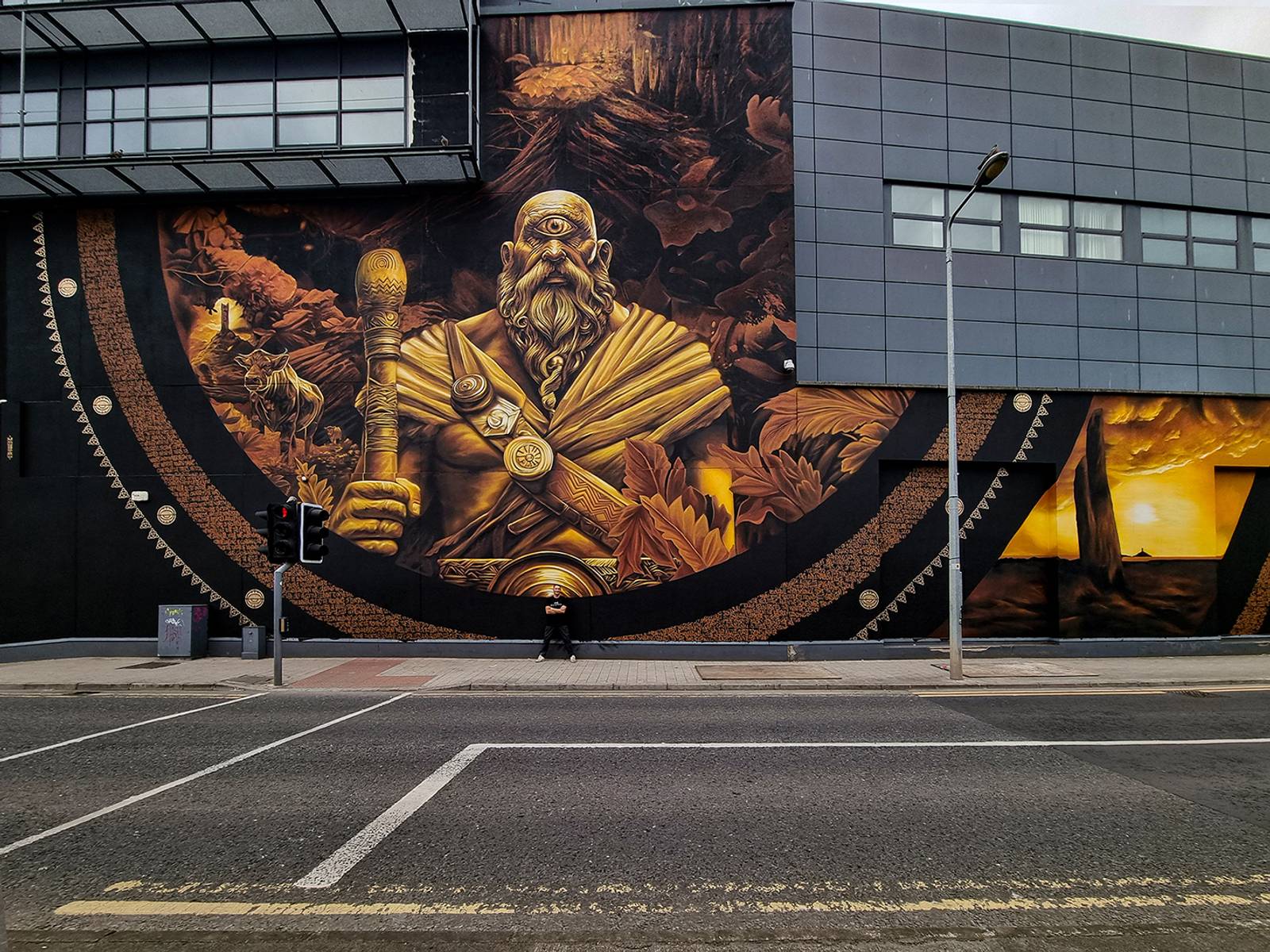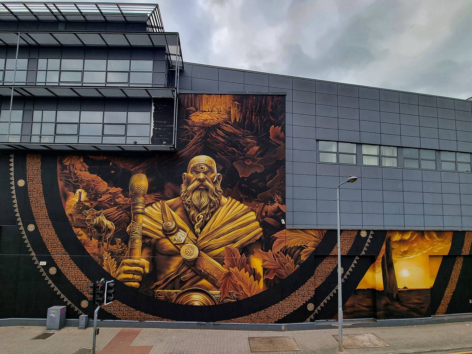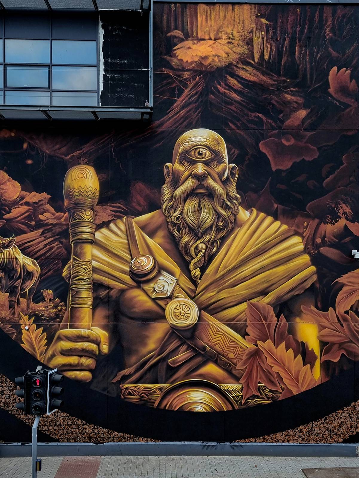 While Balor is often associated with the north of the country, there is a story that connects him to the Boyne Estuary and the Irish Sea about eight kilometres east of Drogheda which we would like to be the central theme of the new mural.
