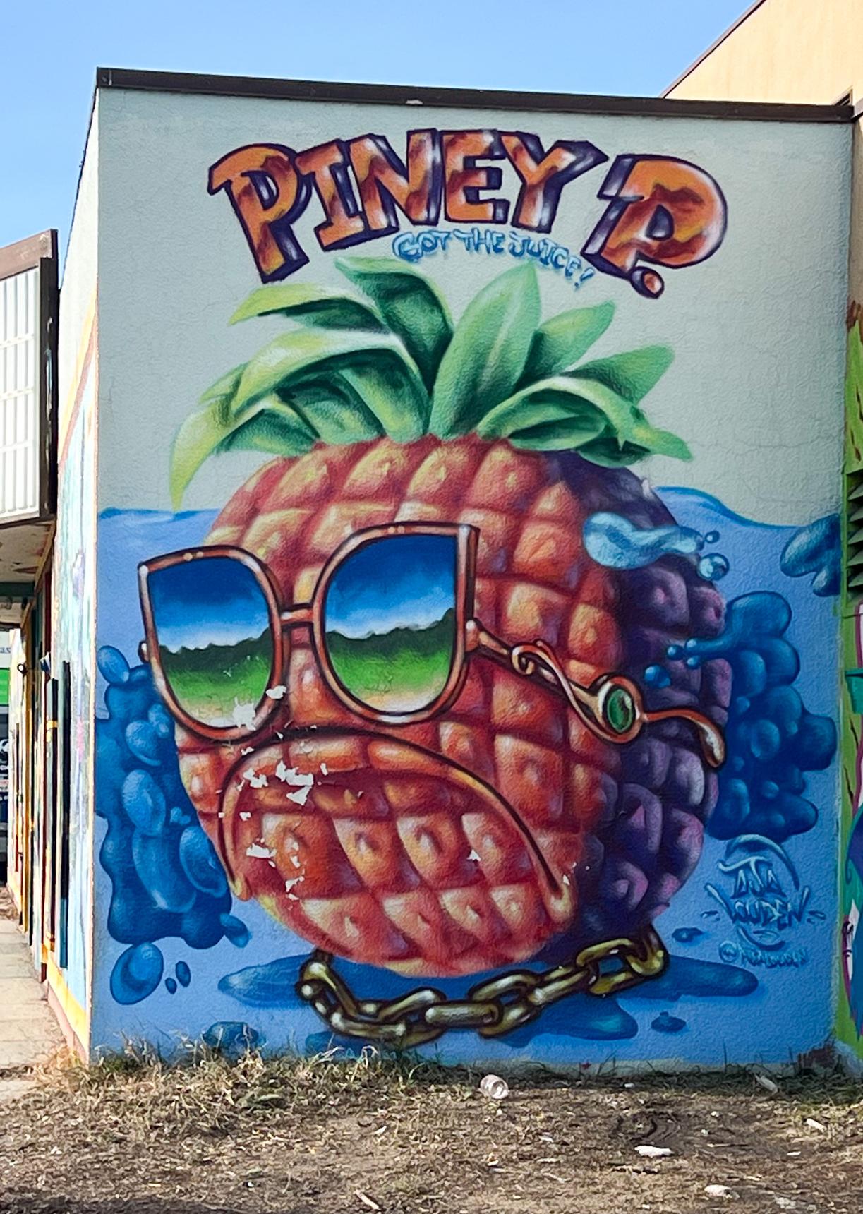 Piney P is sporting some awesome sun glasses on one side of Edmonton’s now defunct Avenue Theatre.