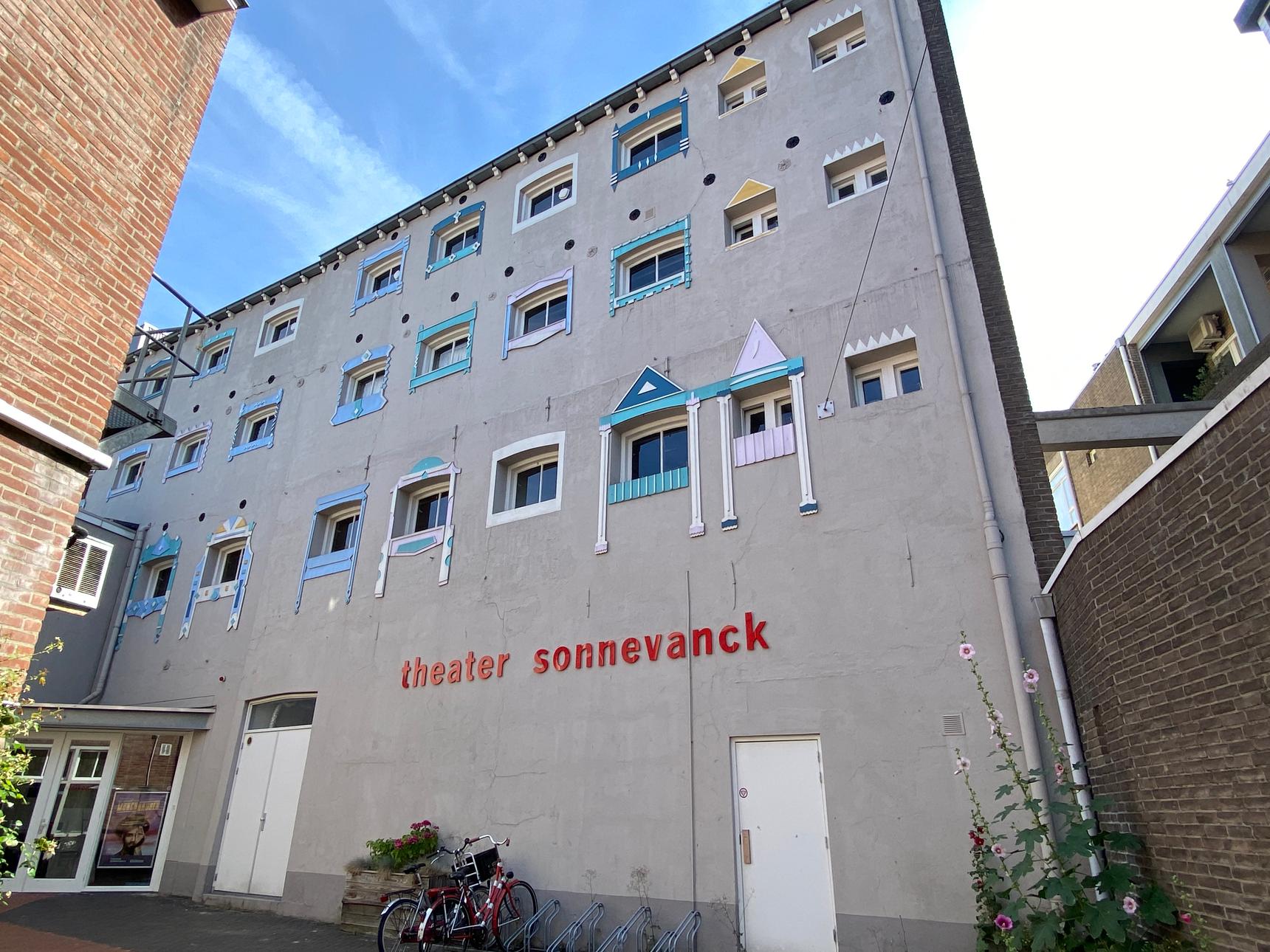 Theater Sonnevanck is one of the largest youth theater companies in the Netherlands. Its office and theater are located in a former warehouse. The building once belonged to the Jannink textile family. In 1985, the then-councilor for culture wanted to renovate the old warehouse. Because it had stood empty for some time, the building had fallen into disrepair and the windows were missing their glass. As a result, many birds had found a new home in the abandoned building. That is why a mural of birds was initially considered. Then artist Gerrit Kerssies proposed adding colorful frames to the windows.
