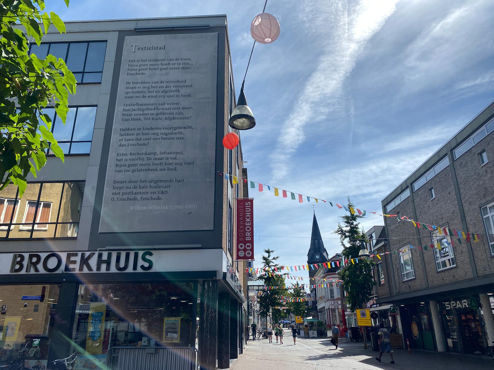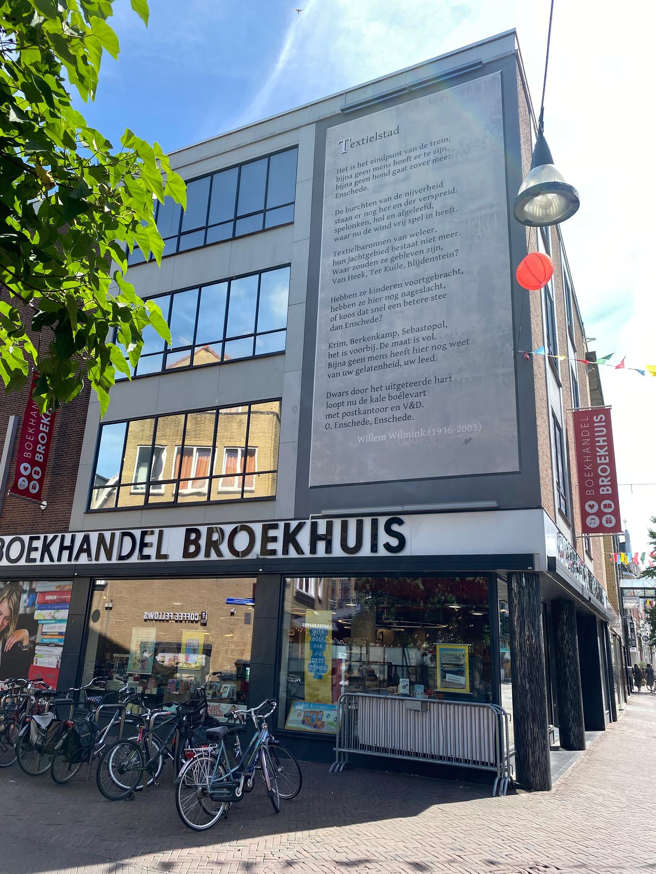 In the mid-1970s, Willem Wilmink wrote this poem about “his” city in decline. Little remained of the once-vibrant Enschede after the collapse of the textile industry. Through Bannink’s musical setting, the poem became a melancholic blues, in which he incorporated “De Driekusman,” a traditional polka from the Twente region. The lyrics are now outdated. The Boulevard has long since ceased to run through the heart of Enschede, and the post office and V&D have disappeared. The city is now a Euregional hub for art, culture, and conviviality.