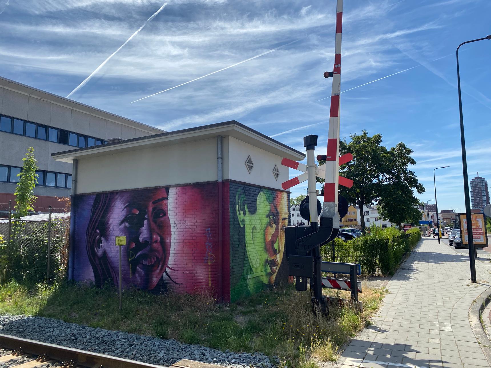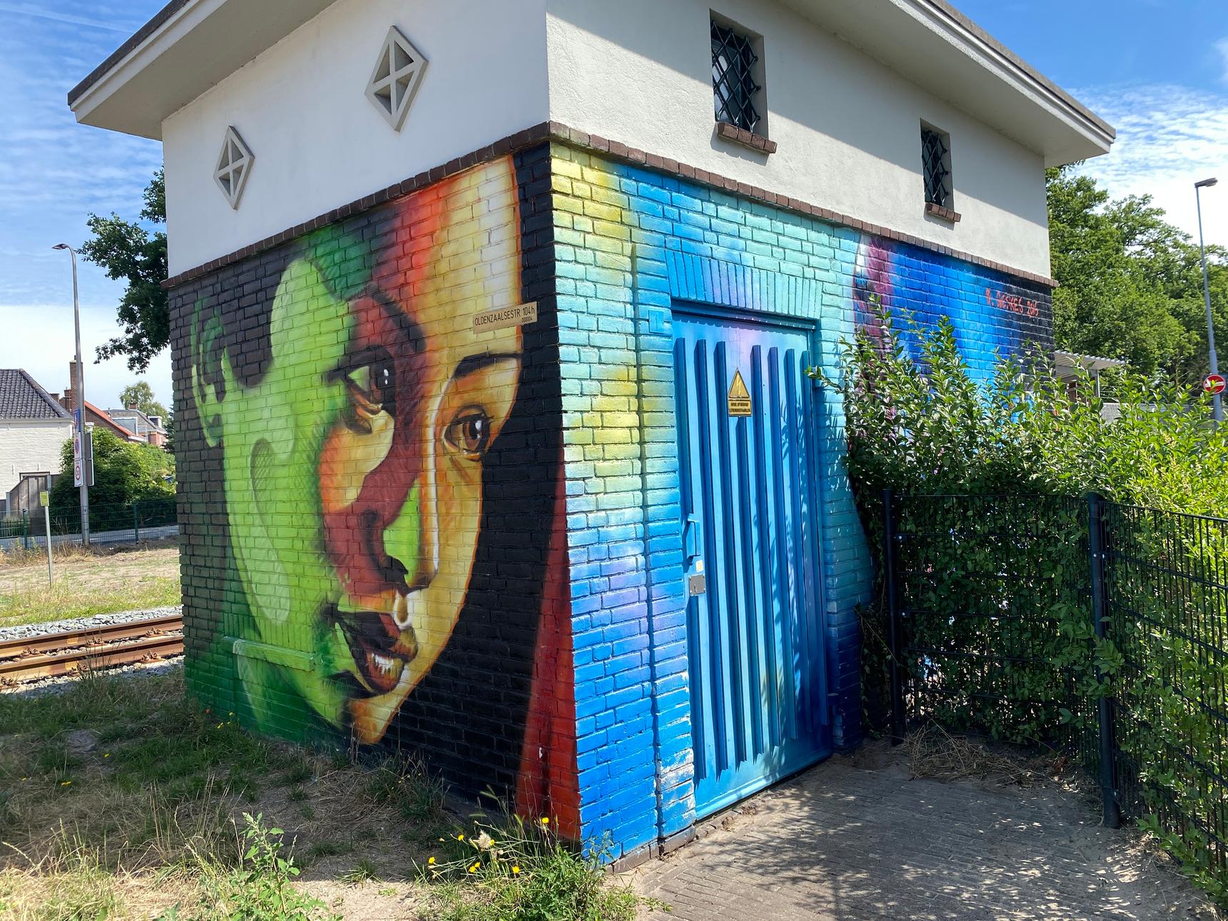In 2016, painter and tattoo artist Bertus Gieskes took on the transformer house at the railroad crossing on Oldenzaalsestraat. In about three hours, he transformed the drab little building, covered in illegal graffiti, into a colorful work of art. The City of Enschede had been planning to do something with it since 2015, but the fact that it ended up with Gieskes was pure coincidence. A city official visited Bertus’s studio to get a tattoo. They struck up a conversation about the idea of painting the transformer house, after which the idea was further developed.
