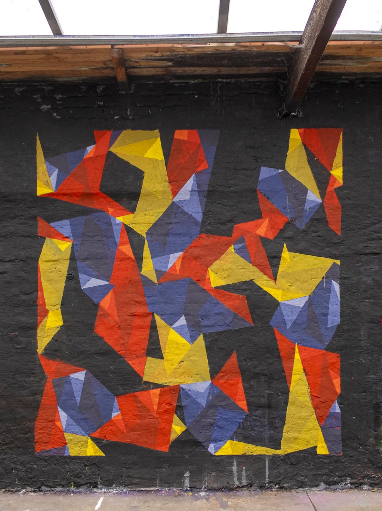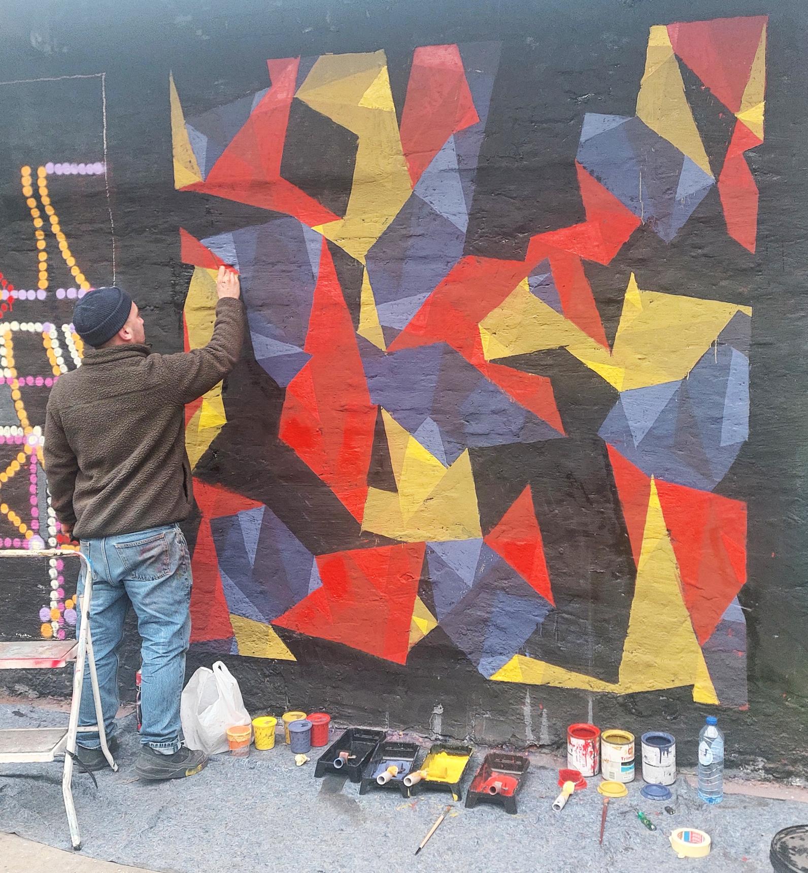 Vincent Dubos created this mural for Abstract Session 3, held on 7 and 8 February at the Urban Art Centre in Forest. The festival celebrated the 40th anniversary of the leading Brussels street artist Eyes-B.