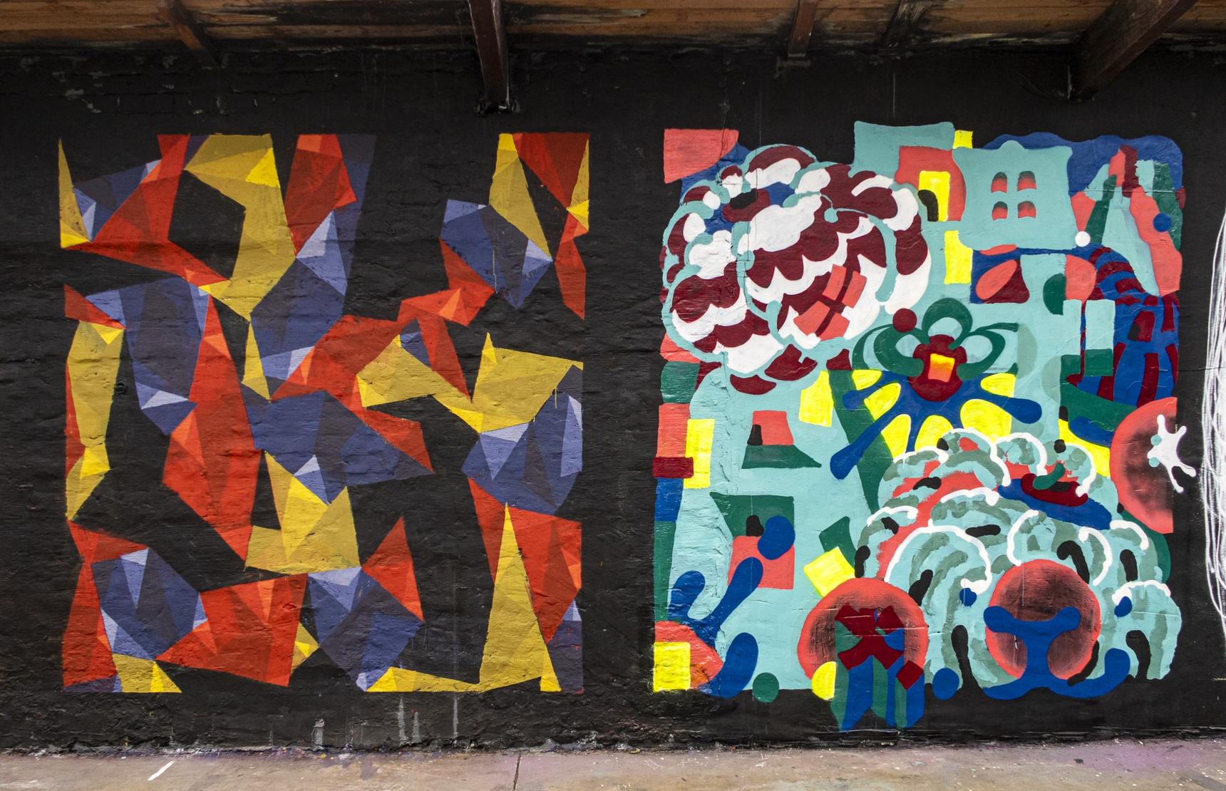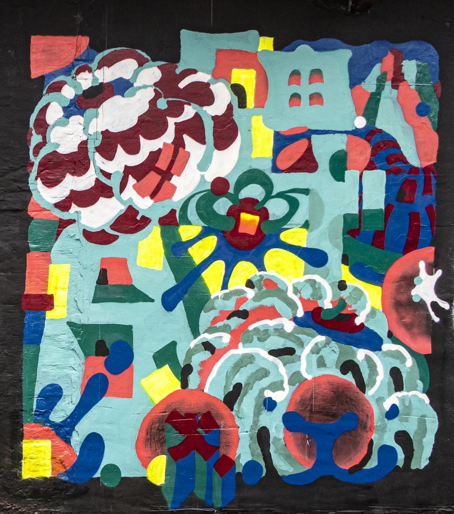 Oresto created two murals for Abstract Session 3, held on 7 and 8 February at the Urban Art Centre in Forest. The festival celebrated the 40th anniversary of the leading Brussels street artist Eyes-B.