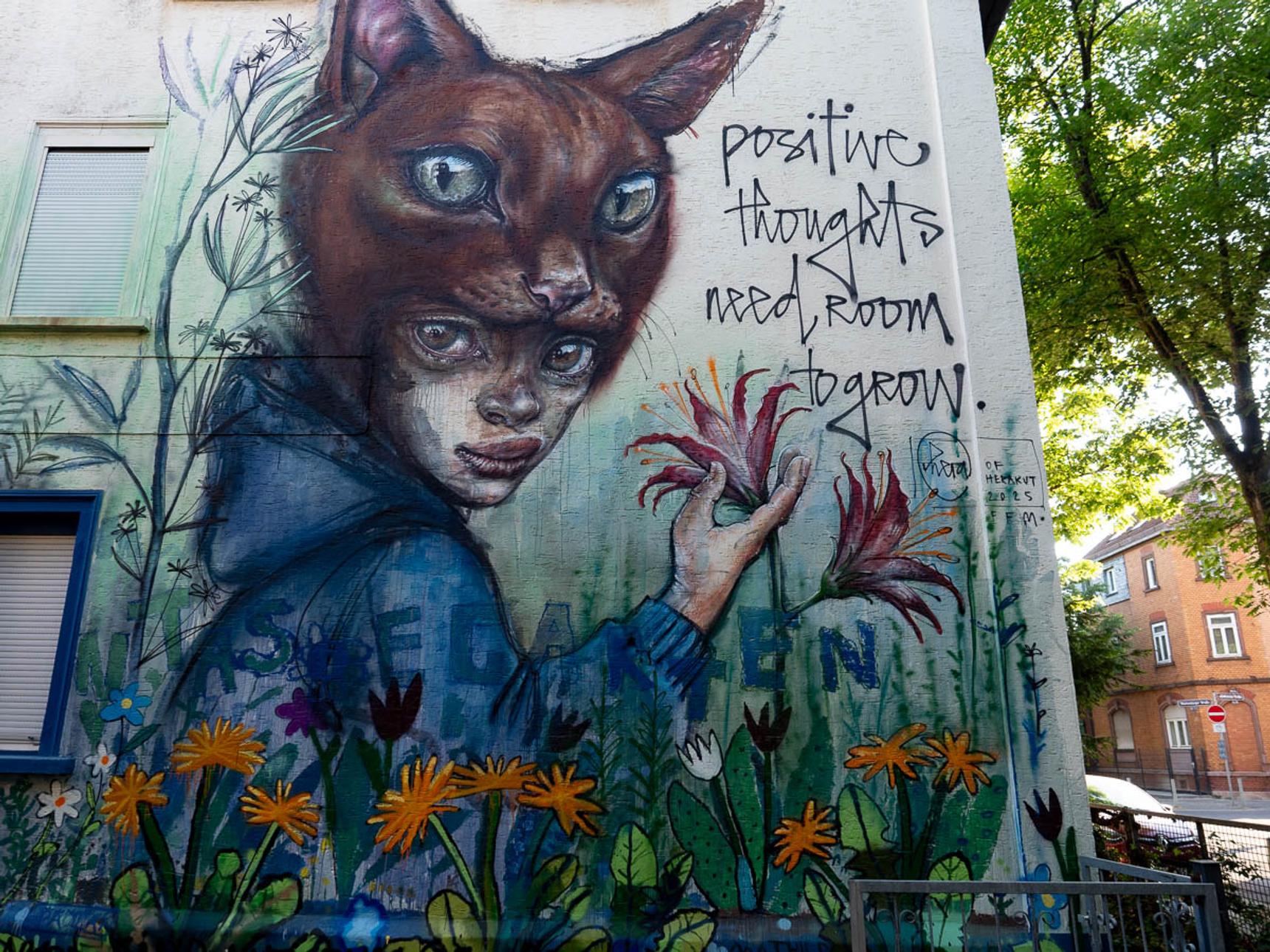 Mural is from April 2025. Hera worked in a workshop with children in the lower part of the wall. On the same property you can find a few great stencils from JPS. You can find more information about the process behind the following Link: https://www.flickr.com/photos/60386pixel/albums/72177720325038267/
