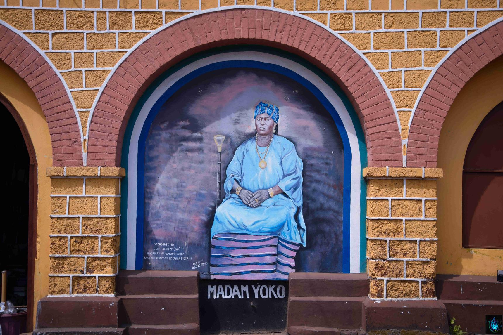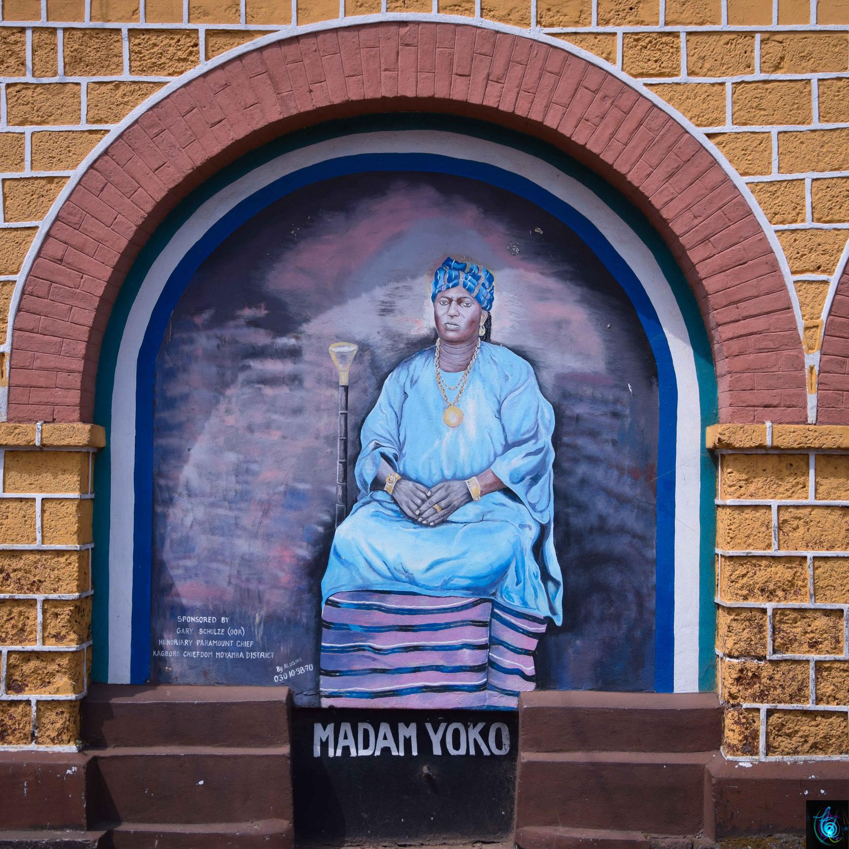 Mural of Madam Yoko on the wall of Big Market, Freetown.