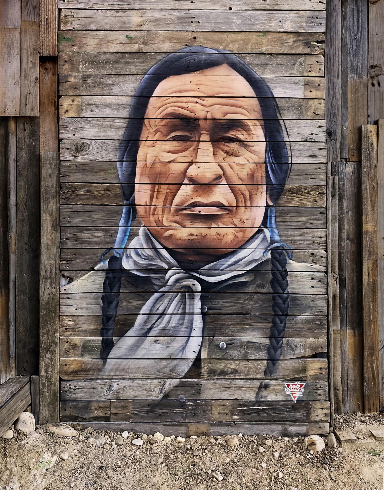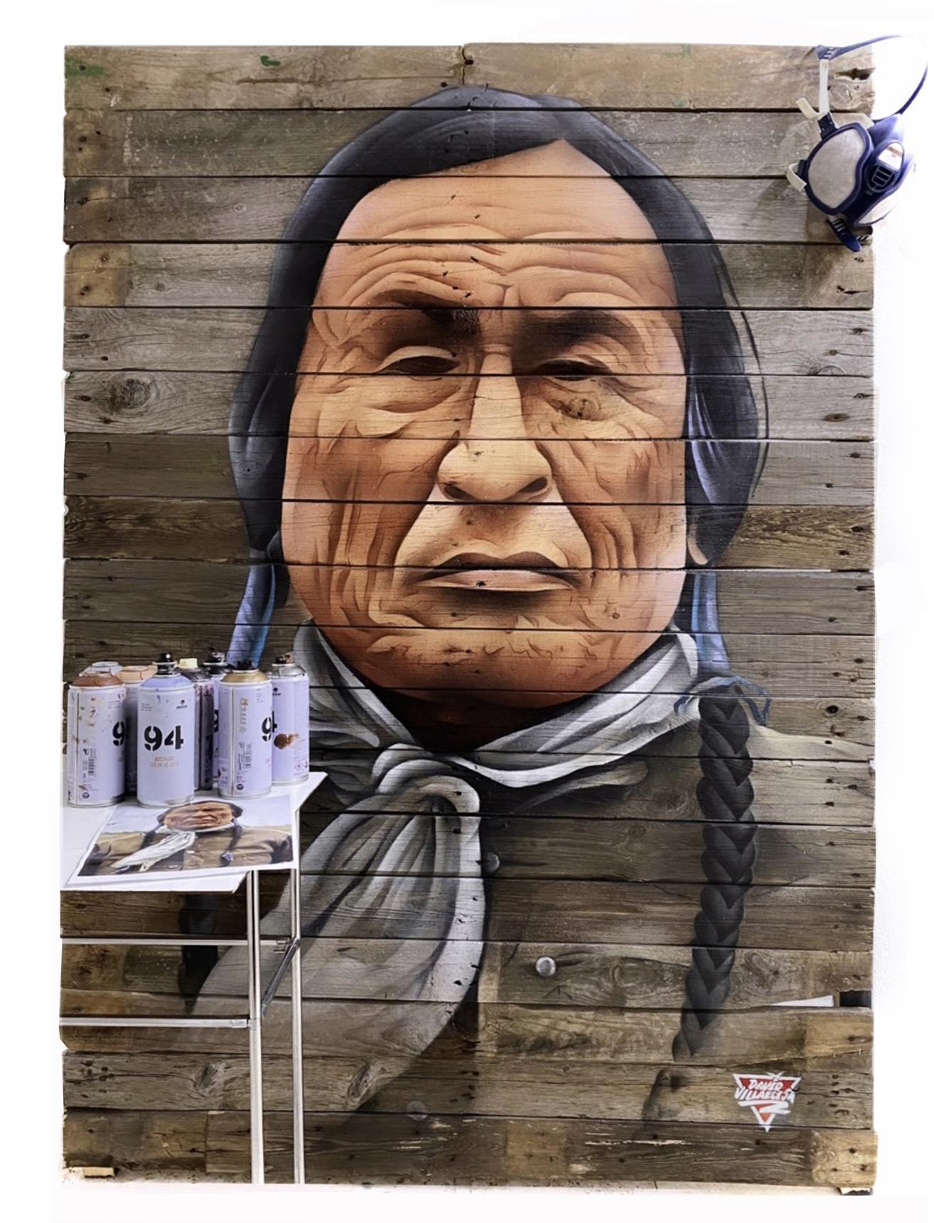 Thus, the support does not simply hold the image; it reinforces its meaning. Wood, born from the earth and shaped by time, becomes a bridge between memory, resistance, and the indomitable spirit that Wooden Leg represented.