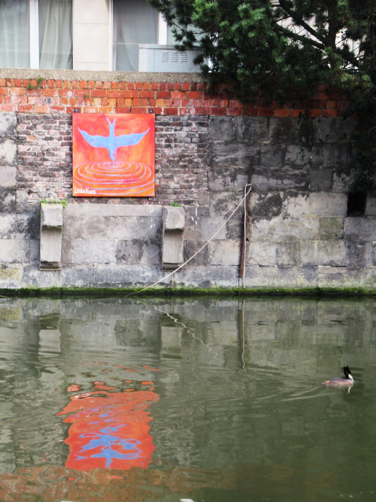 Met Waterweg werden een reeks werken langs het water geplaatst, je kan ze het best zien op het water.