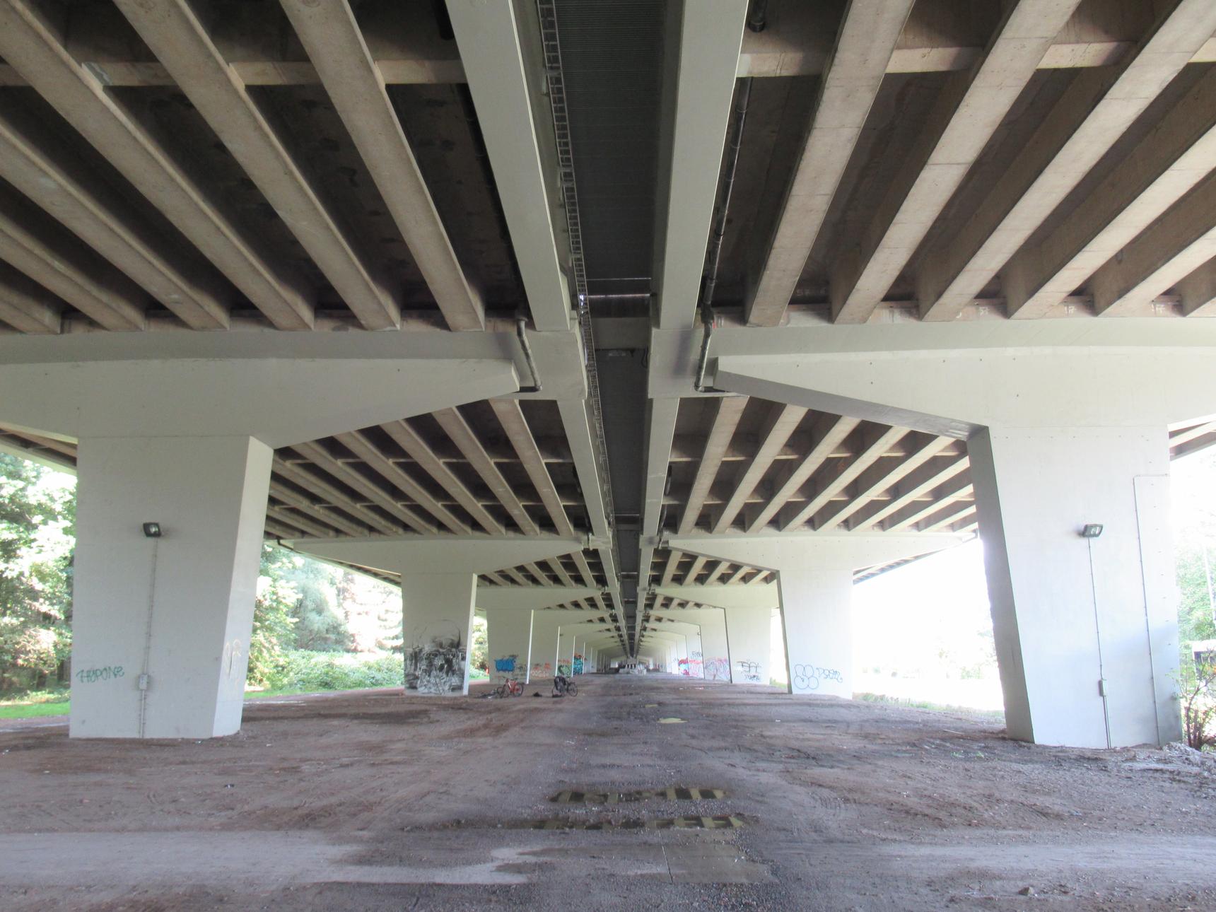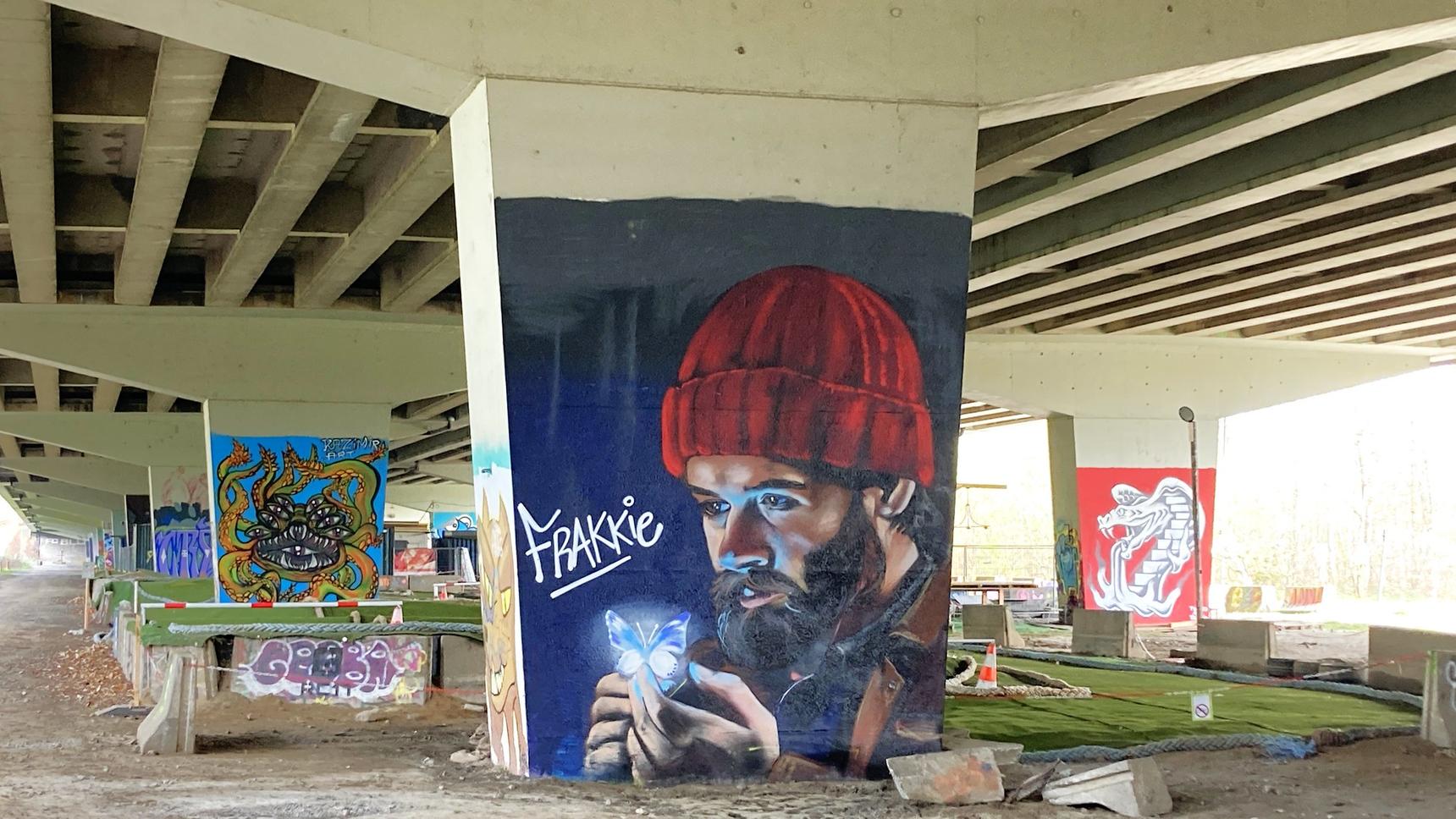 De pilaren 30 tot 47 onder de viaduct zijn een legale zone. Maak er een mooie plek van!