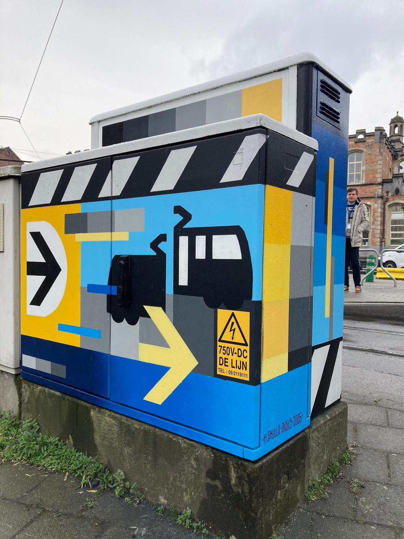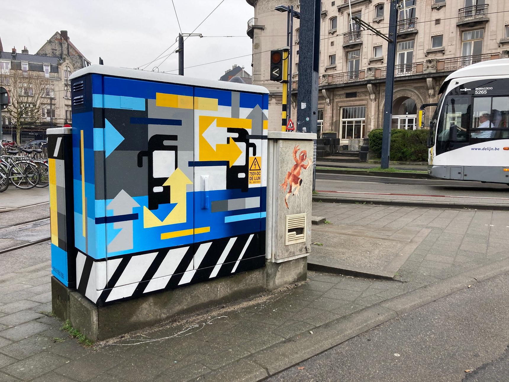 Elektriciteitsbox helemaal in de stijl van de trams van Gent.