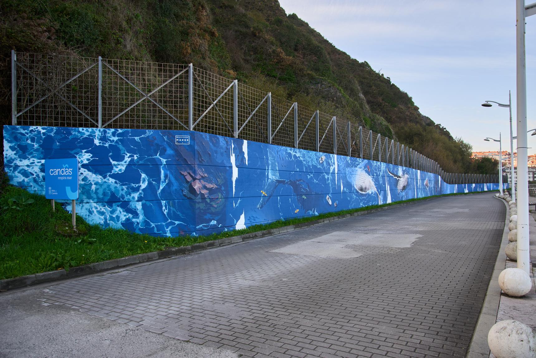 The mural has now become the new image of the seafront promenade, covering the entire wall.