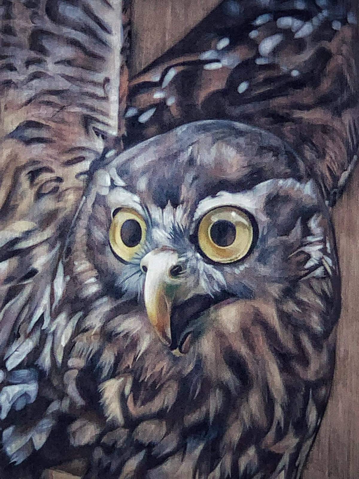The Barking Owl is now considered to be an endangered species, there is said to be only 50 breeding pairs currently living in the wild. A mural such as this on such a grand scale will now hopefully bring to light to the public the current struggle and peril and plight of this magnificent bird.