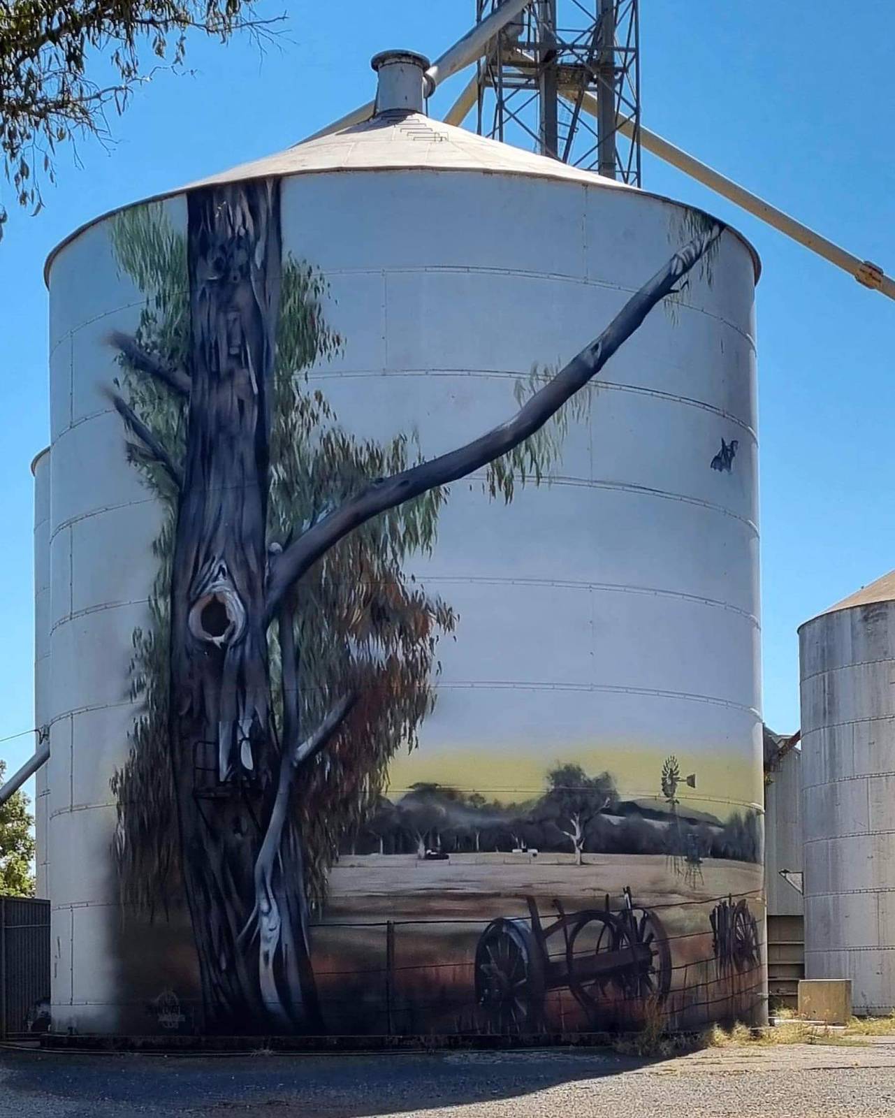 Goorambat Silo Art was the second Silo in the North East Silo Art Trail of Victoria to be completed. It was painted by Jimmy D’Vate and completed in March 13, 2018.