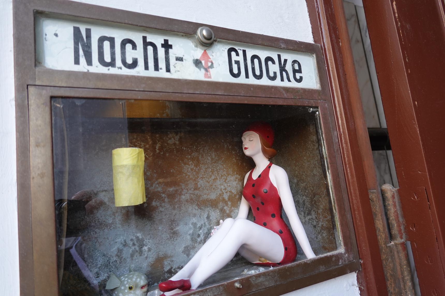 This lady in red seems to live under a night-bell of a former pharmacy. Meanwhile she gets better equiped in her small space.