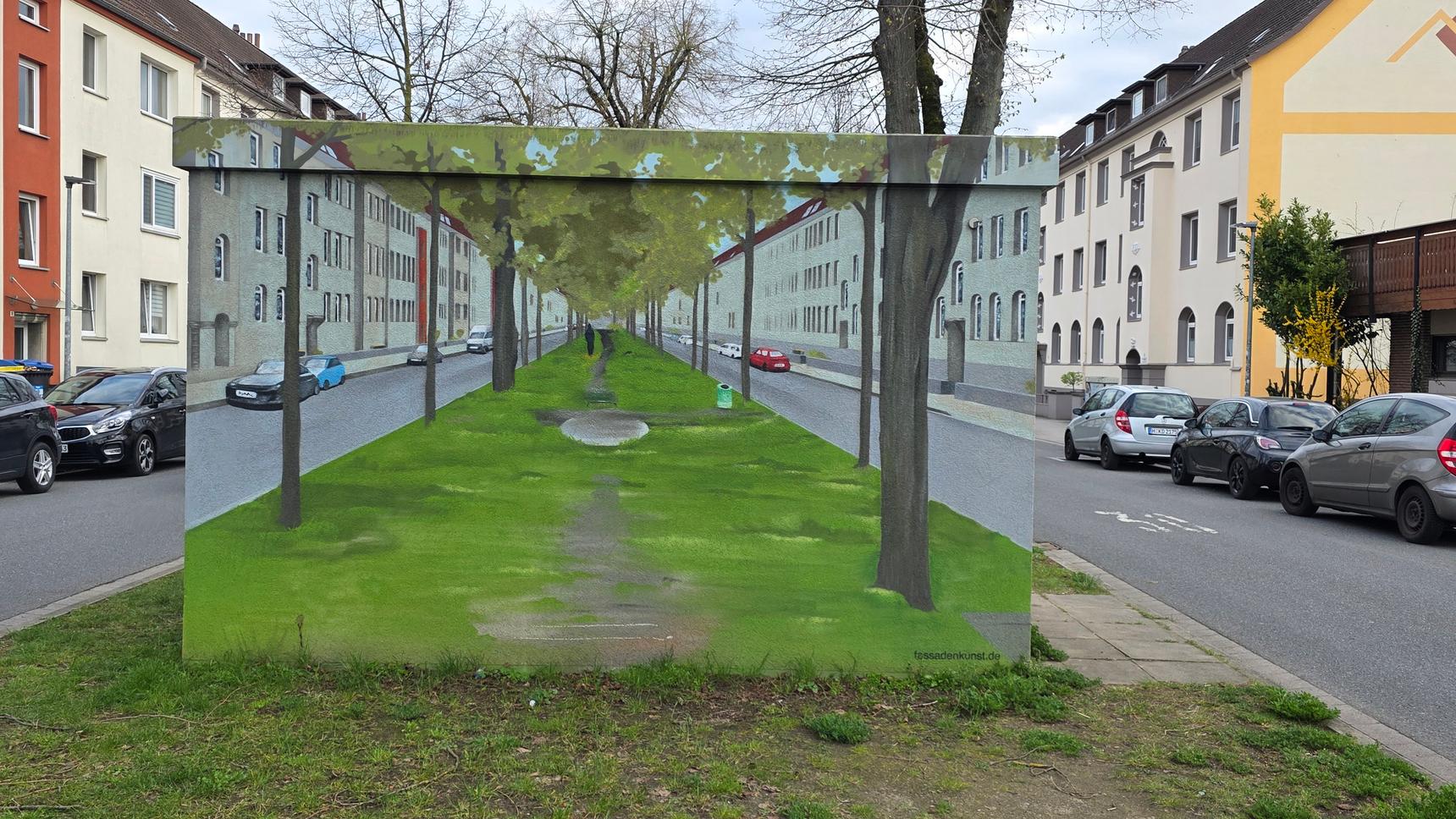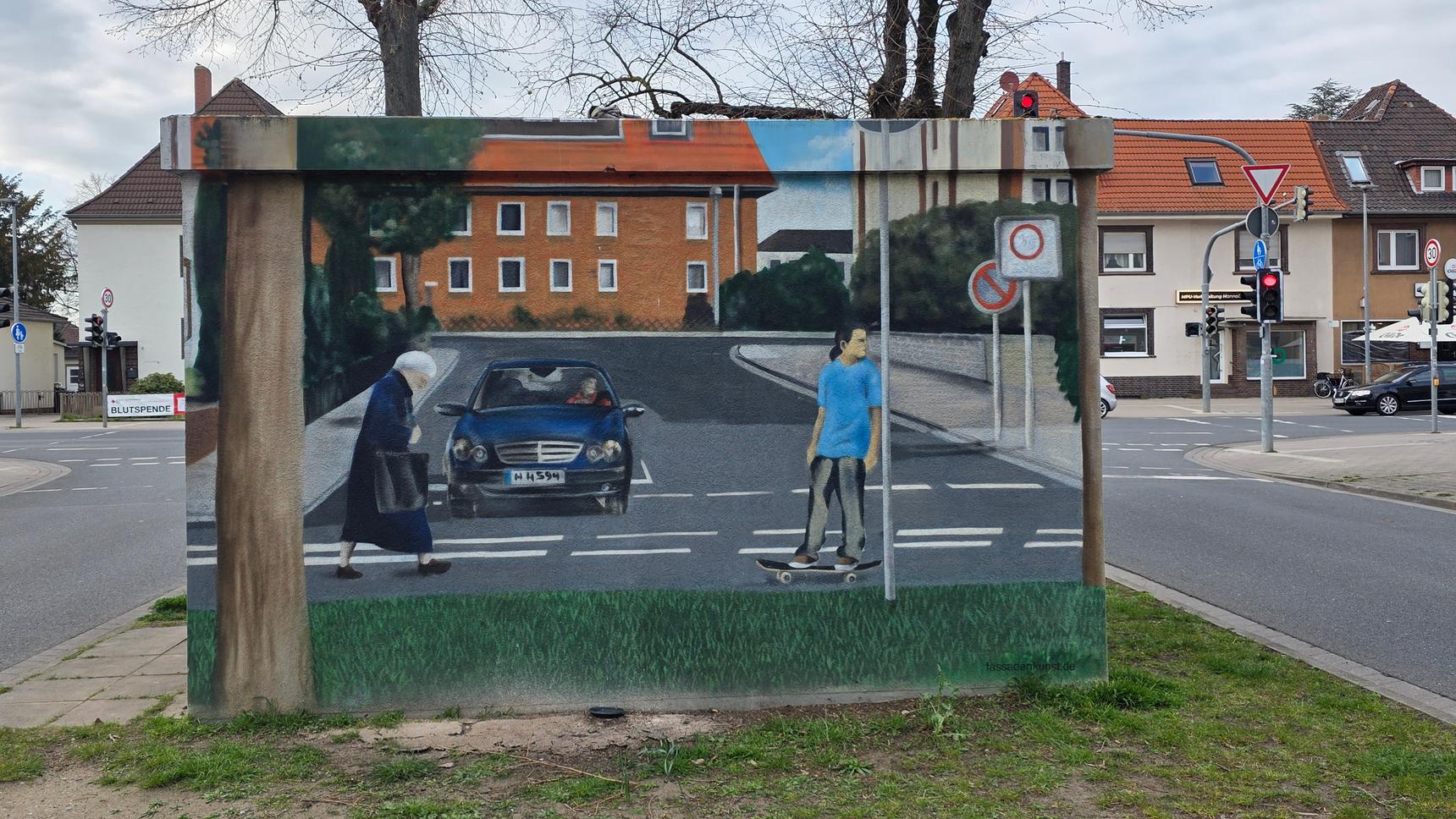 If you stand at just the right angle, you'll discover that the street art blends seamlessly with its surroundings. A very well-executed piece.