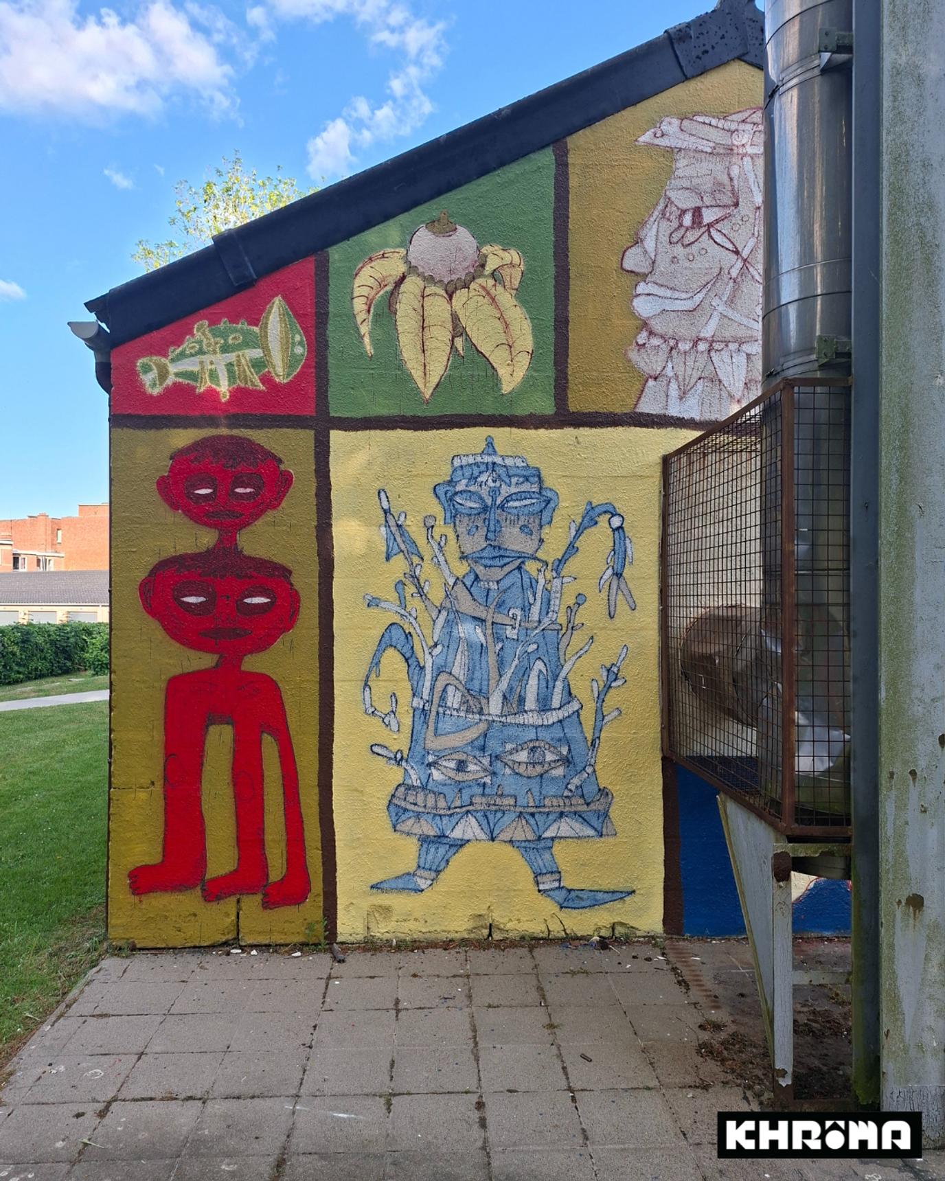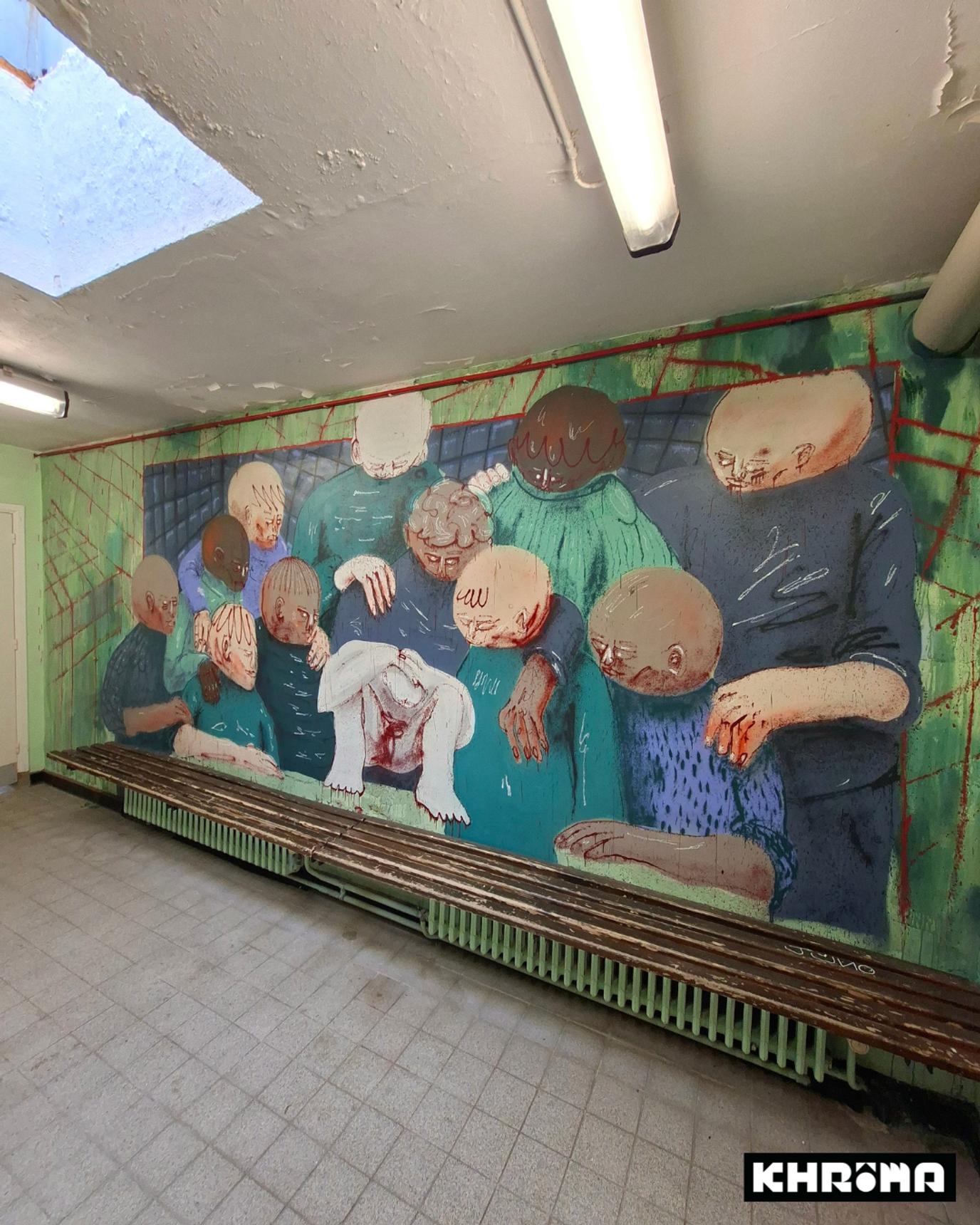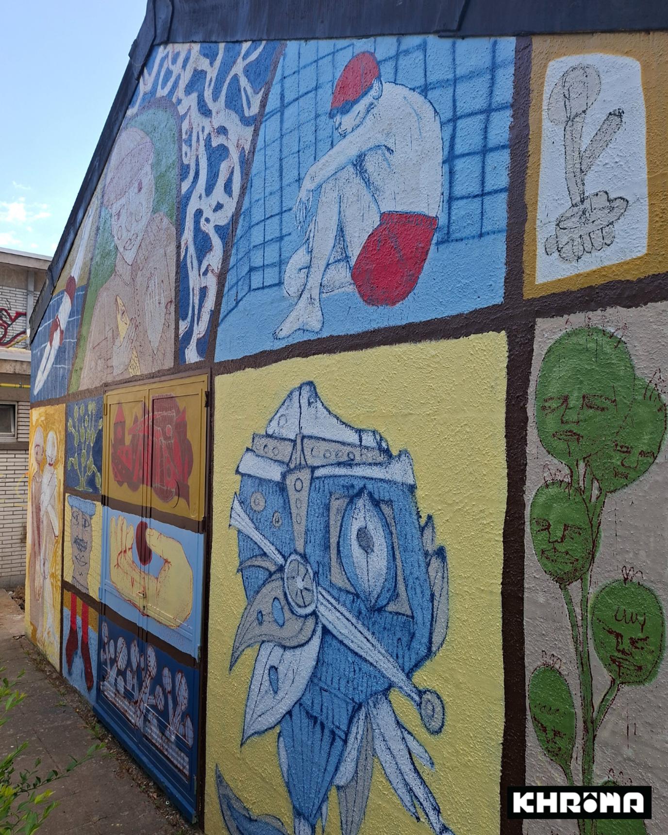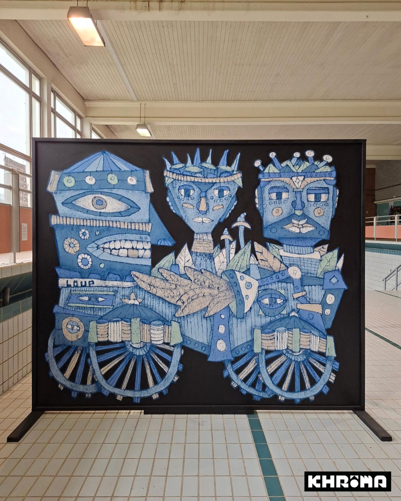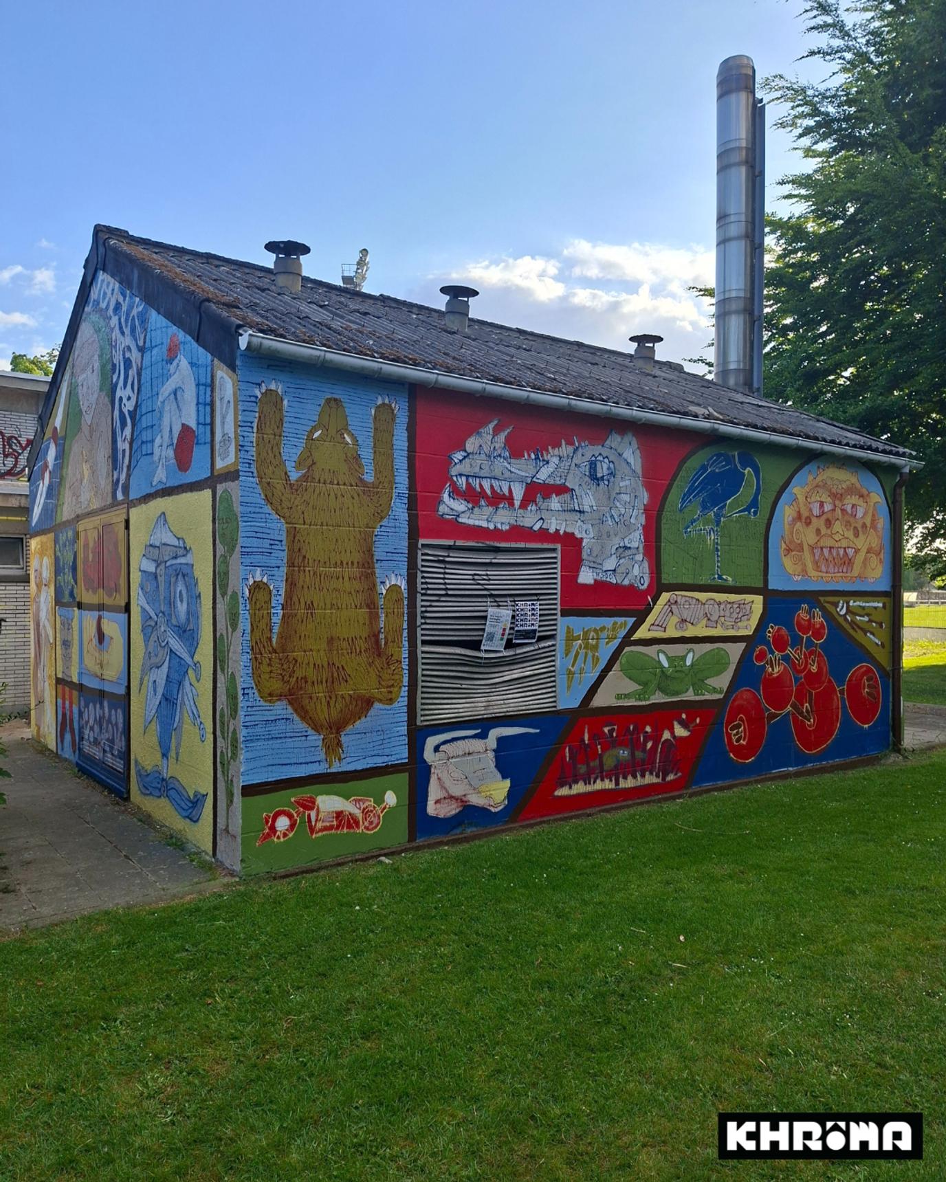 Mural by Loup Bellem and Juno Semesa for the Khrôma exhibition at the former swimming pool in Hannut.