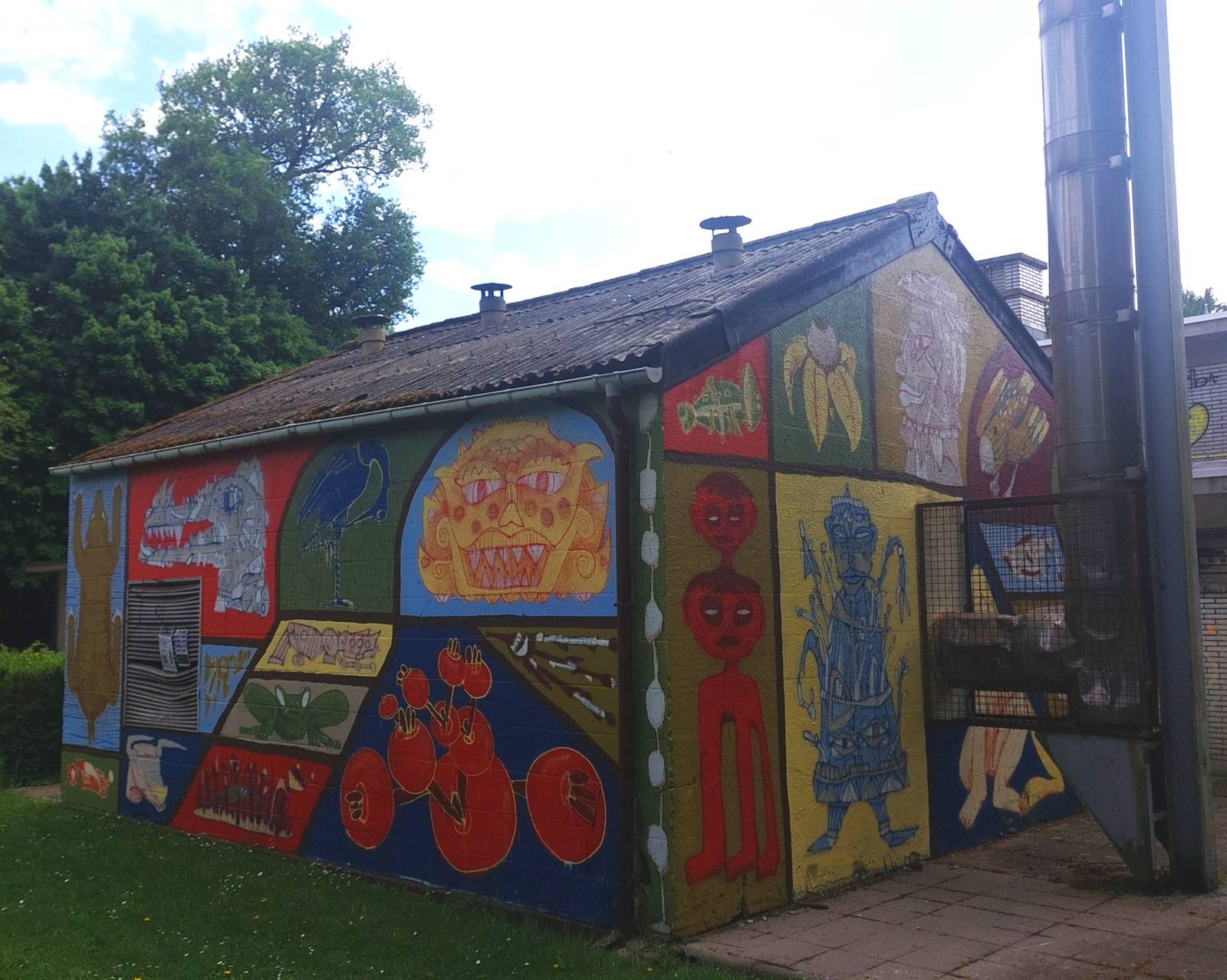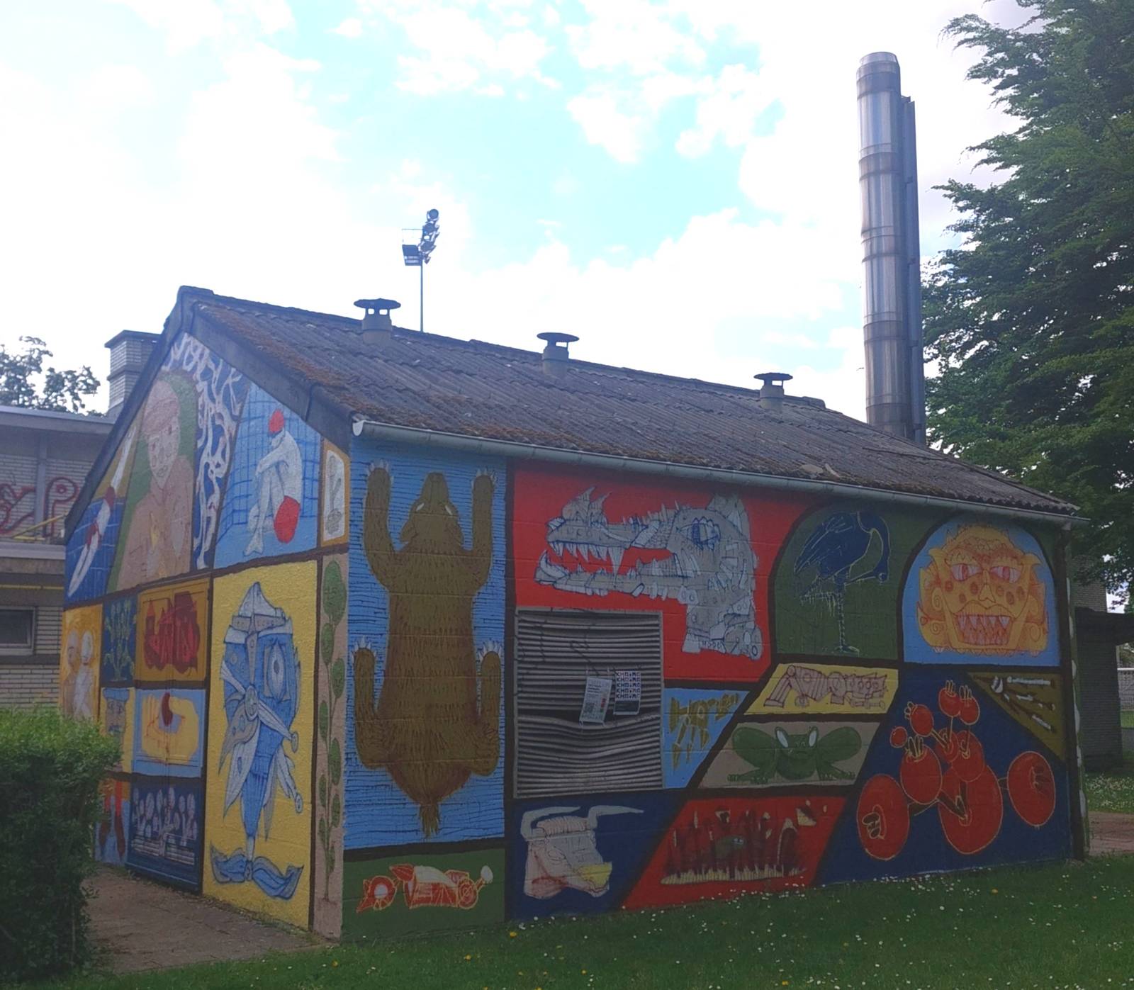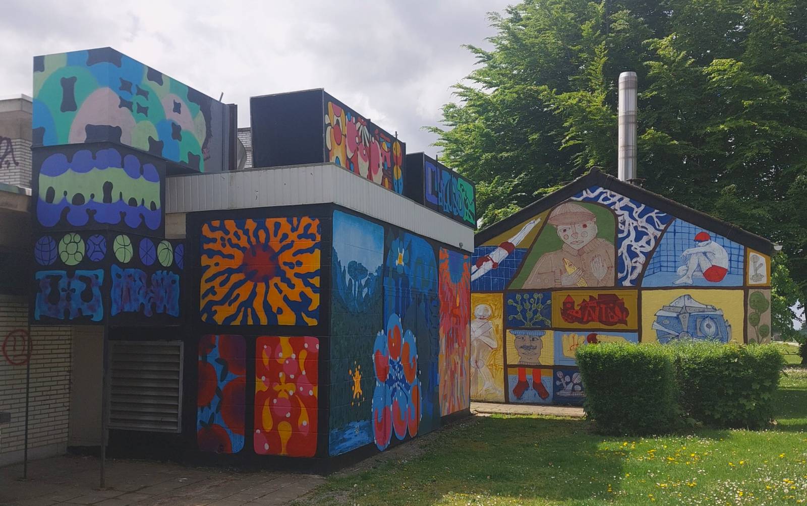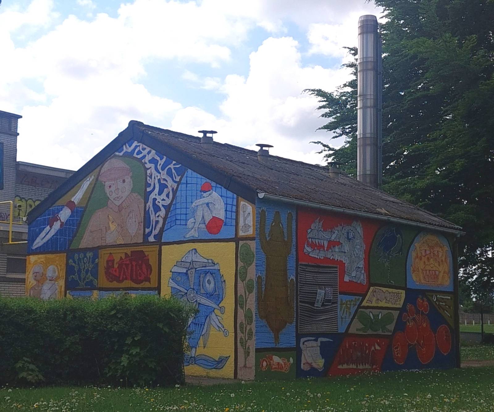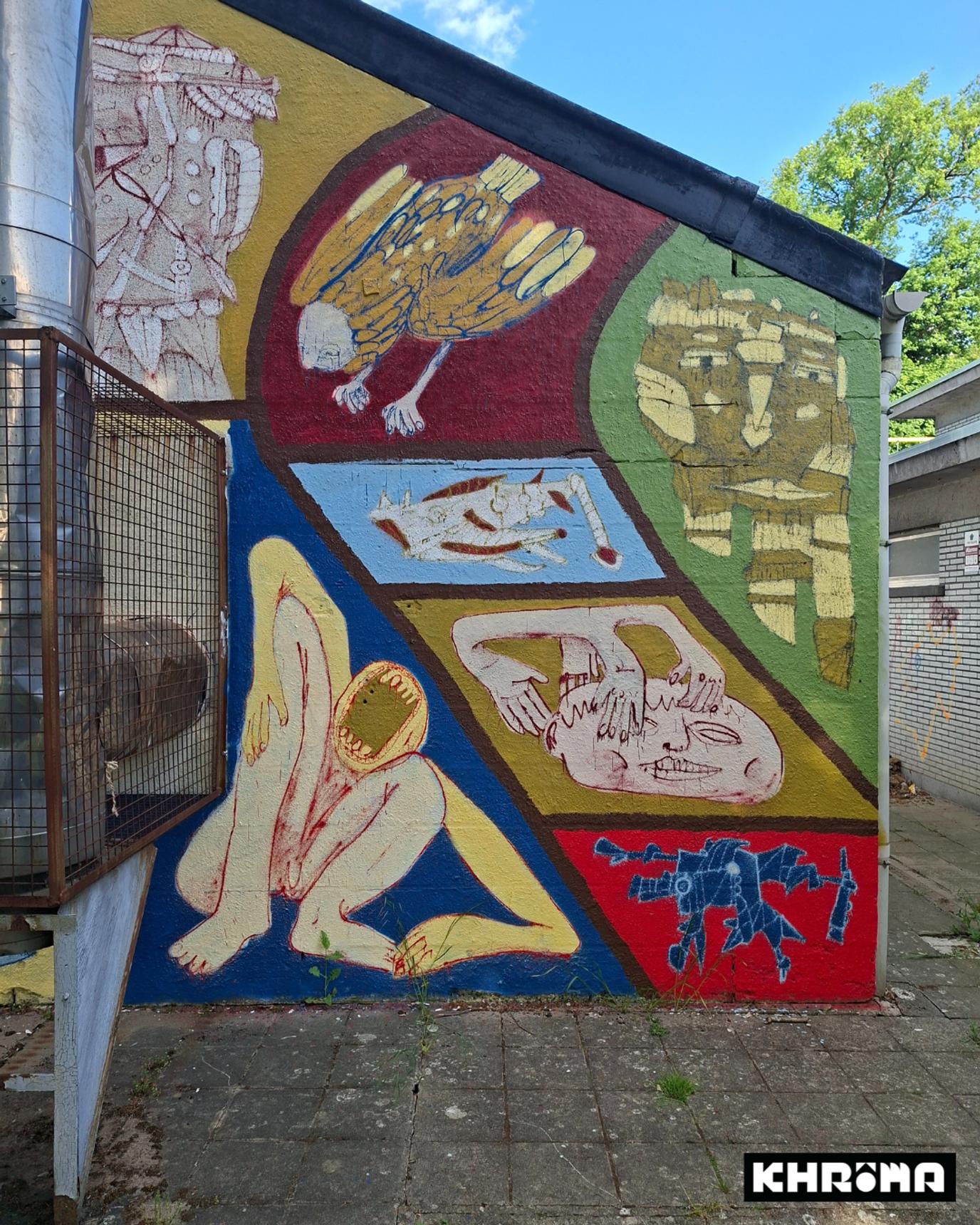 Mural by Loup Bellem and Juno Semesa for the Khrôma exhibition at the former swimming pool in Hannut.
