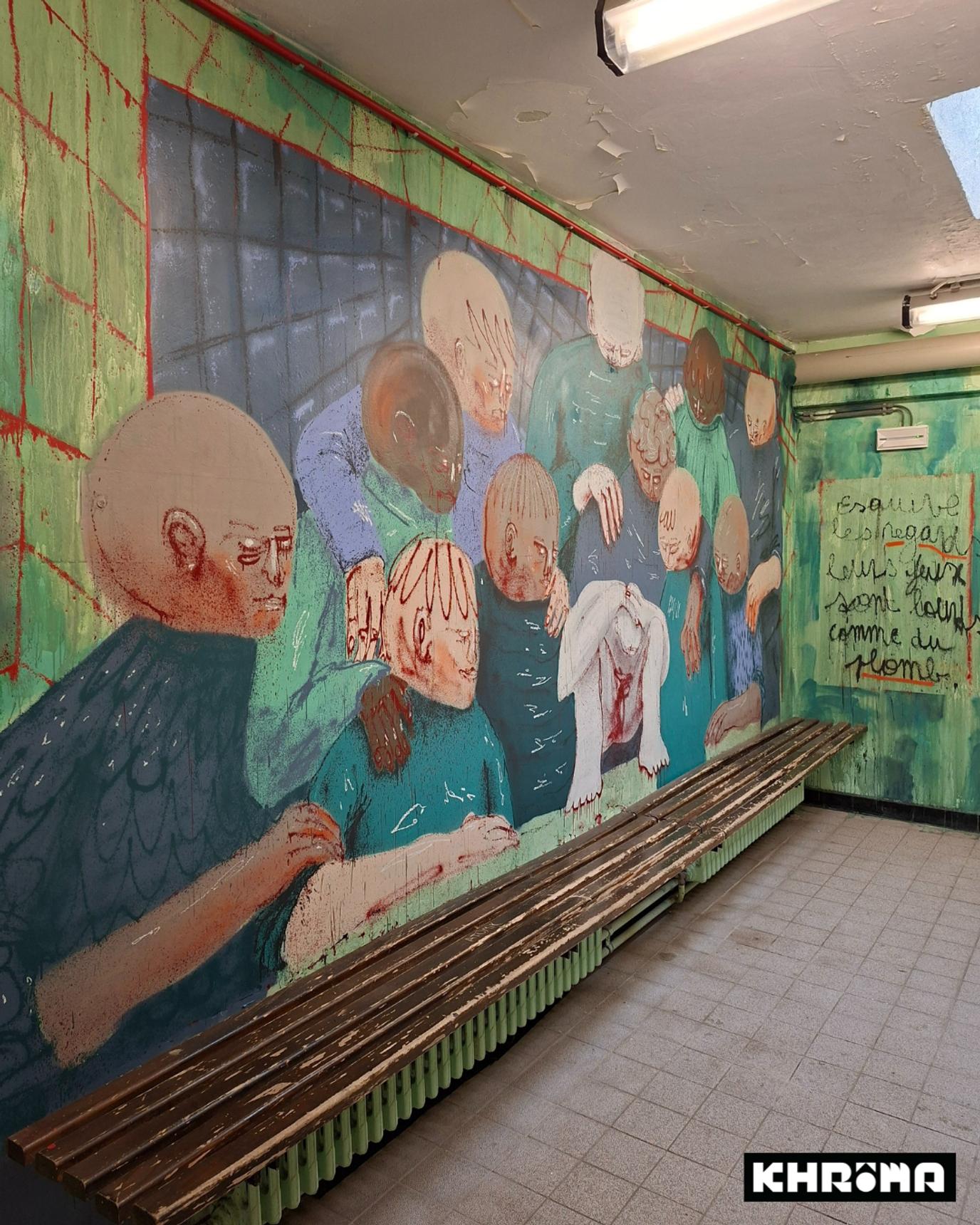 Peinture murale de Loup Bellem et Juno Semesa pour l'expo Khrôma à l'ancienne piscine de Hannut.