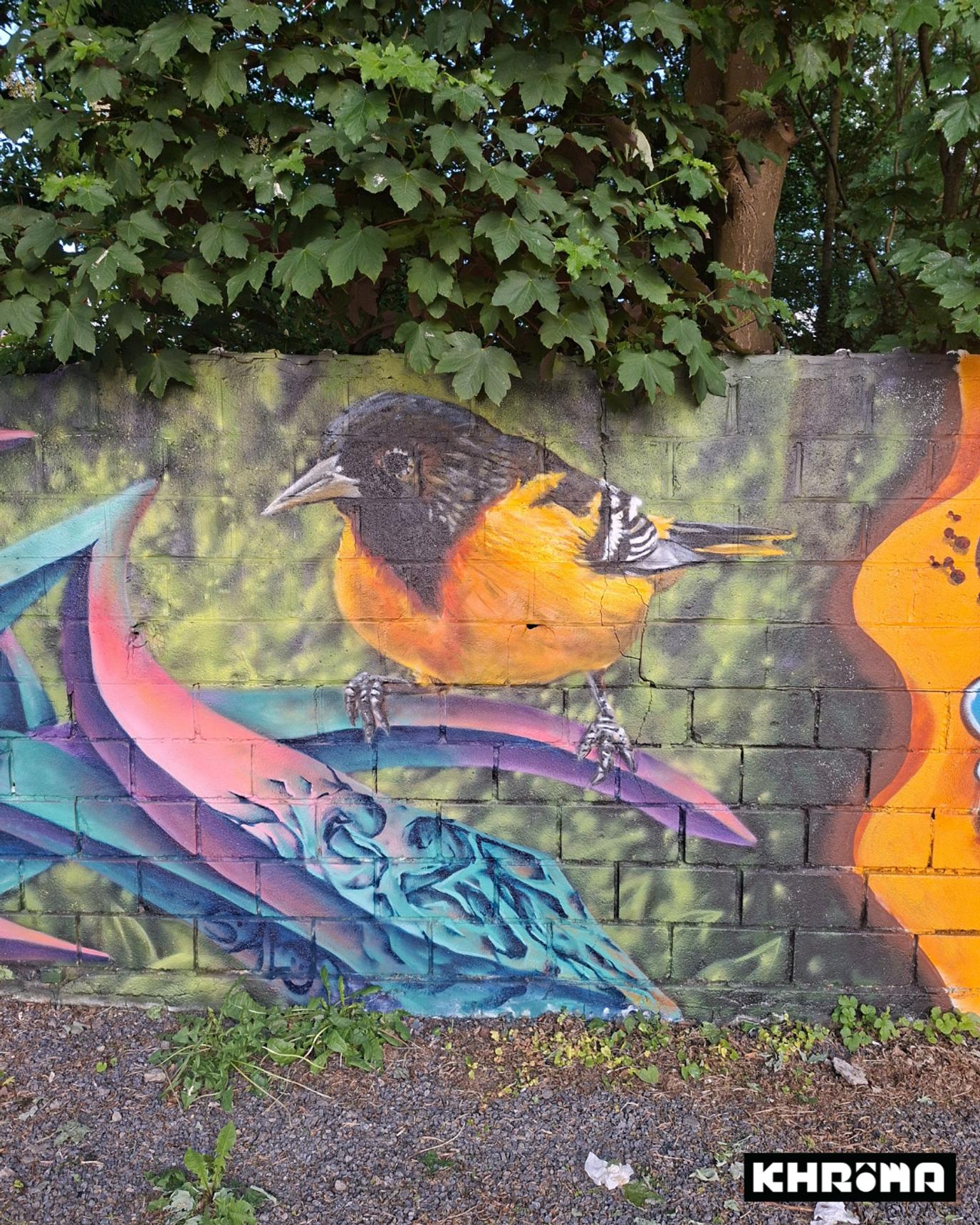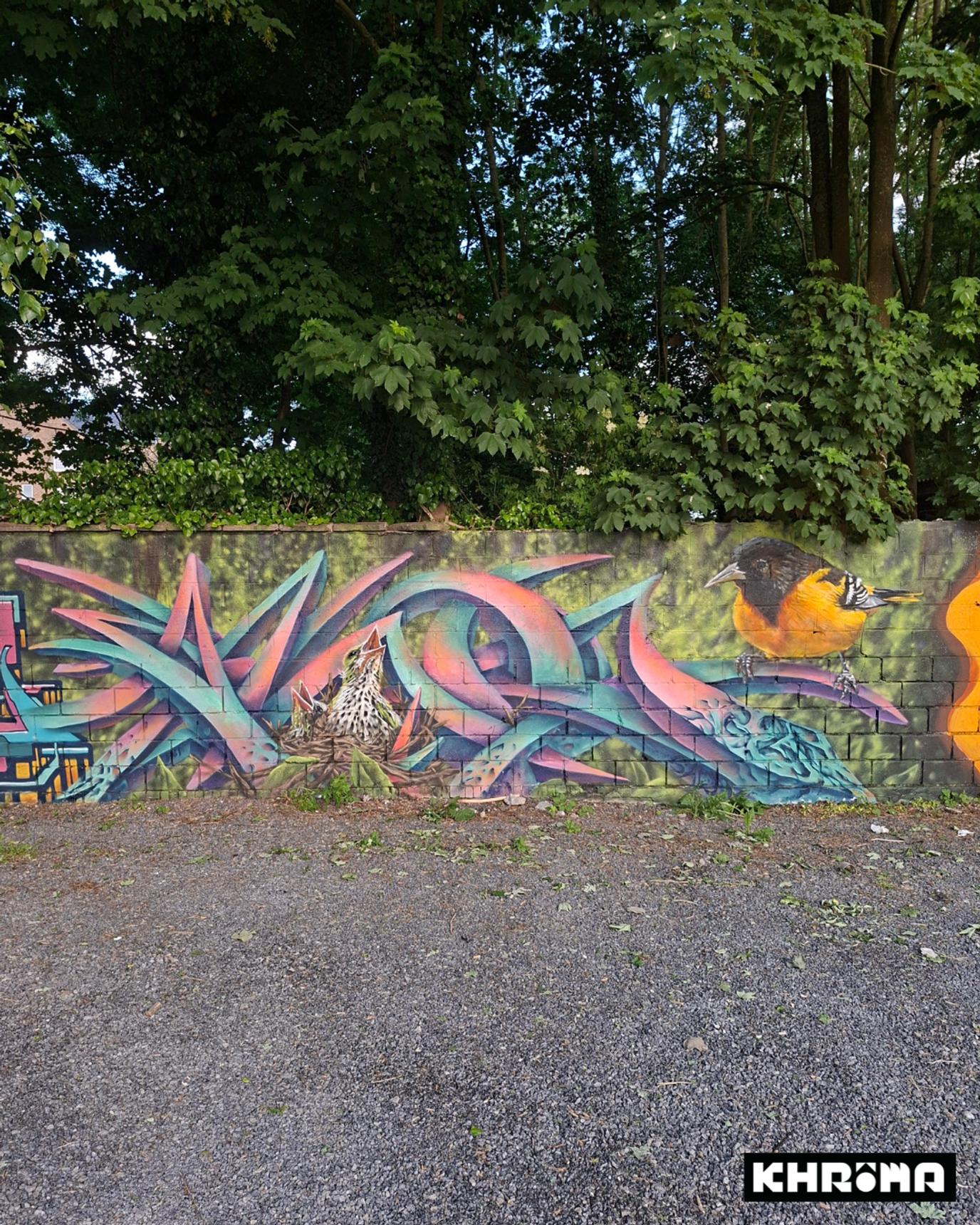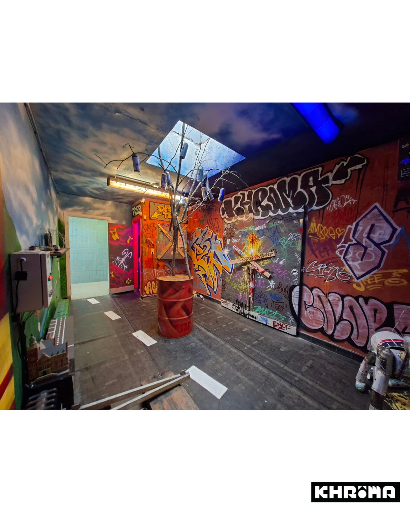 Peinture murale de Salö pour l'expo Khrôma à l'ancienne piscine de Hannut.