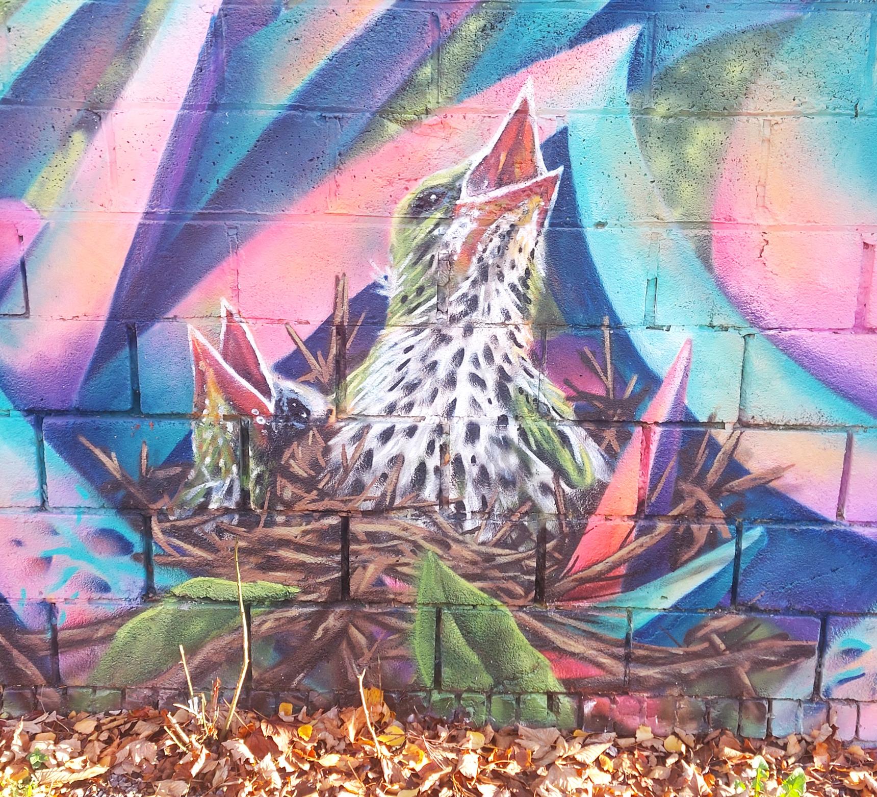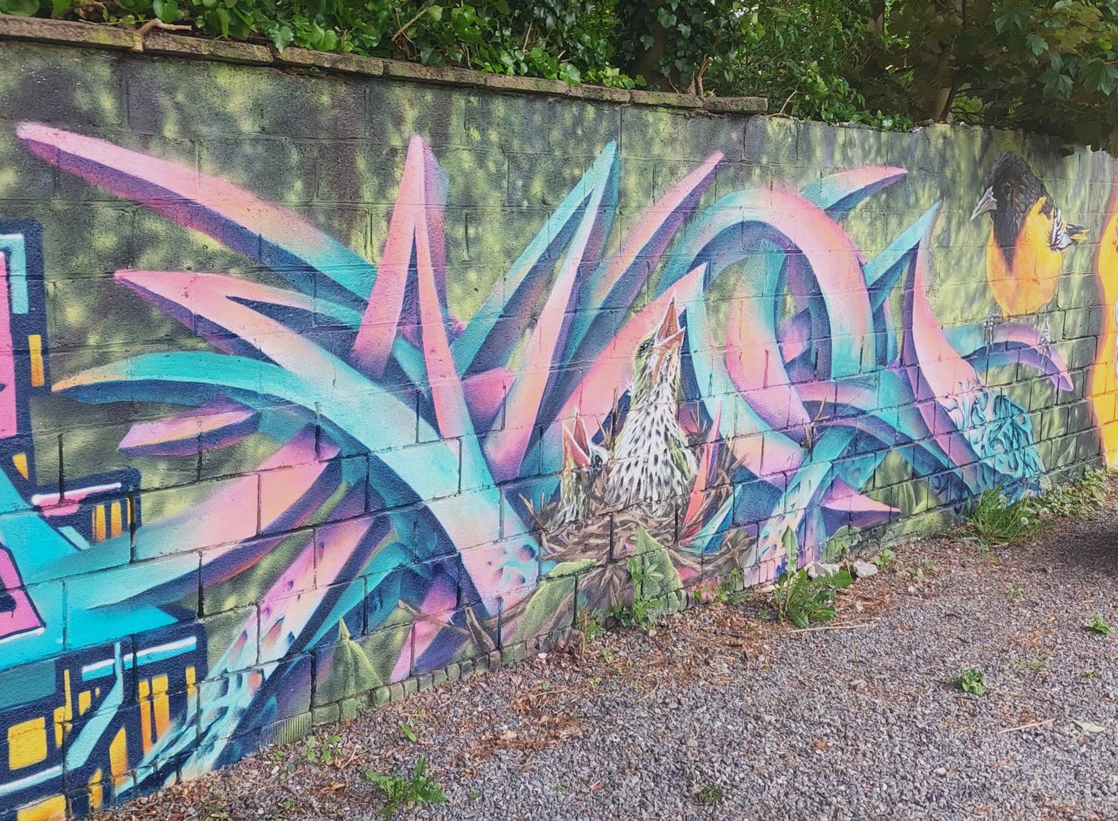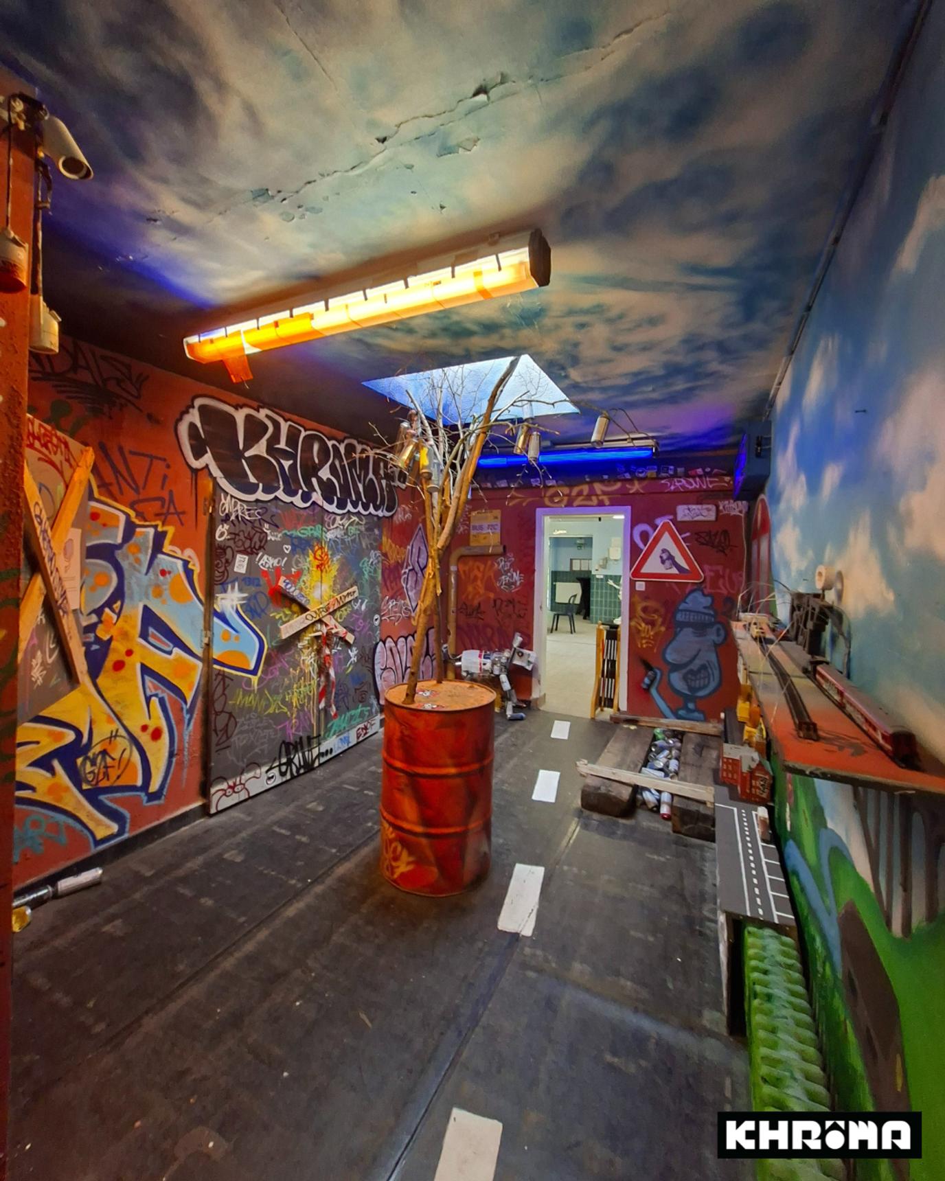 Peinture murale de Salö pour l'expo Khrôma à l'ancienne piscine de Hannut.