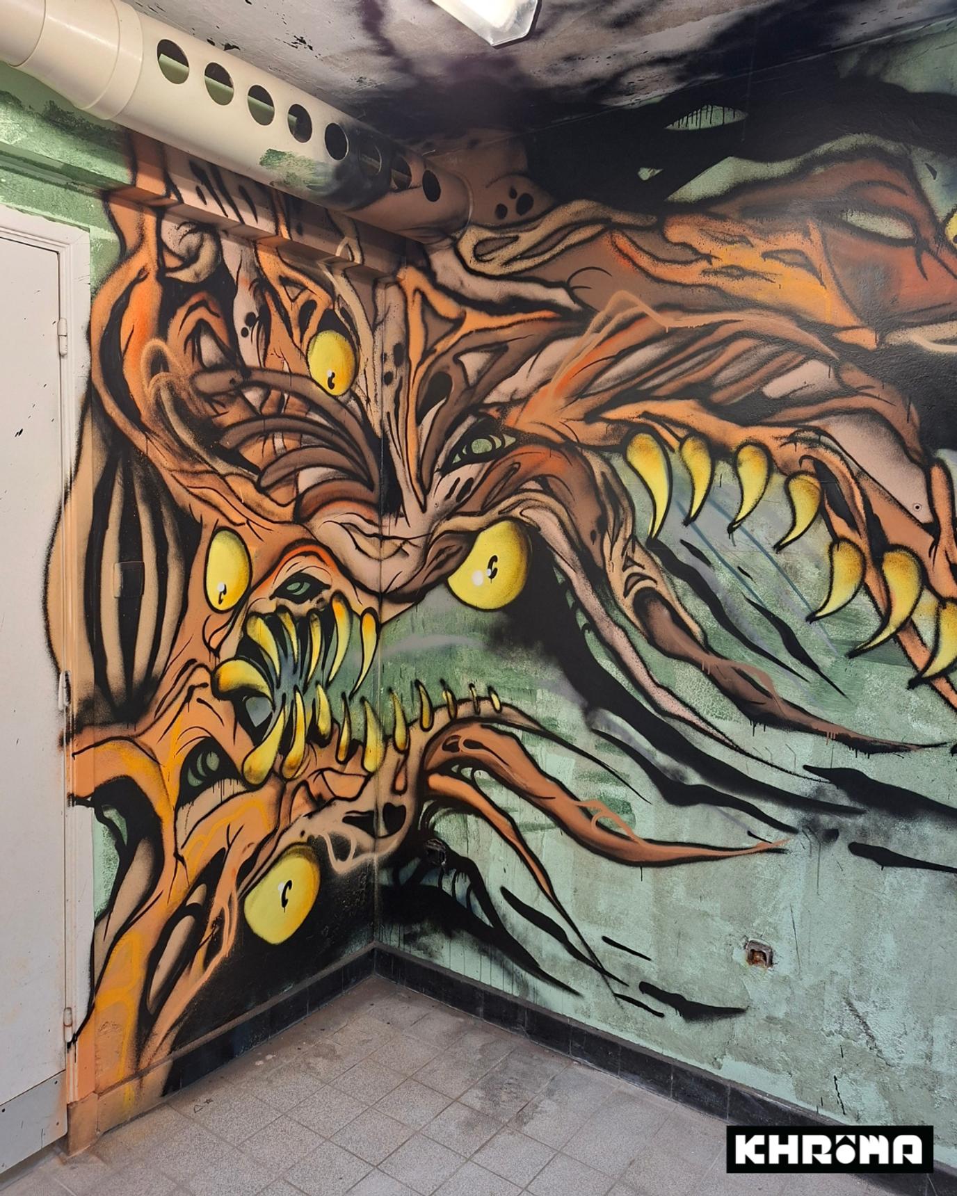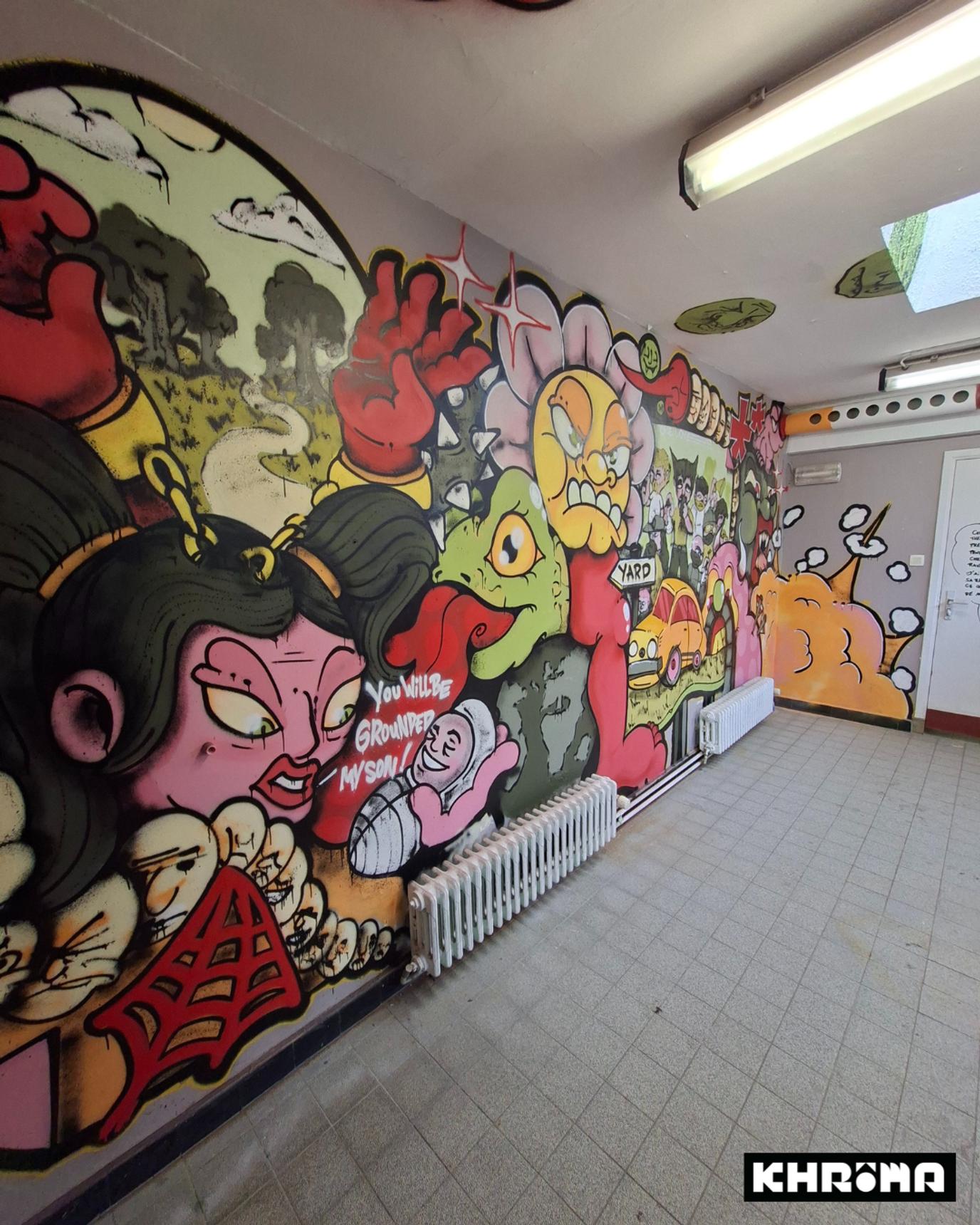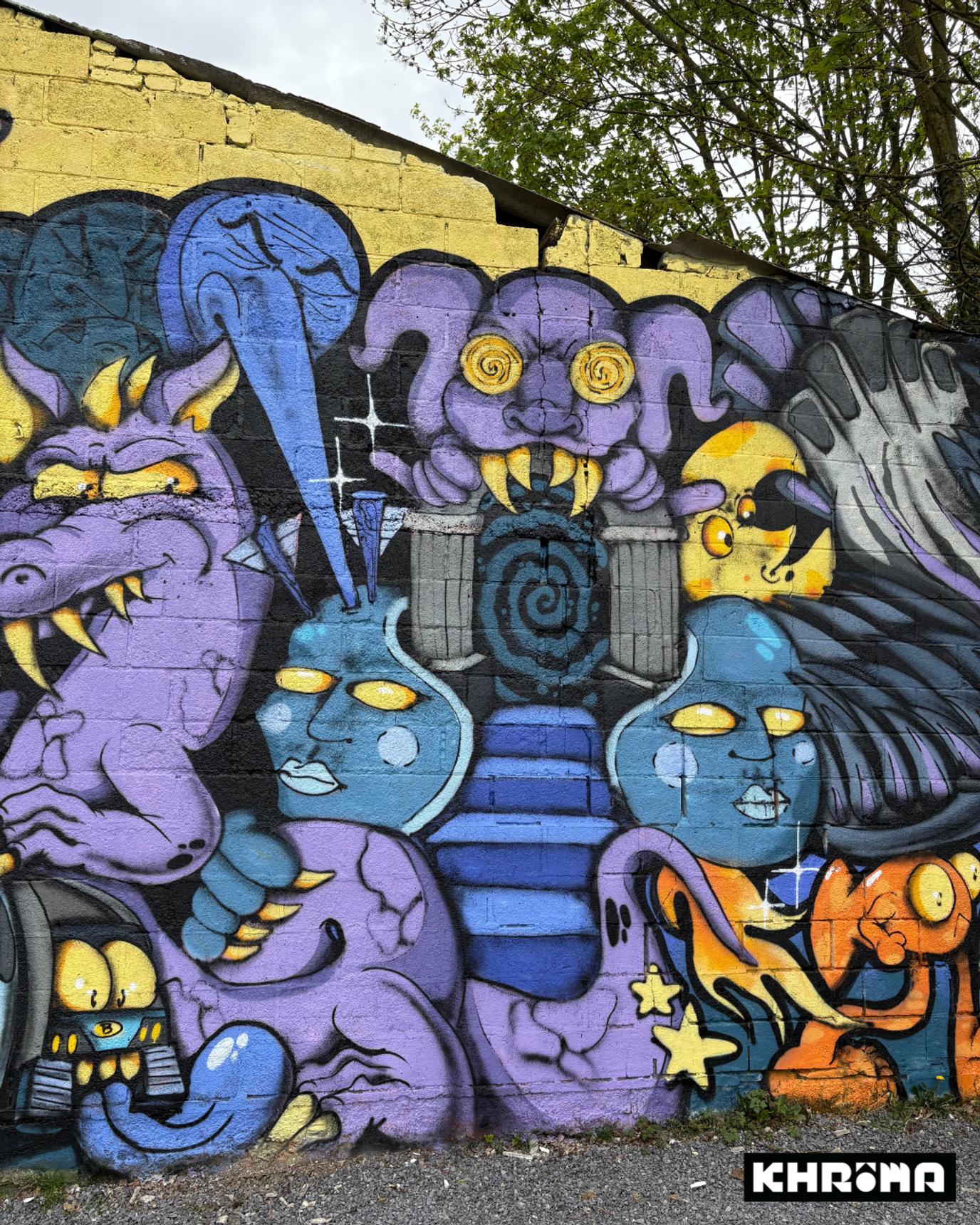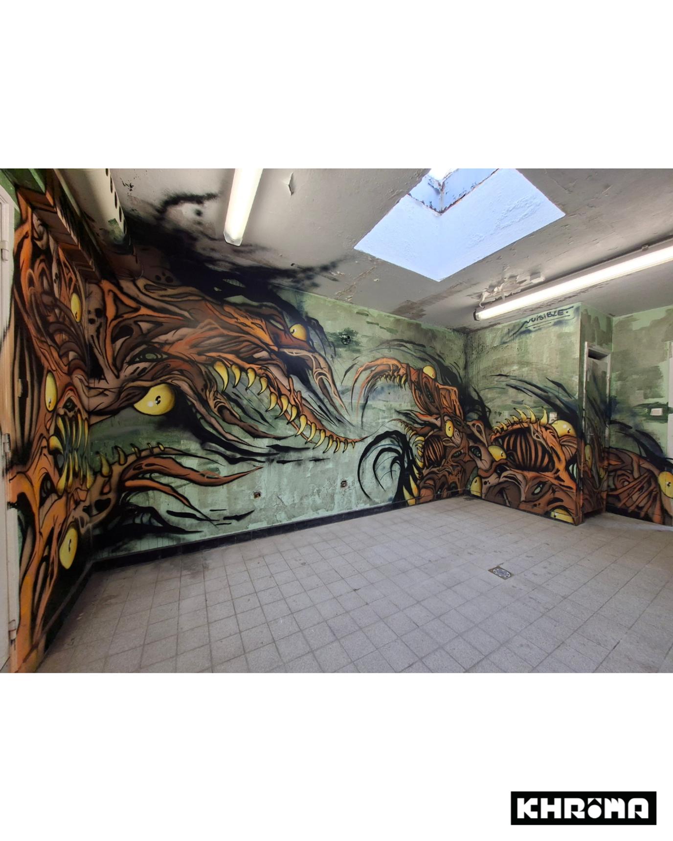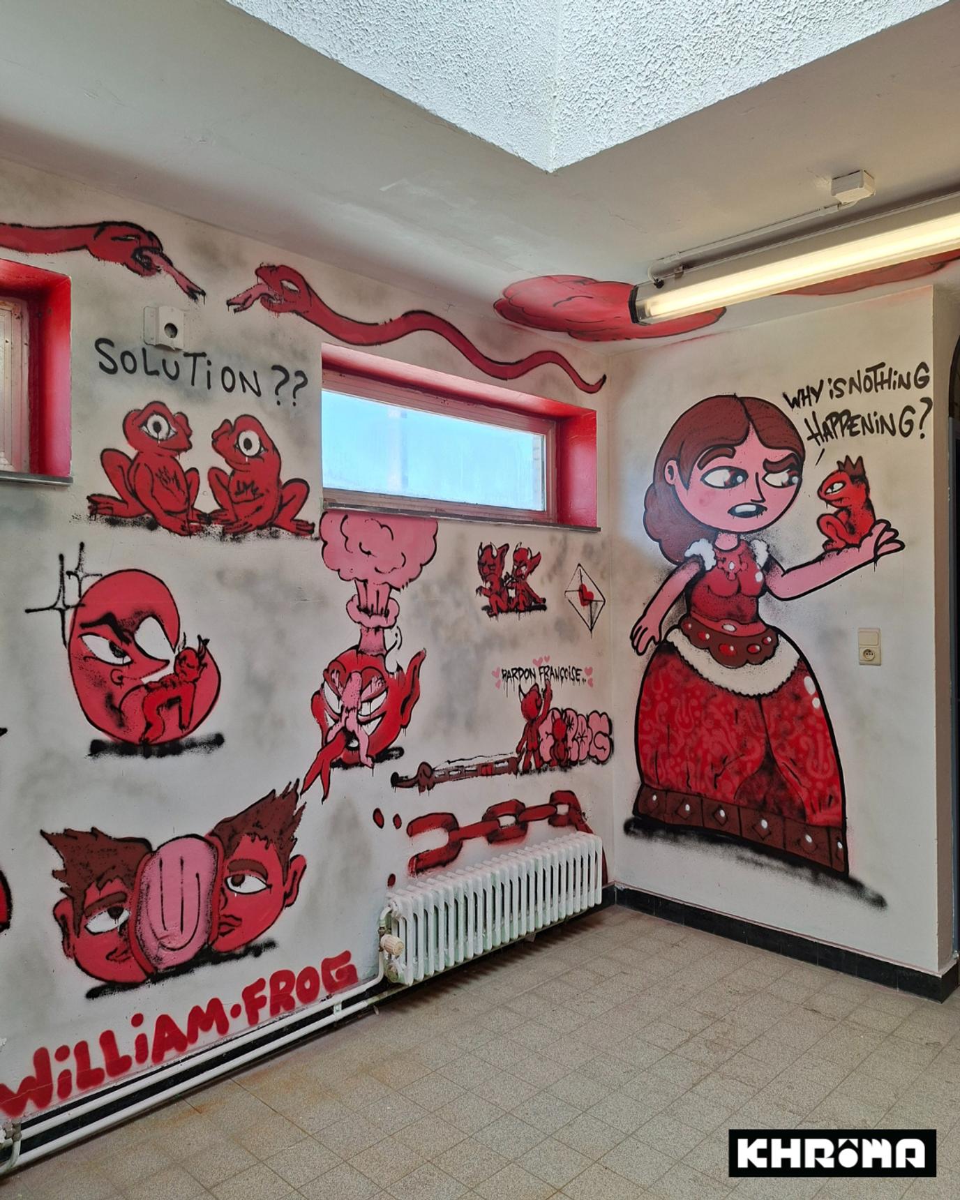 Collaboration between Nuisible et William Frog for the Khrôma expo at the old swimming pool in Hannut.