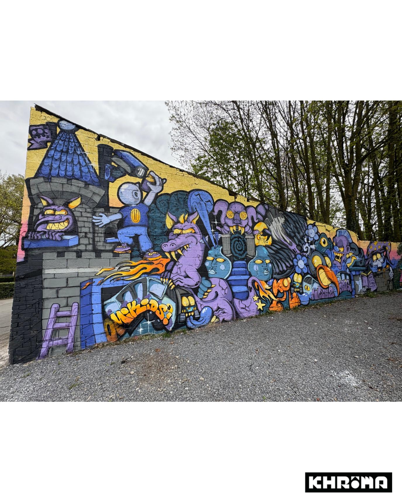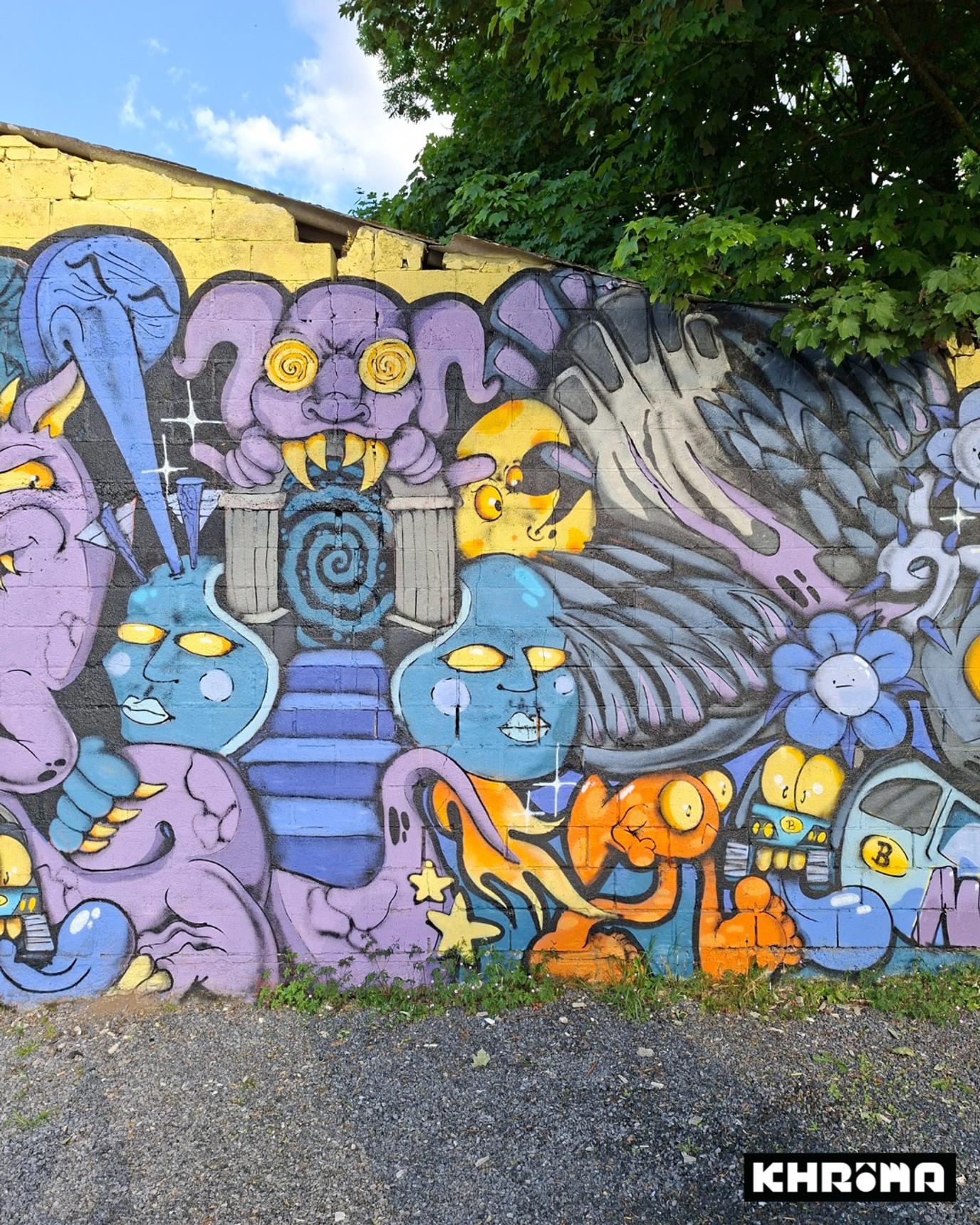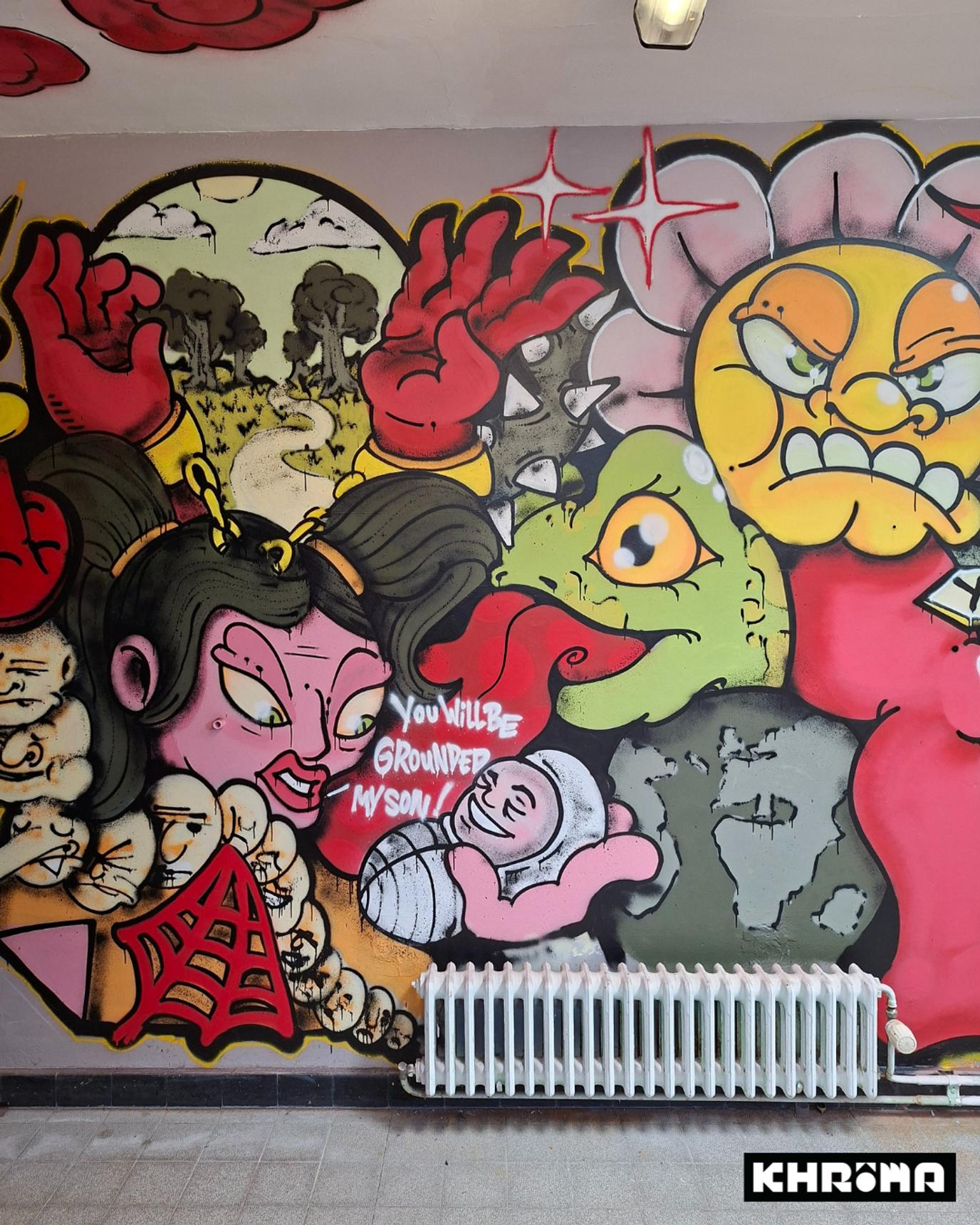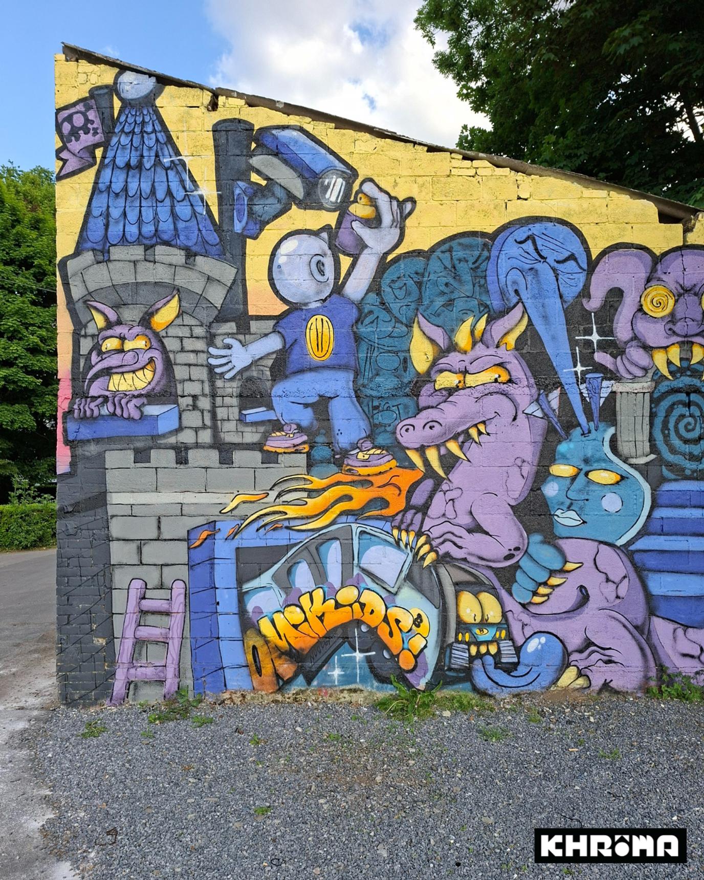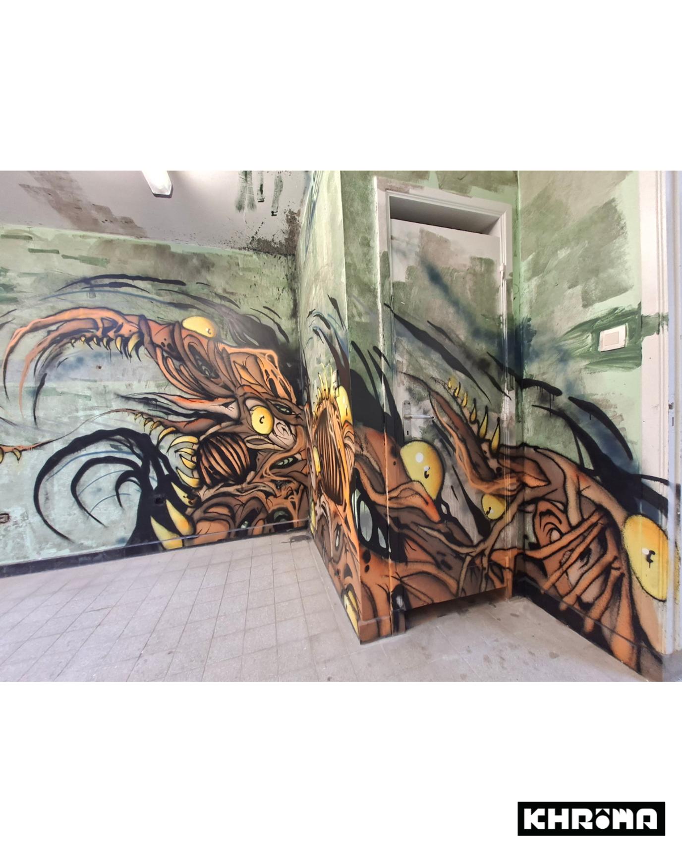 Collaboration between Nuisible et William Frog for the Khrôma expo at the old swimming pool in Hannut.