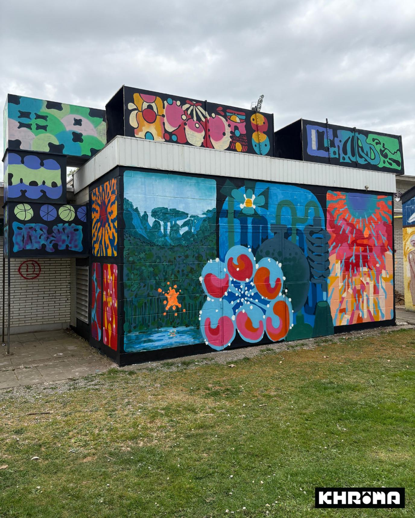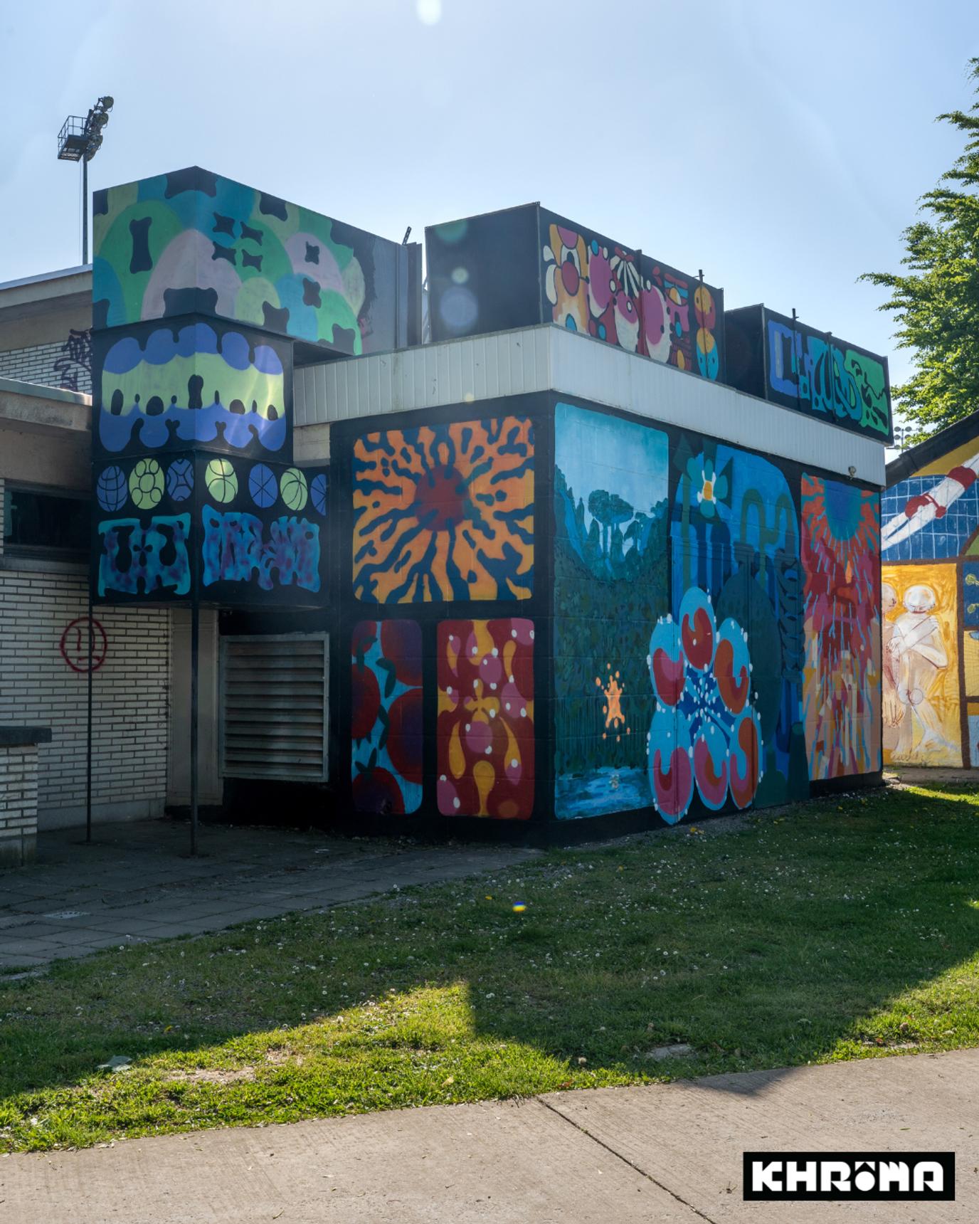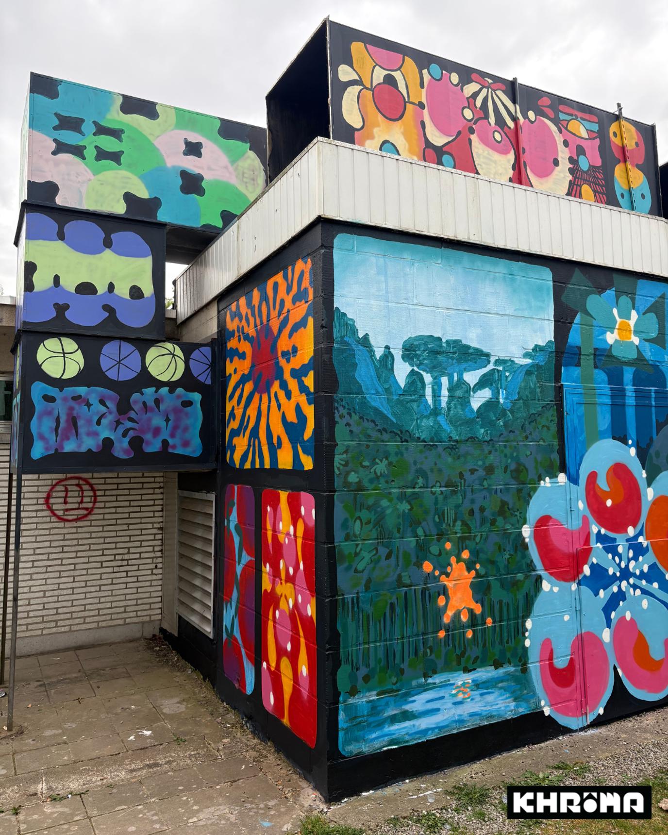 Mural by Oresto for the Khrôma exhibition at the former Hannut swimming pool.
