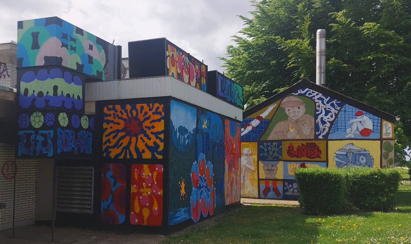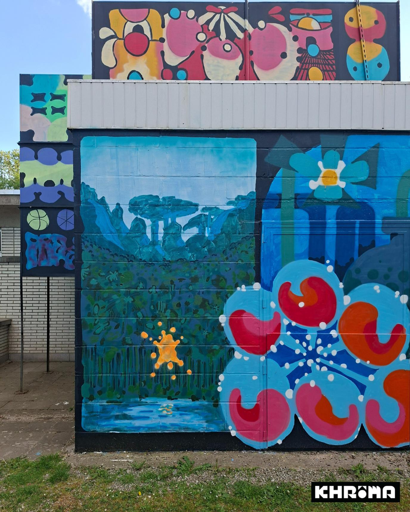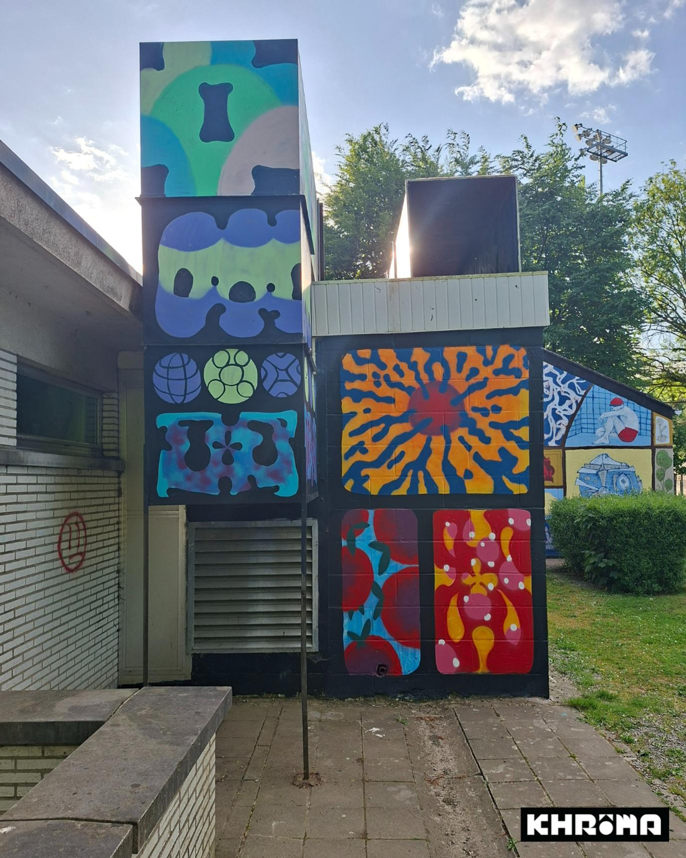 Mural by Oresto for the Khrôma exhibition at the former Hannut swimming pool.