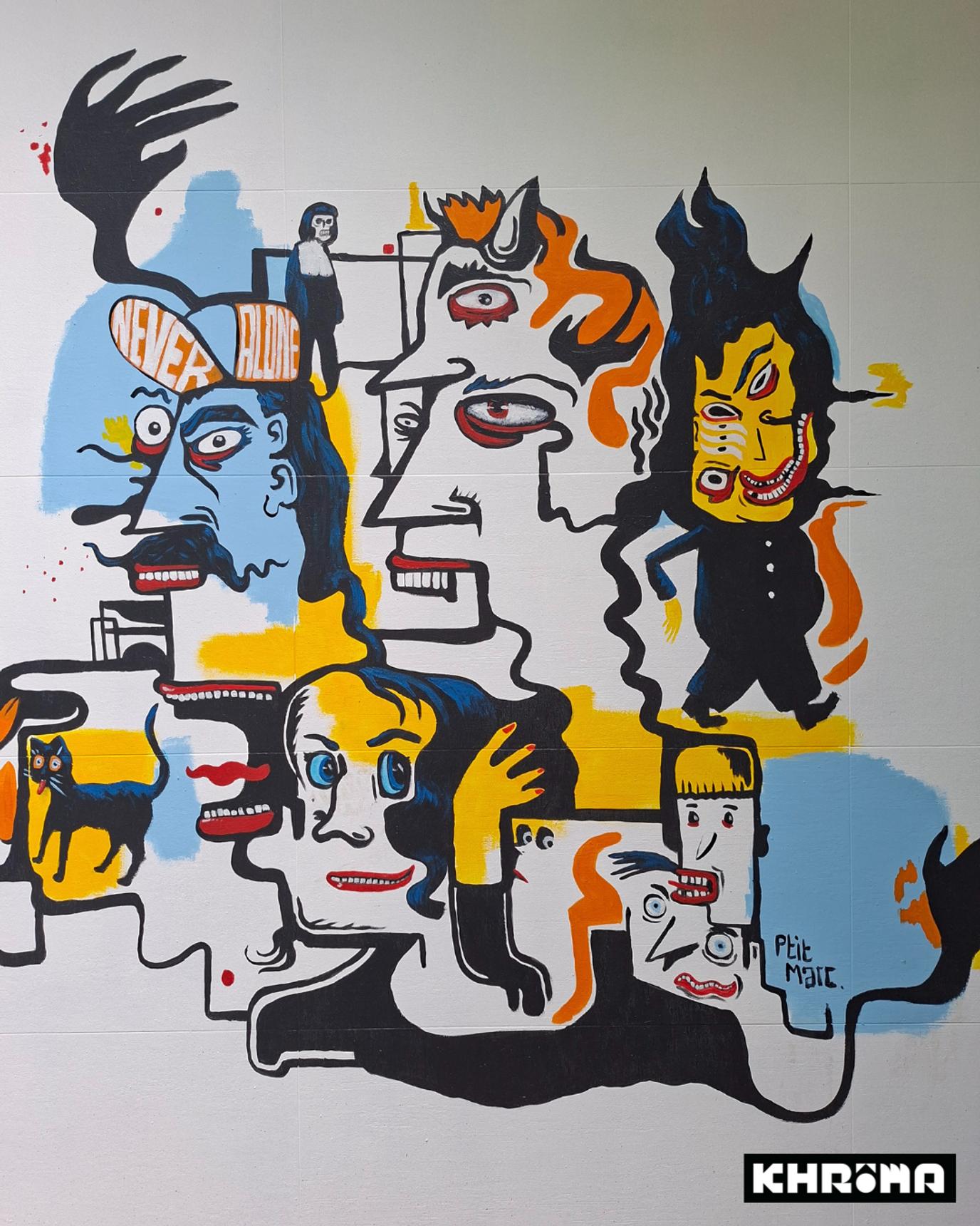 Cette fresque murale de Ptit Marc allie spontanéité et narration visuelle.