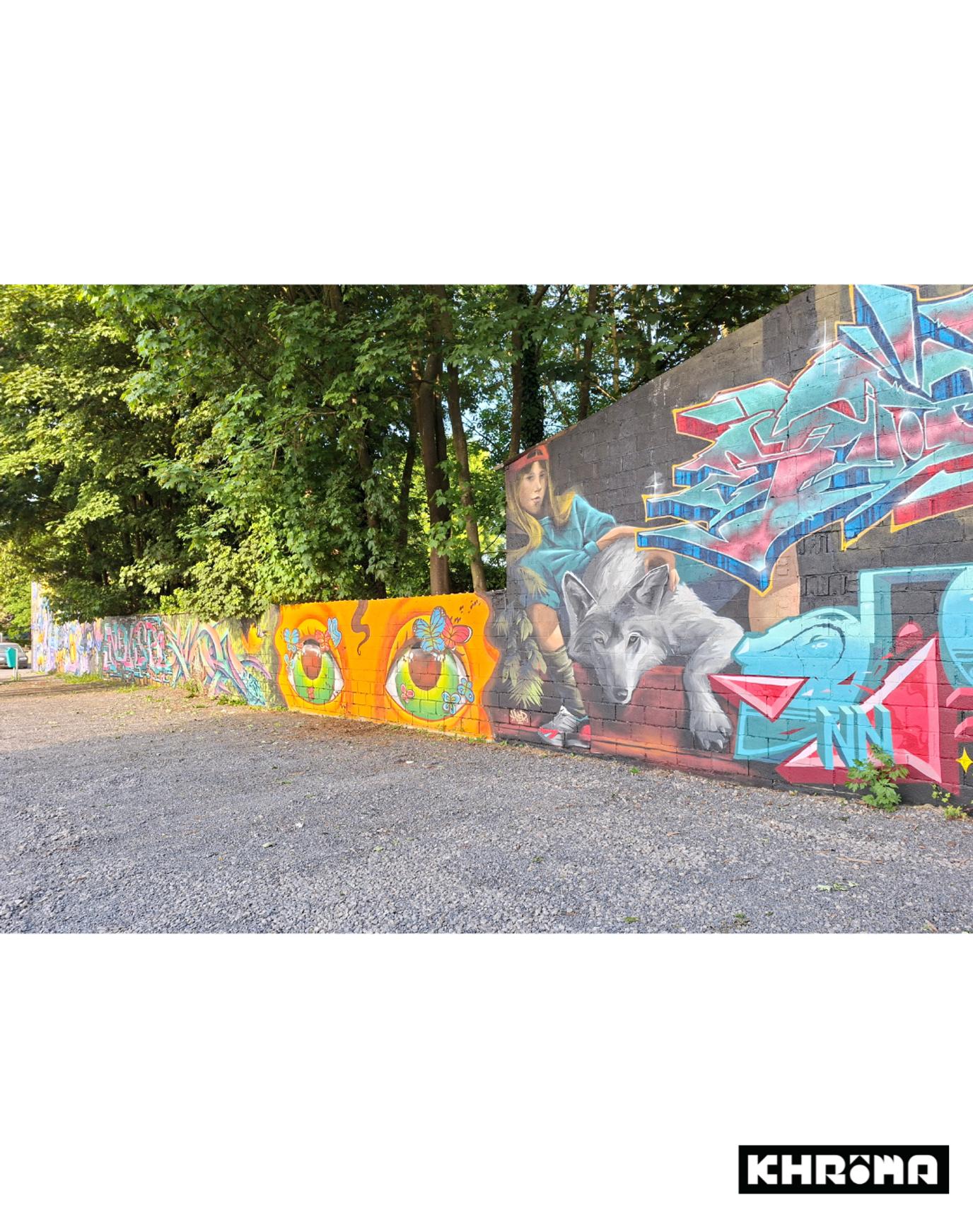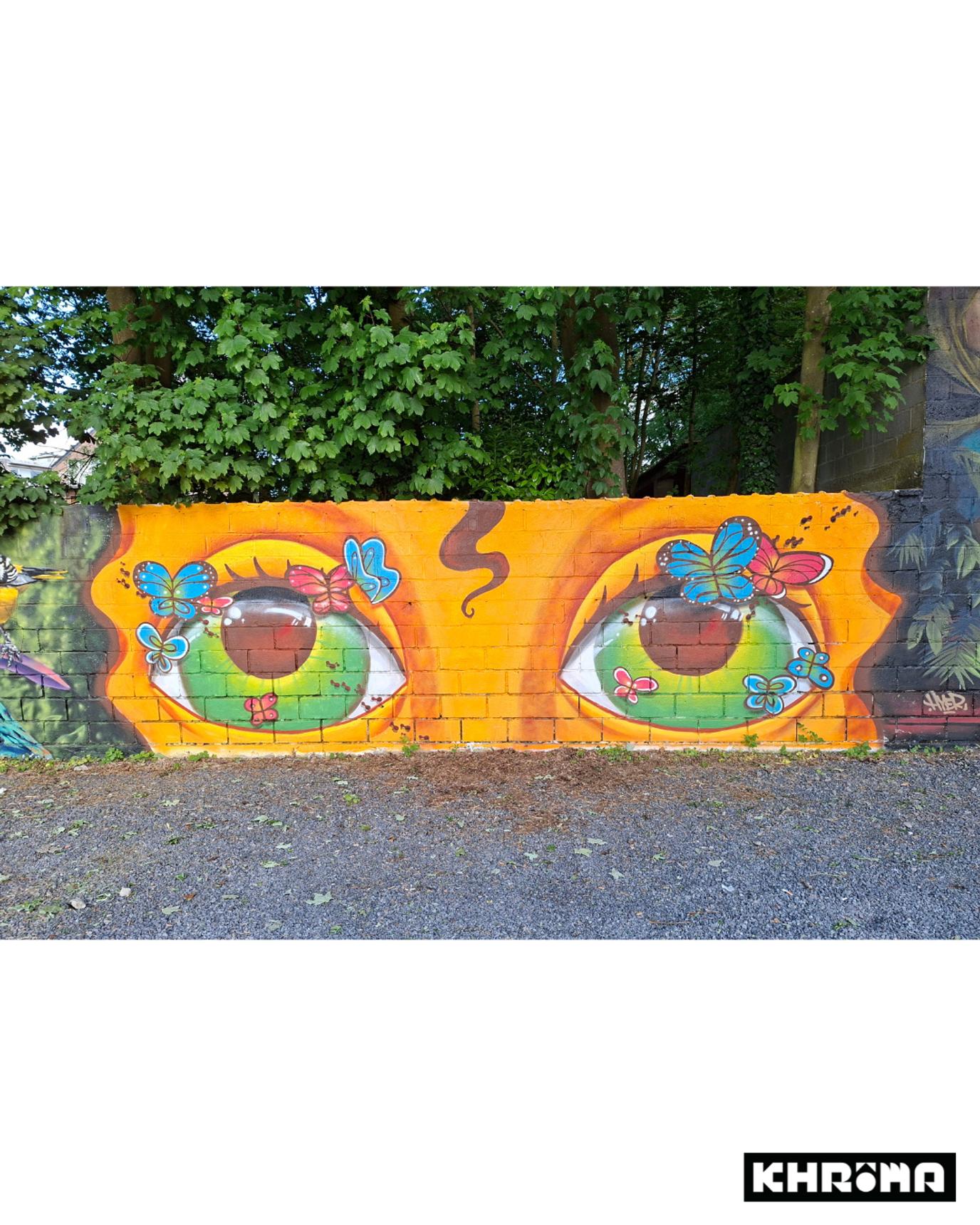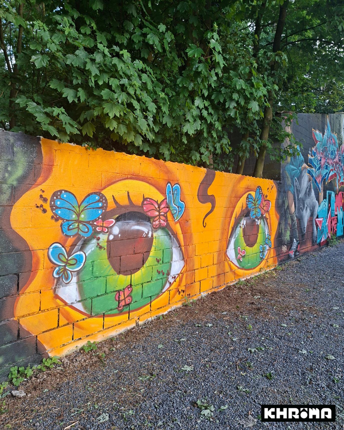 Mural by Raquel Dama for the Khrôma expo at the old swimming pool in Hannut.