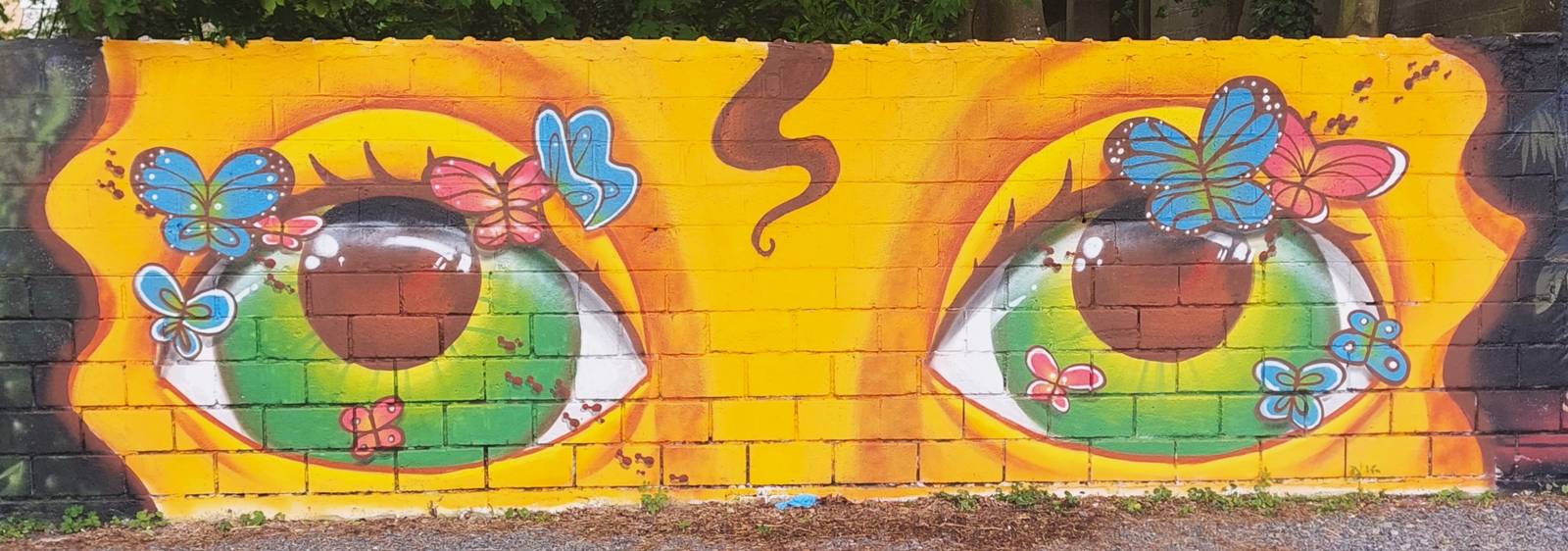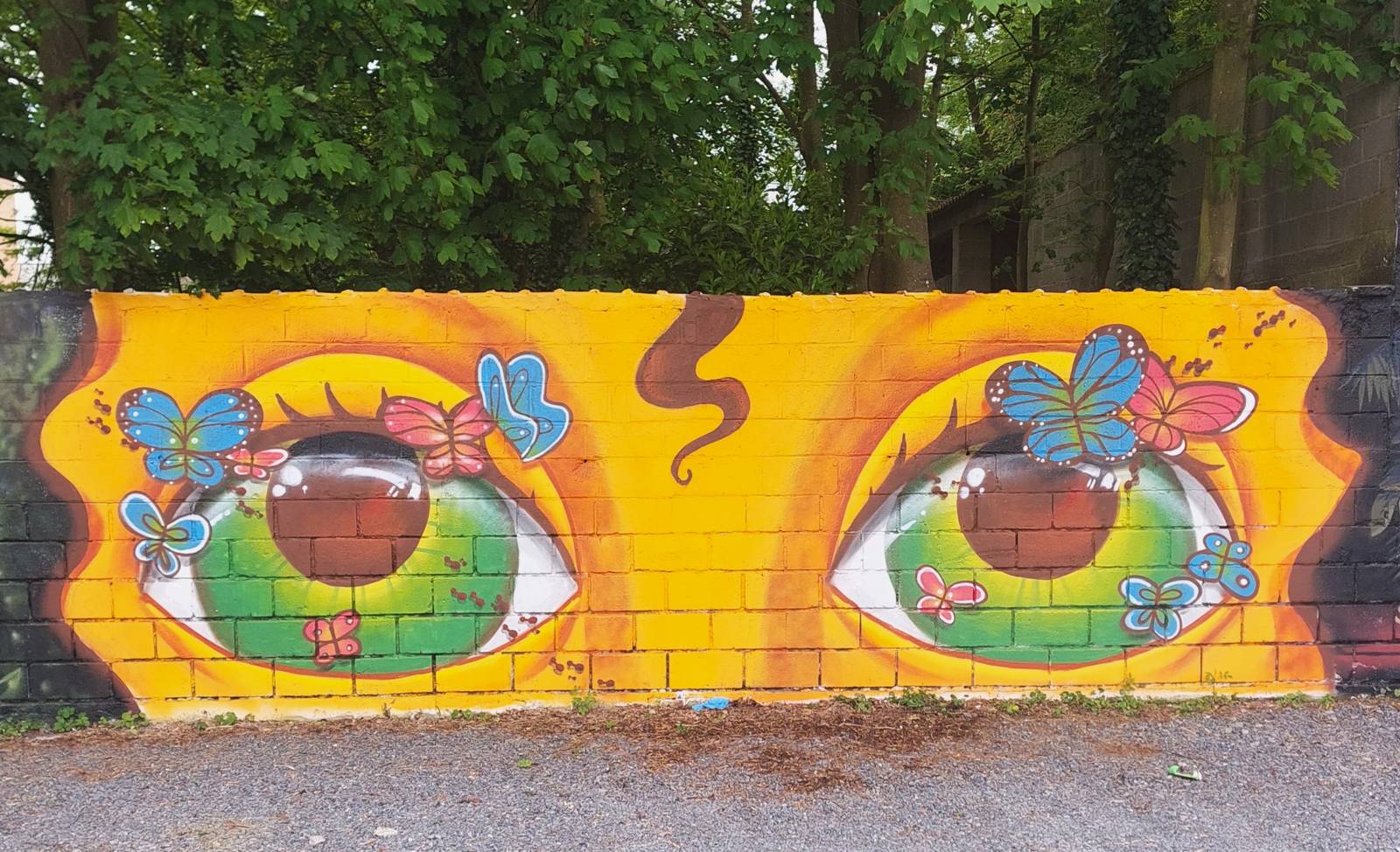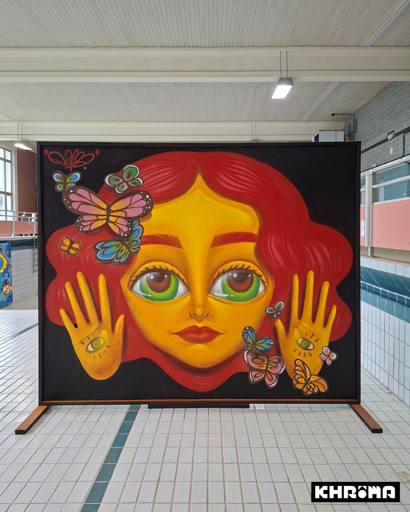Peinture murale de Raquel Dama pour l'expo Khrôma à l'ancienne piscine de Hannut.
