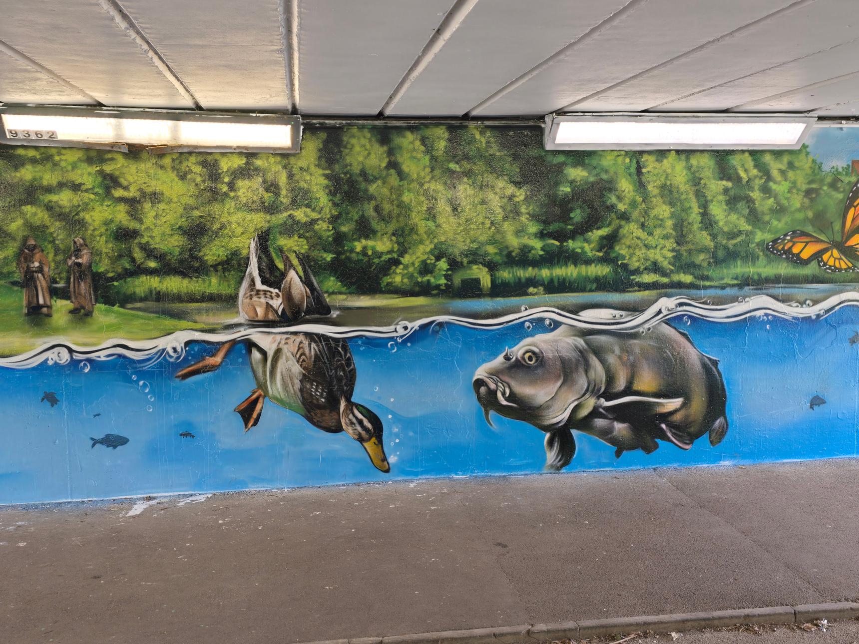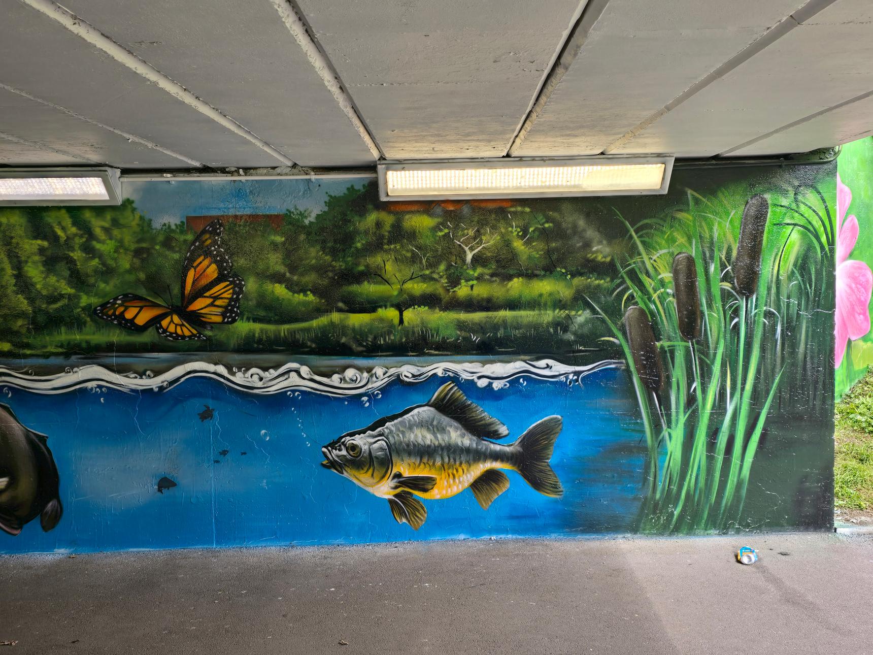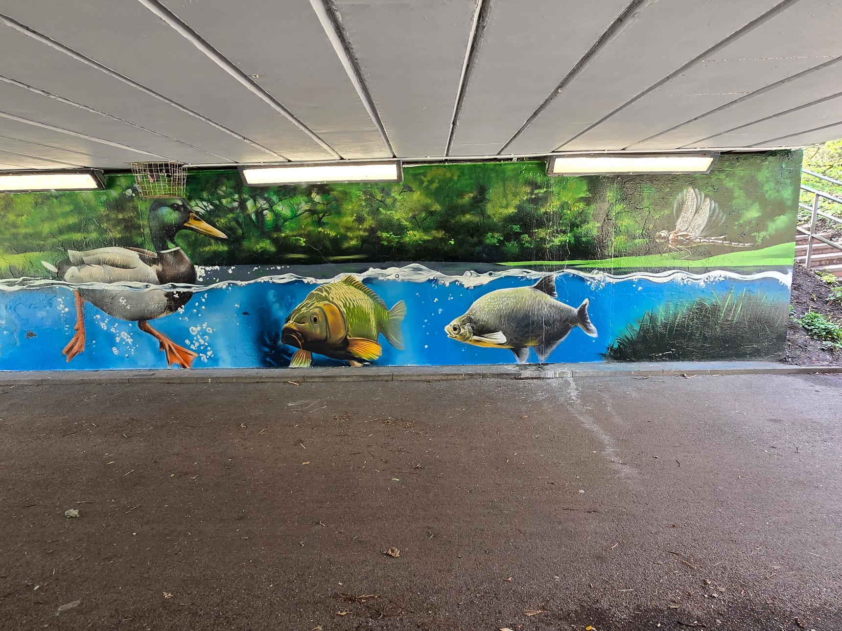 Part of a series of murals in underpasses, organised by MurWalls.