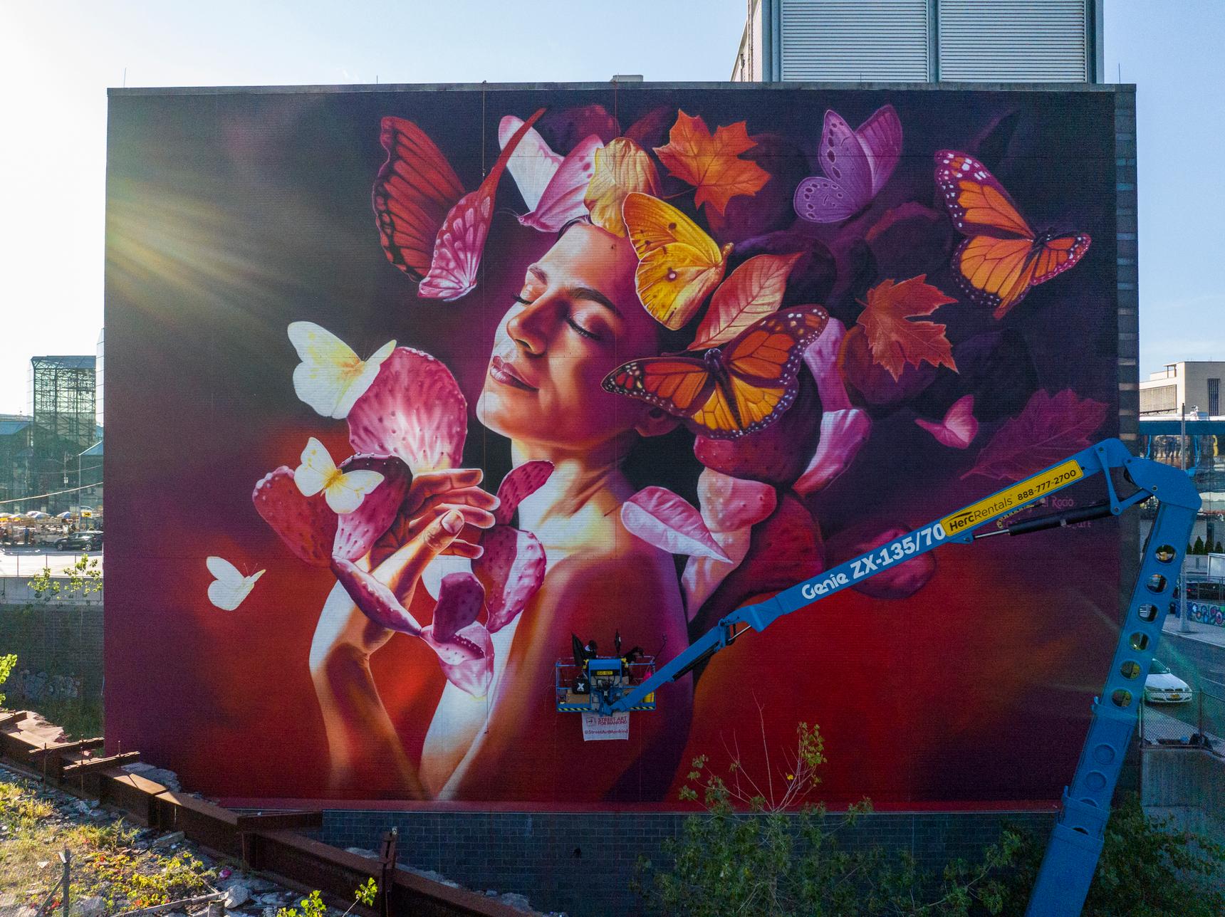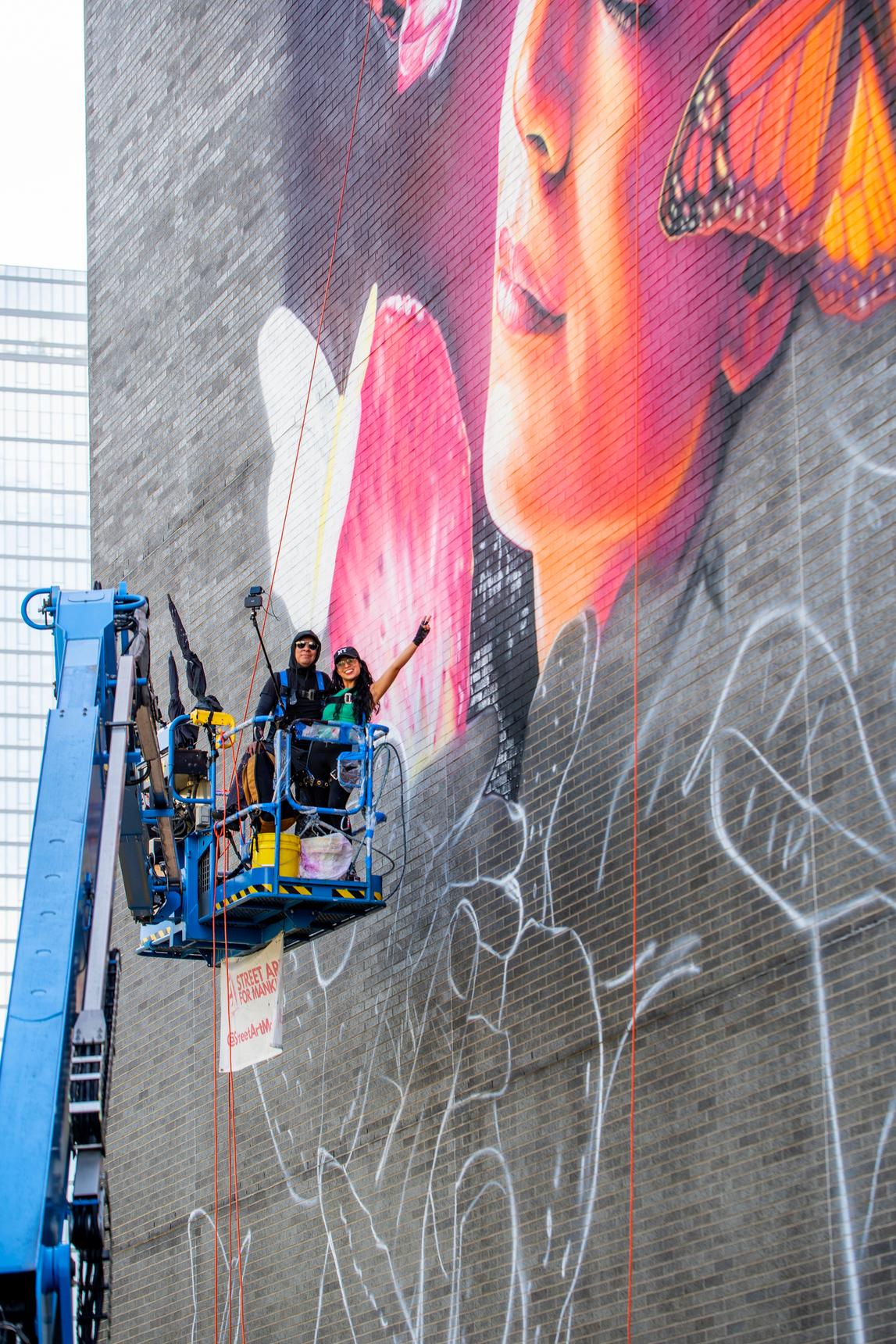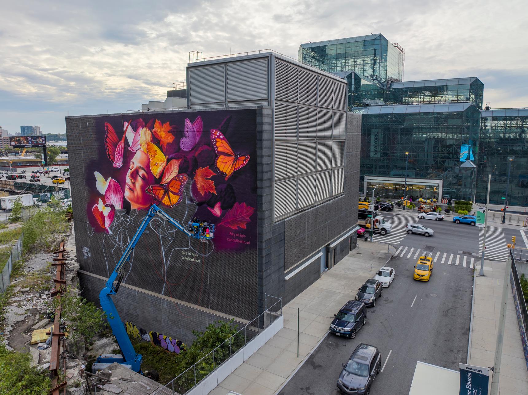 “Breathe”, the mural reflects on the importance of clean air for all and pays tribute to New York City’s extraordinary biodiversity. Today 99% of the world’s population breathes unsafe air, with the impacts falling disproportionately on women, children, the elderly and low-income communities.