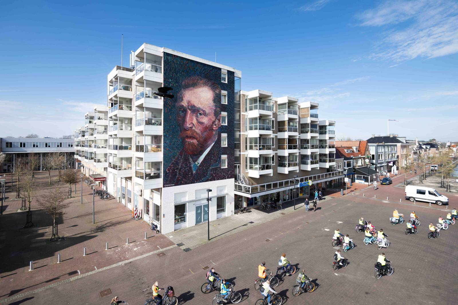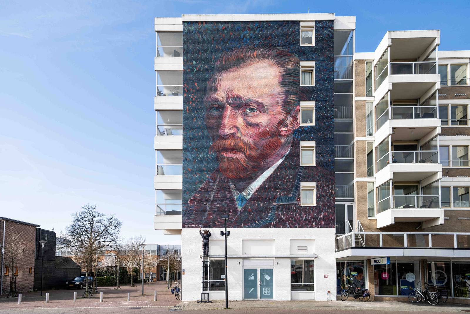 Het is 140 jaar geleden dat Vincent van Gogh de stad Hoogeveen bezocht (1883). Hier wilde men een eerbetoon aan brengen. Wij hebben zijn meest markante zelfportret geschilderd en het werk is zo’n 20 meter hoog. U kunt het werk vinden midden in het centrum van Hoogeveen tegenover het Tamboer theater.