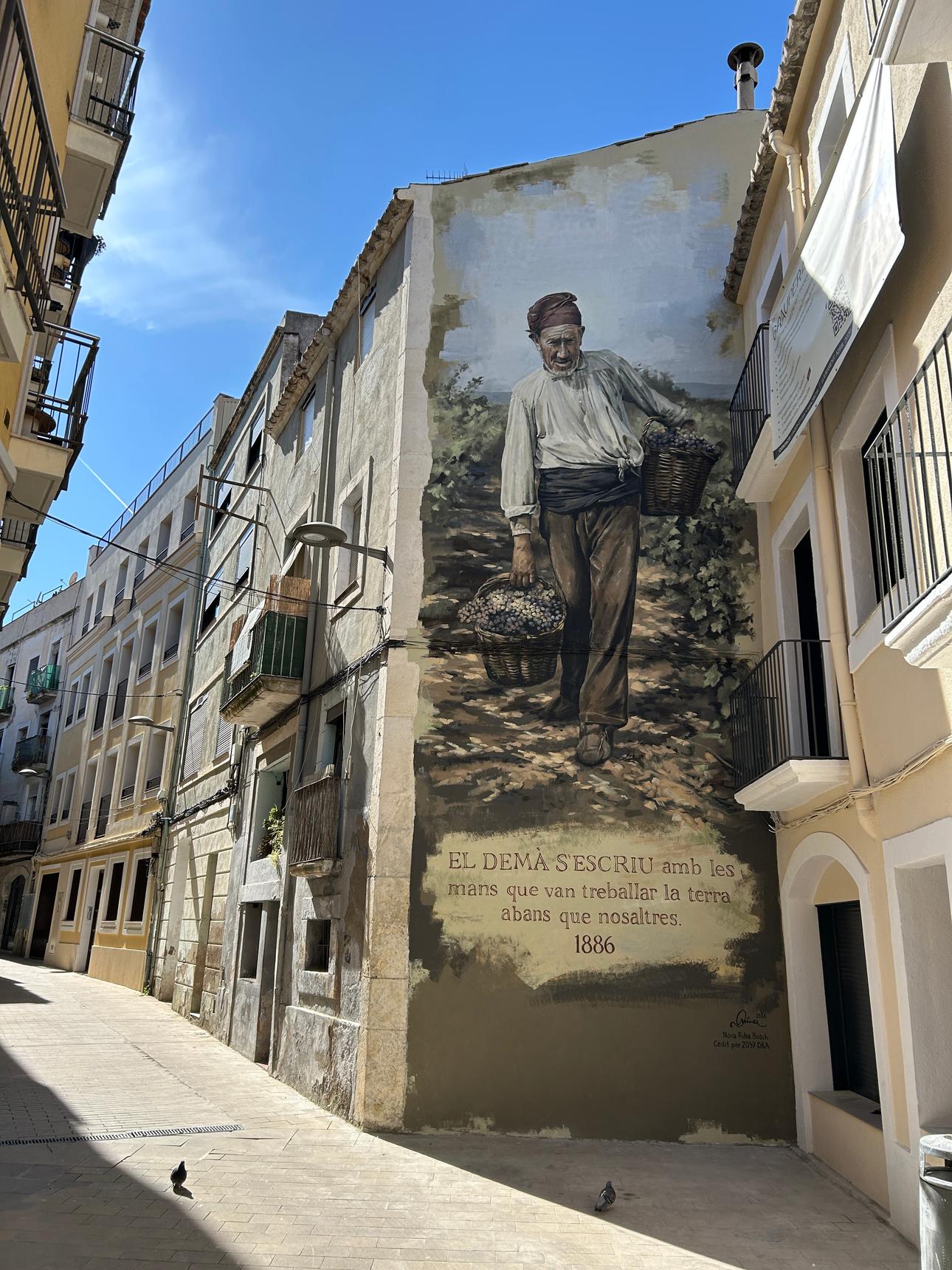 Tomorrow is written with the hands that worked the land before us, this is the phrase that accompanies this mural, the result of a flat renovation project with the intention of renewing the image of the street with a conservative look.