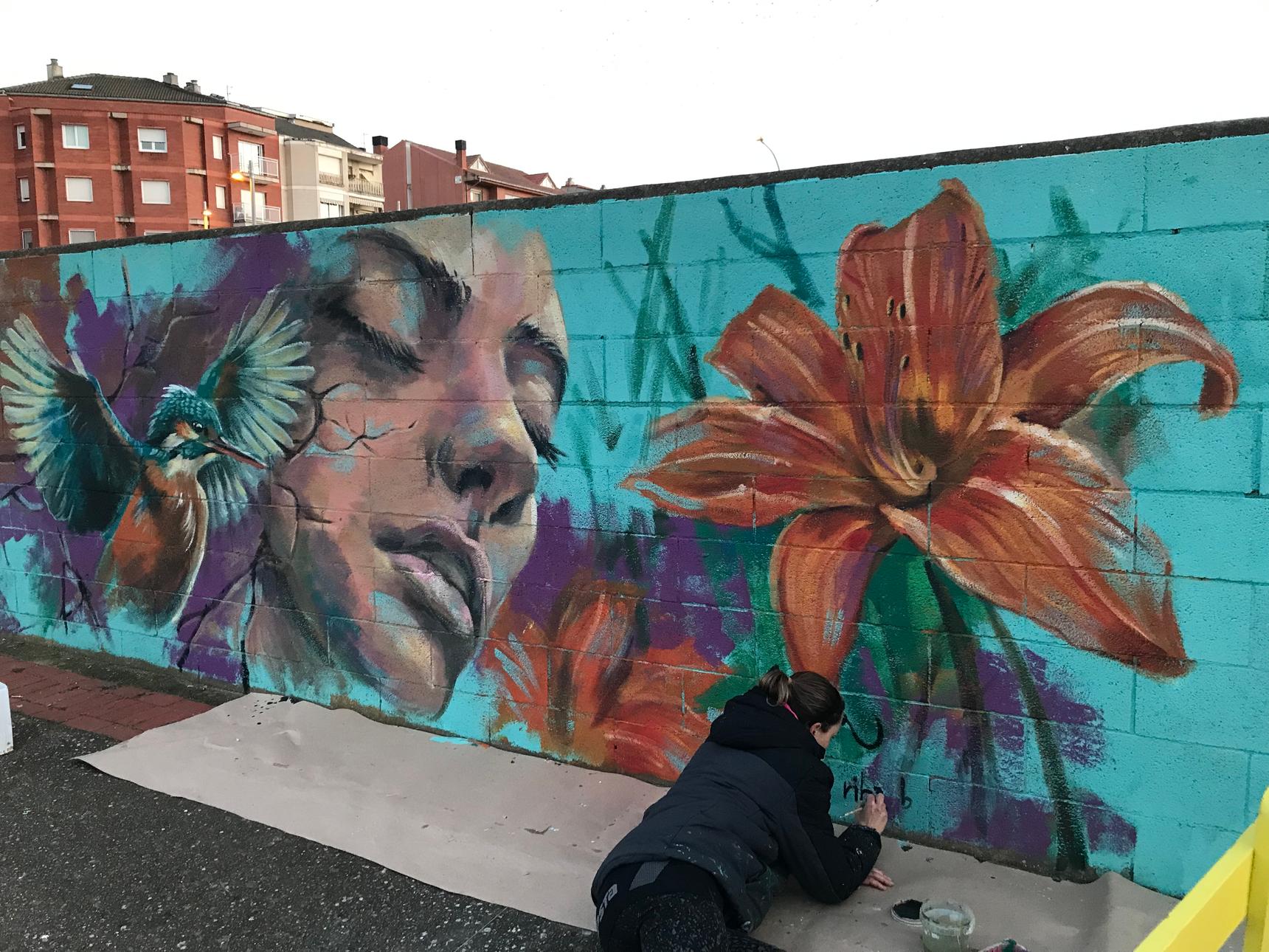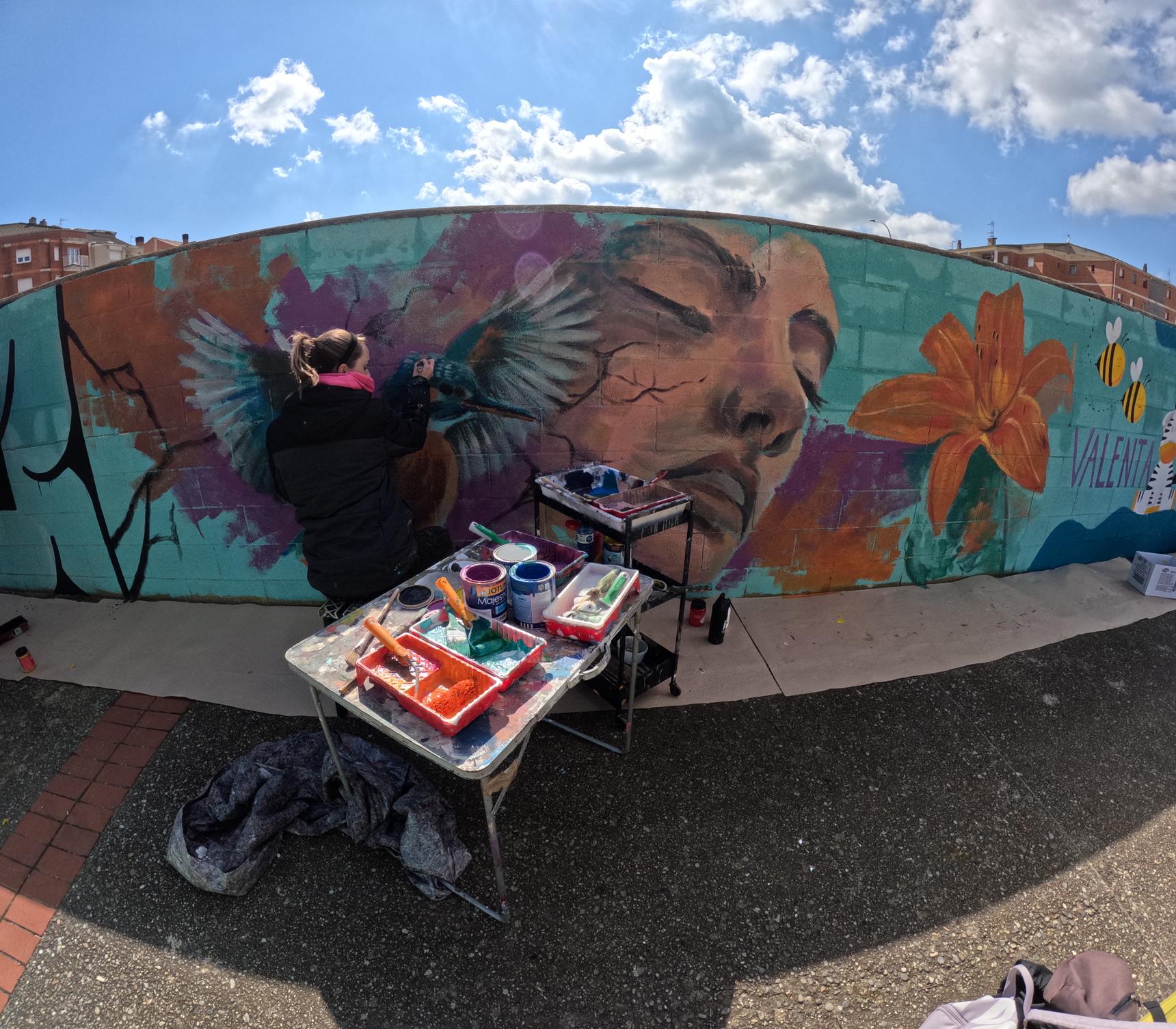 Mural created on International Women's Day (8M) in 2025 on a longitudinal wall shared with other women artists from the region.