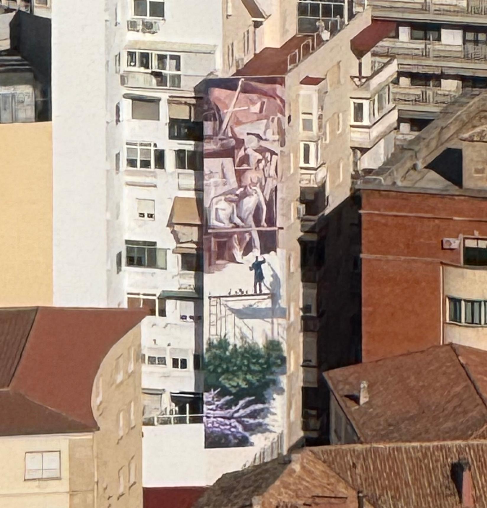 The mural depicts Francisco Baños painting his own mural, a gesture that combines homage and local creativity, and reinforces the commitment of the City Council and cultural organizations to urban art and the identity of Jaén.