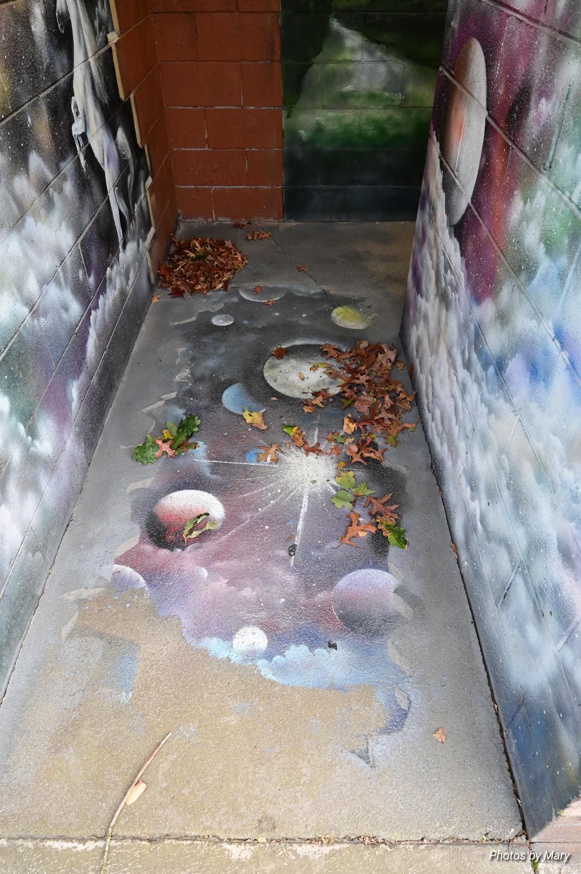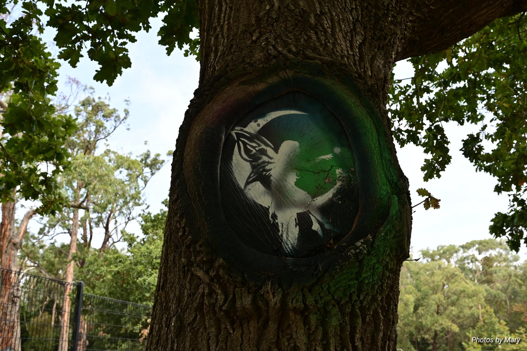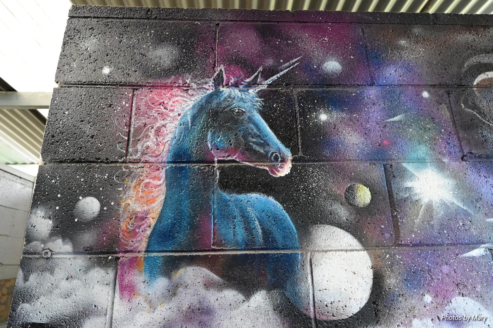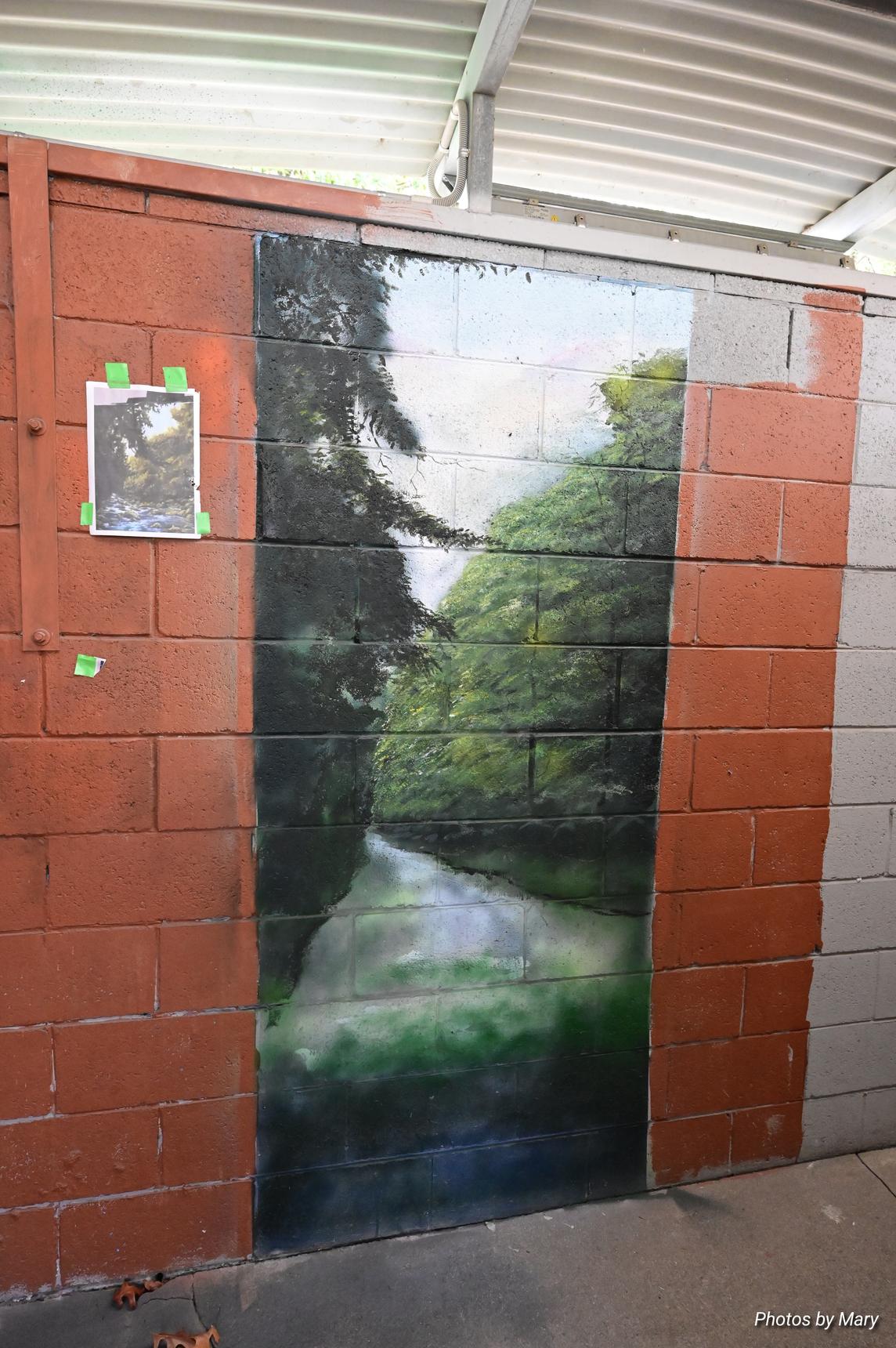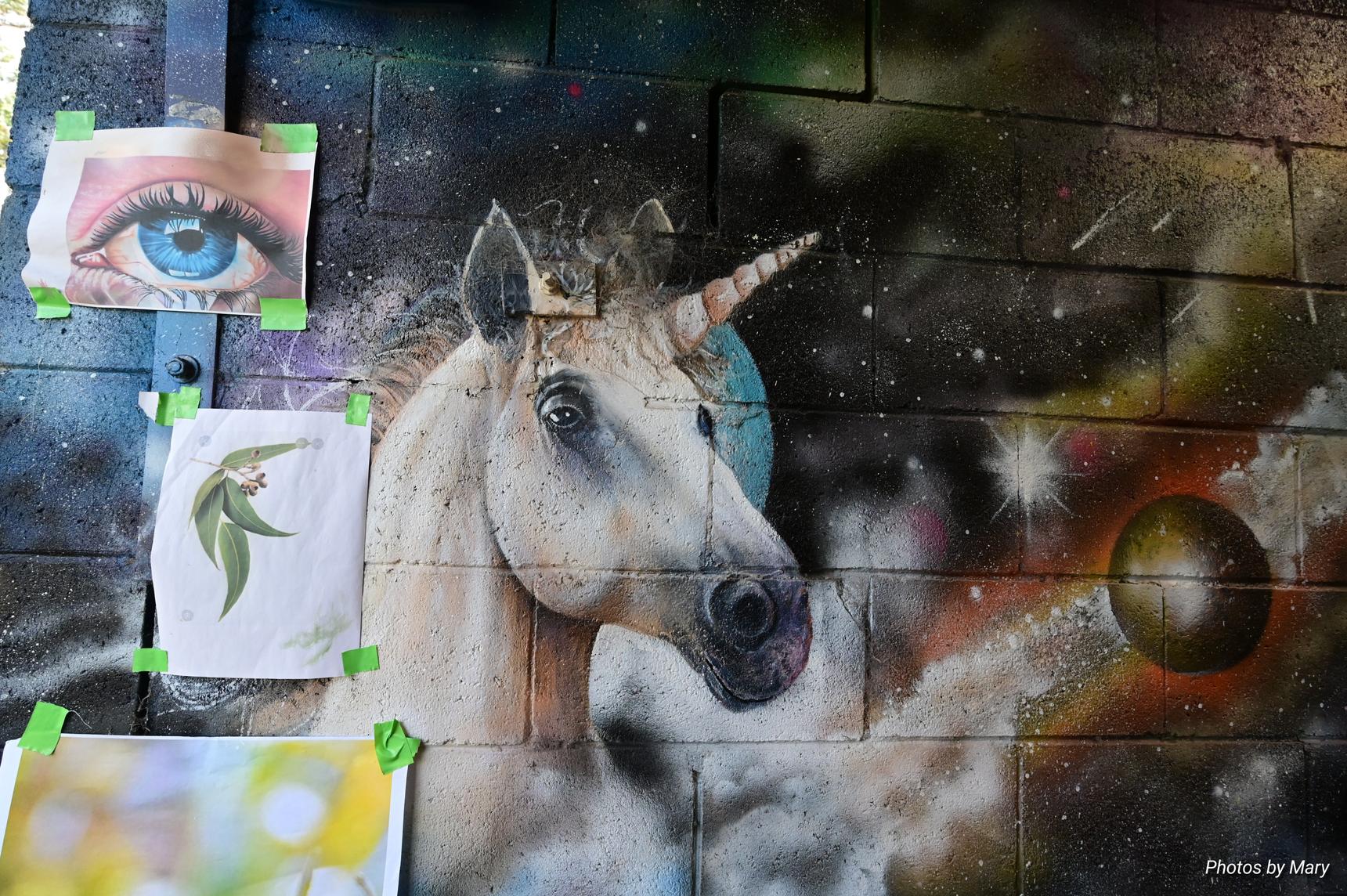 The murals, painted on the ladies toilet block at Koonwarra Recreation Reserve features various types of bird life, mythical animals and creative artwork