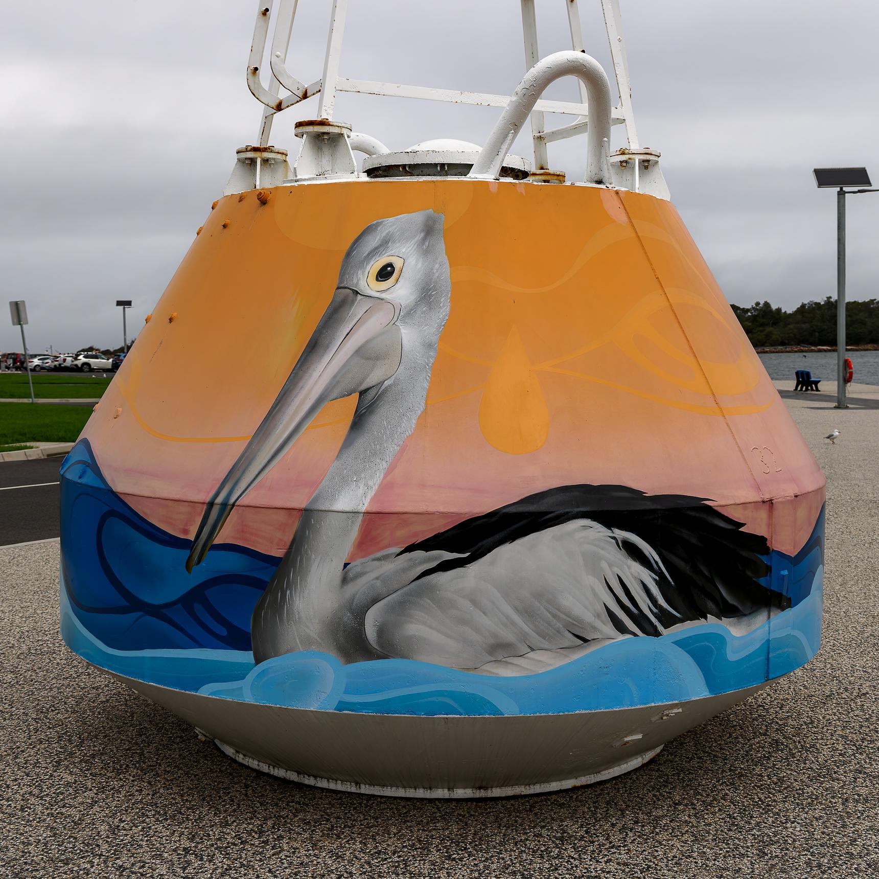 Painted with unique artistic flare, these buoys have an amazing wow factor due to the vibrant colours and realism of the artist’s style. The artwork encourages viewers to walk around the buoys to find a surprise on either side. As the buoys are quite large, they will intrigue people from afar while also inviting them to move up closer to see the whole design.