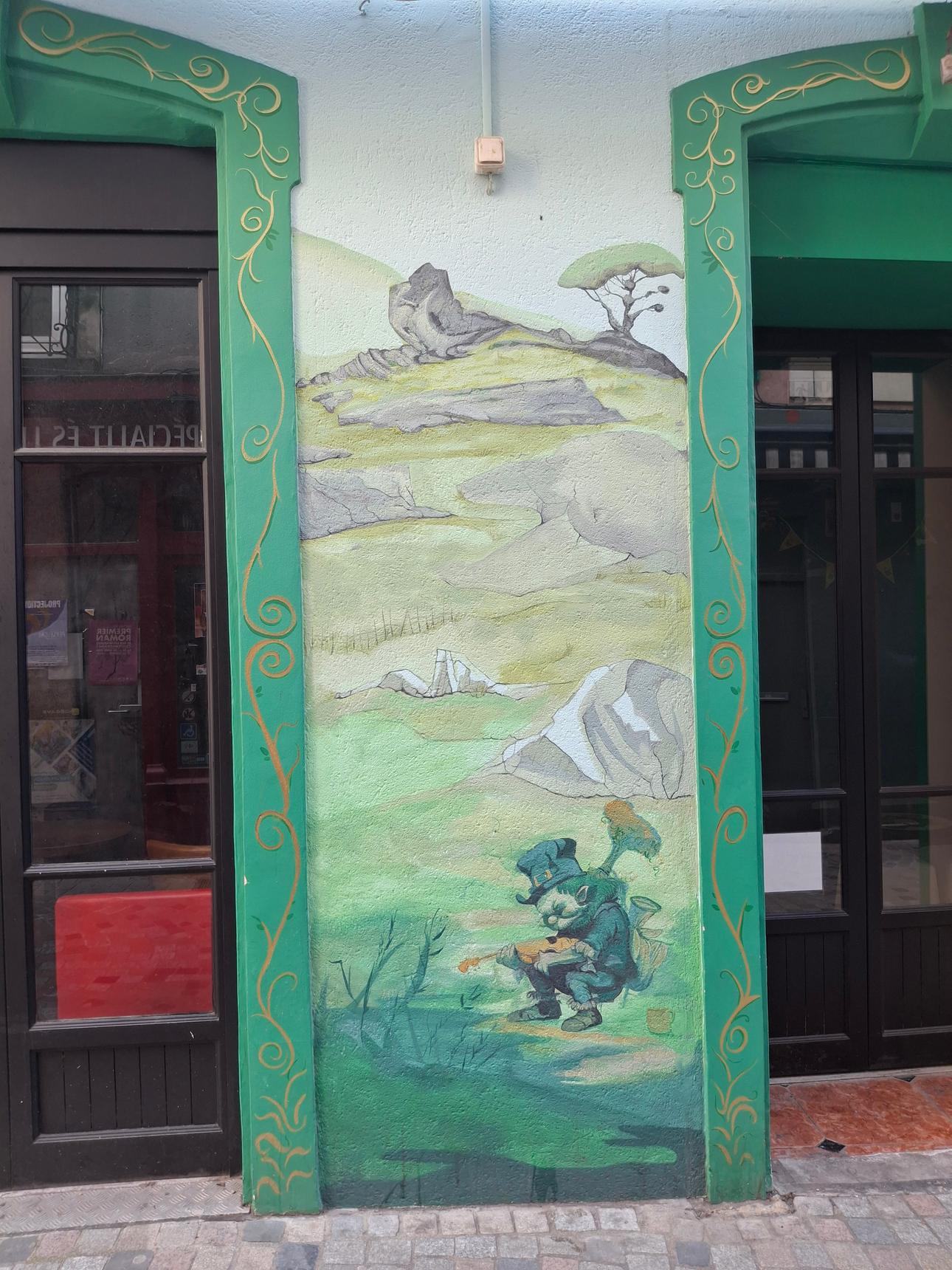 Gaelic character racing through the landscape