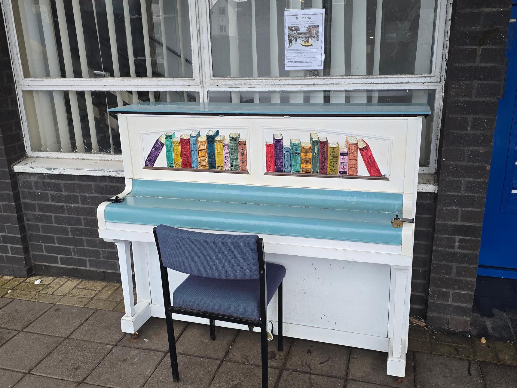 A public piano that is available to play whenever the bookshop is open! If it isn't open, the beautiful art on the piano is still there for all to see.