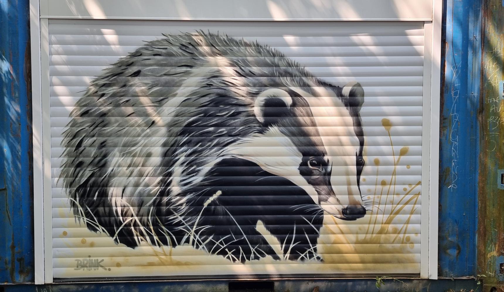 The owners have filmed numerous visits from badgers in their garden. This mural is a celebration nature thriving.