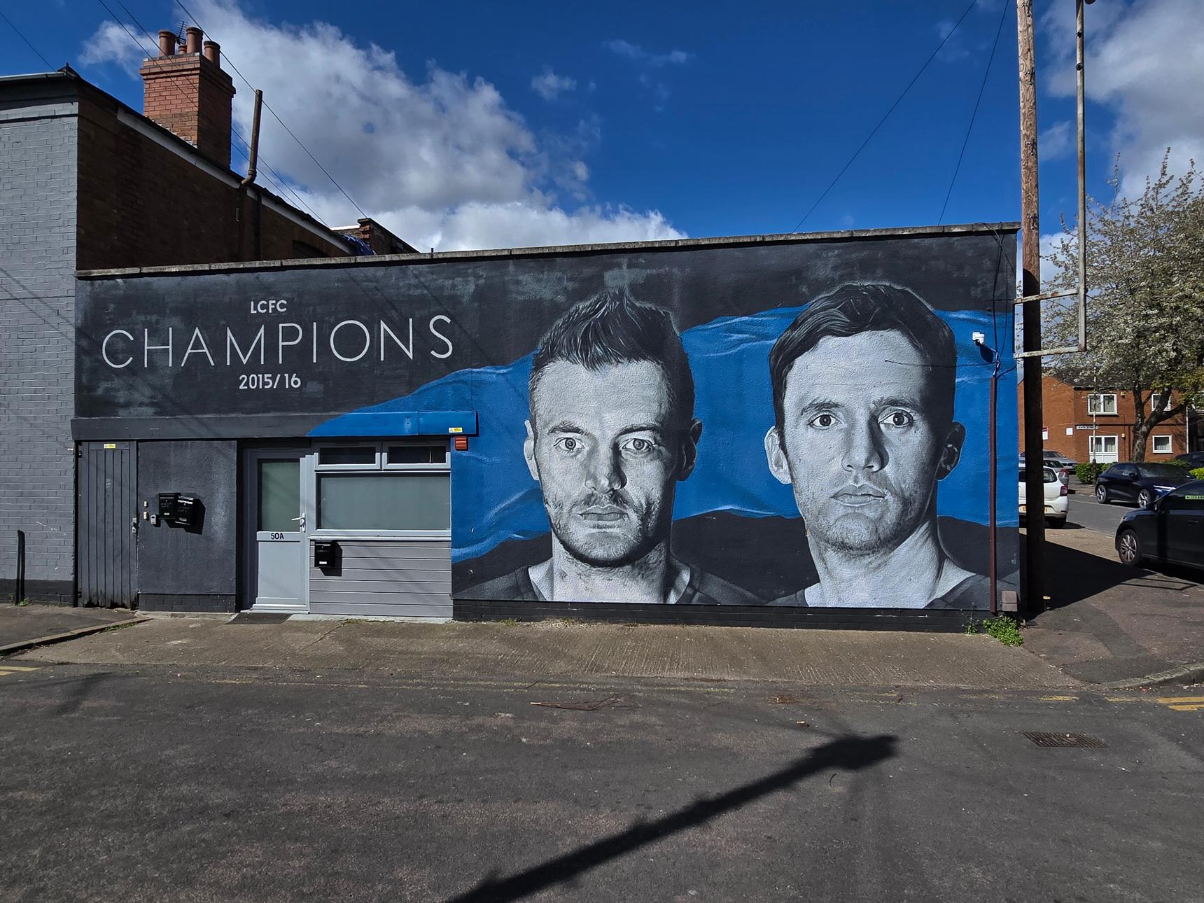 Unfortunately, only the faces of Jamie Vardy and Andy King remain (on Kate Street), as the rest was painted over in 2019.